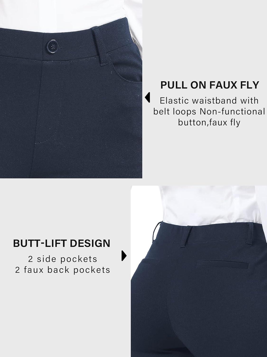 Stelle Women 28″/30″/ 32″ Bootcut Dress Pants Business Casual Work Pants with Pockets Pull On Regular Slacks for Office(28″ Navy)