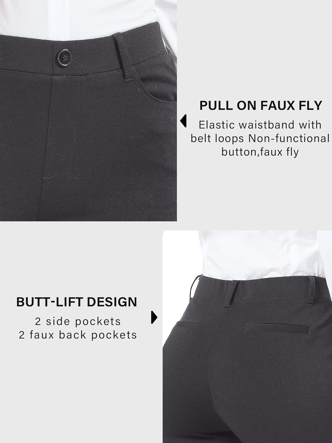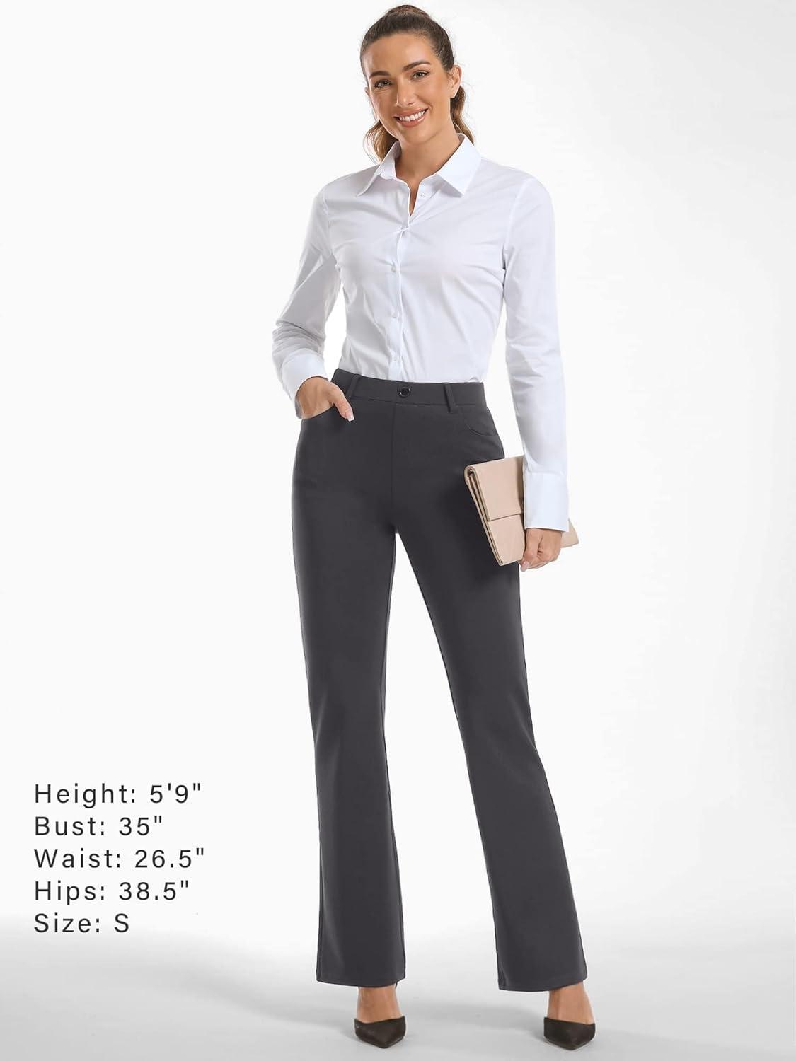 Stelle Women 28″/30″/ 32″ Bootcut Dress Pants Business Casual Work Pants with Pockets Pull On Regular Slacks for Office(32″ Charcoal Grey)