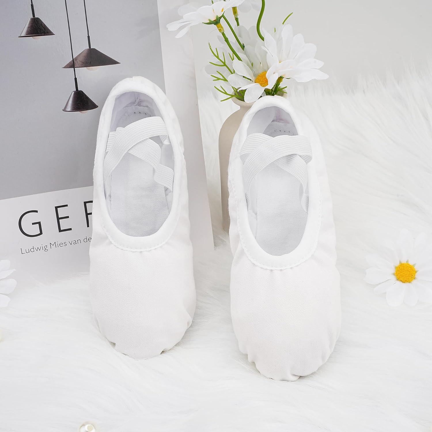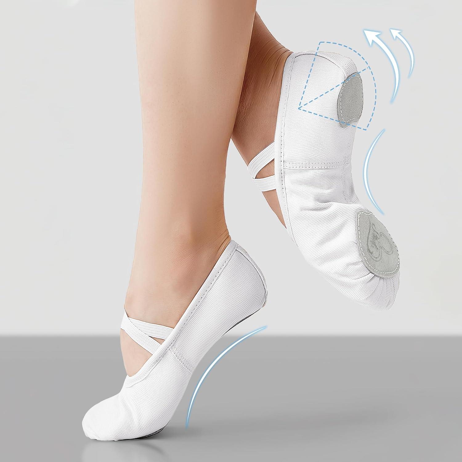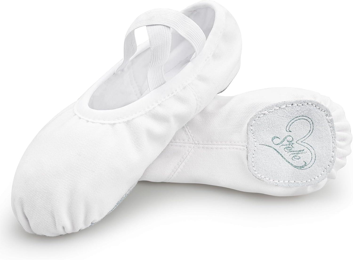 Stelle Women Ballet Shoes Highly Stretch Canvas Adult Ballet Slippers Split Sole Yoga Dance Shoe for Girls Boys(White)