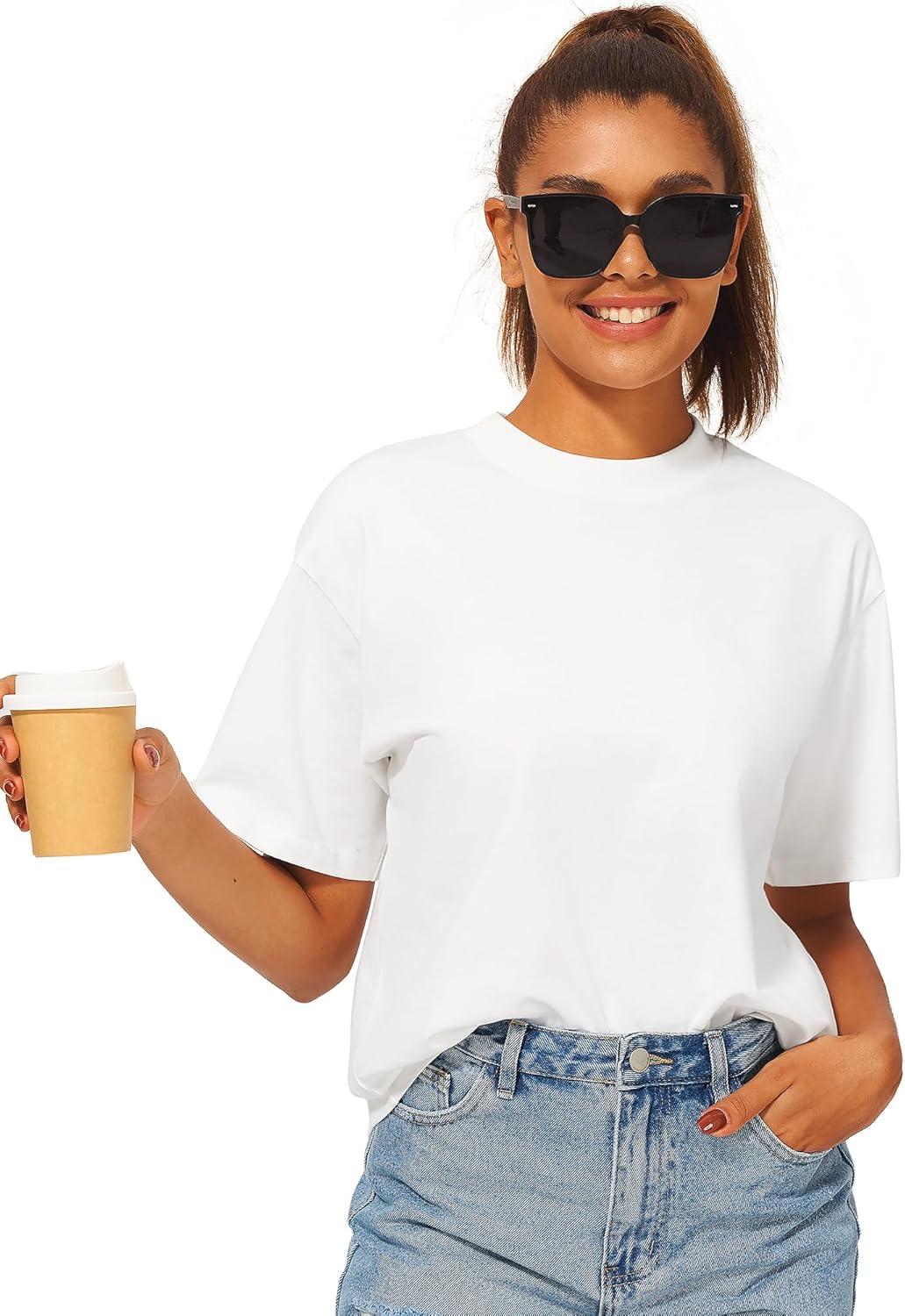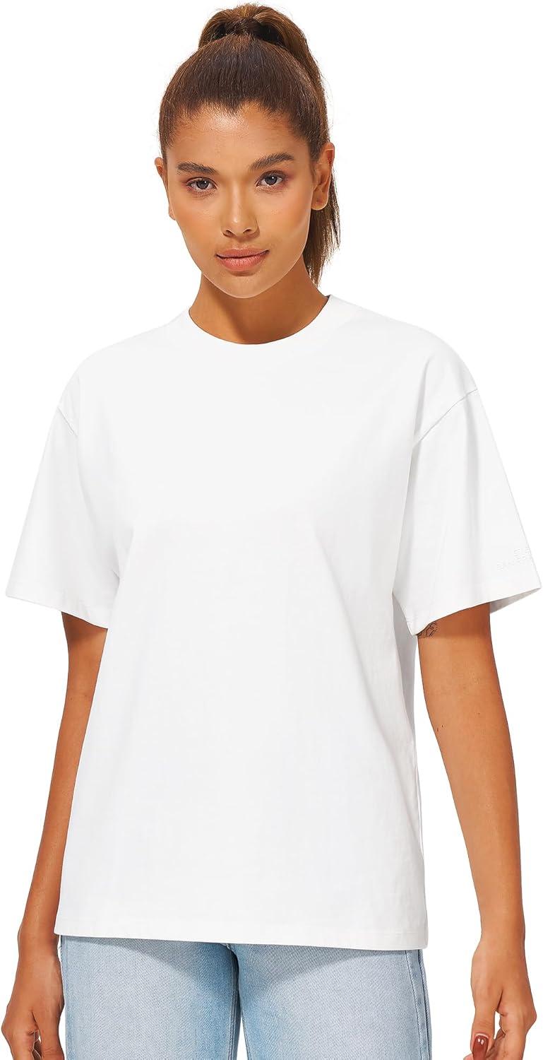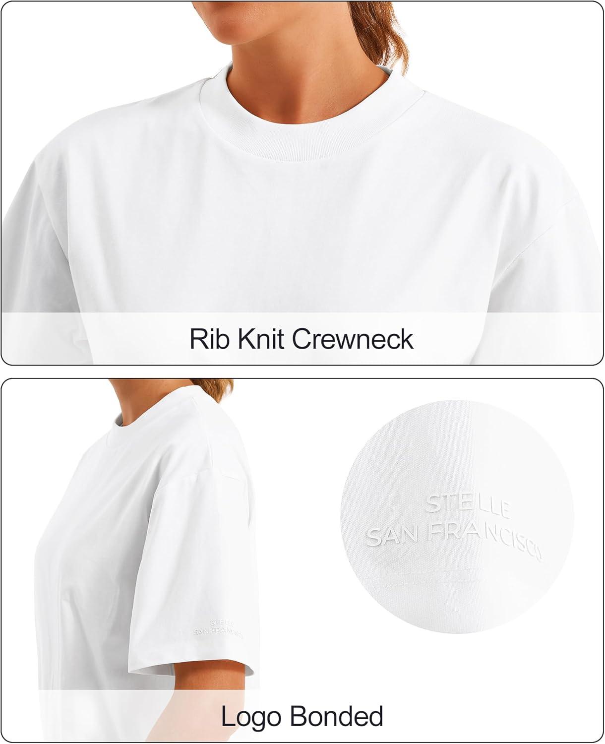Stelle Women Cotton T-Shirts Oversized Crewneck Short Sleeve Summer Casual Tops Unisex Adult(White)