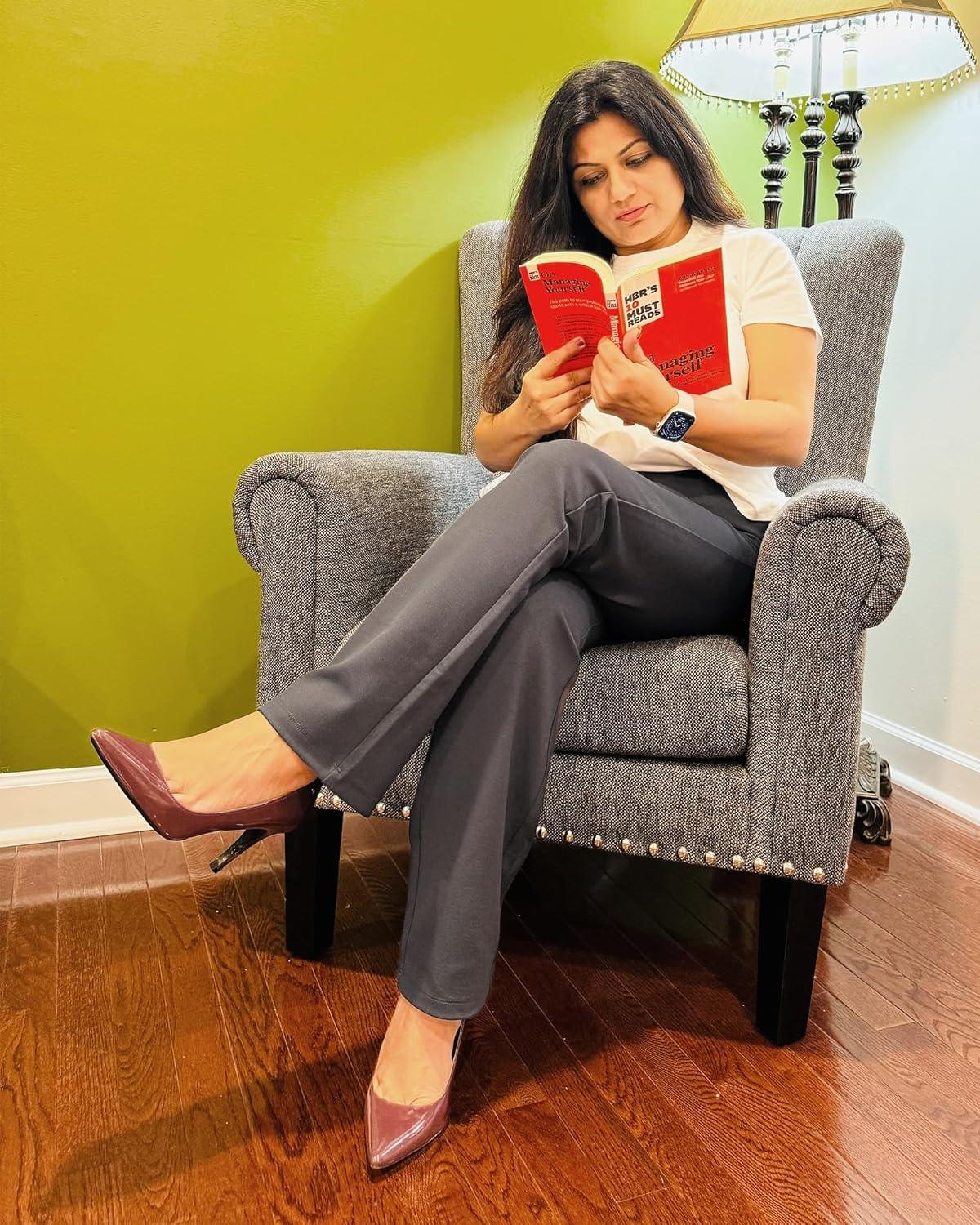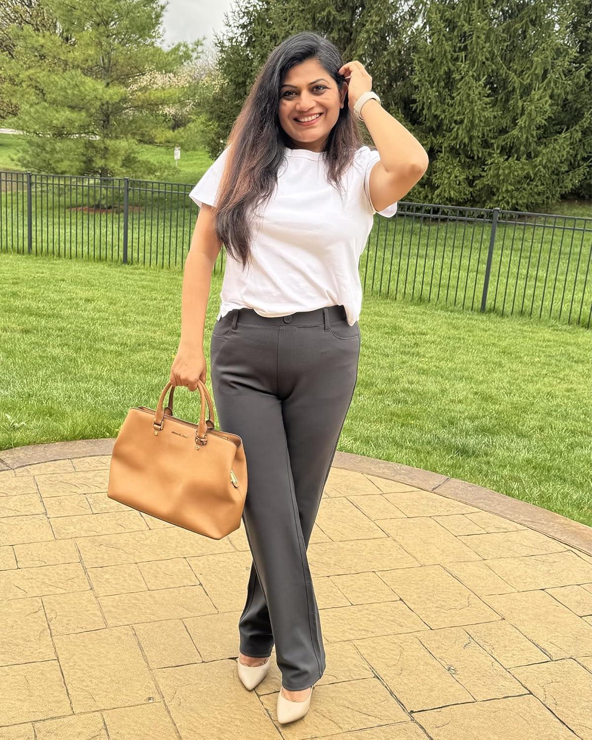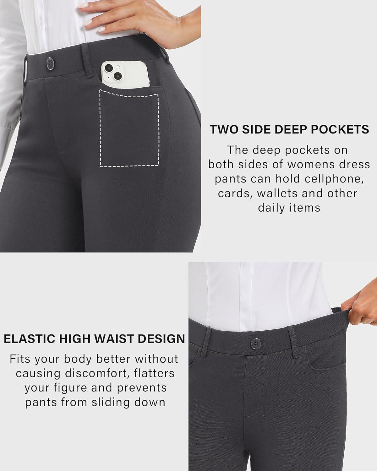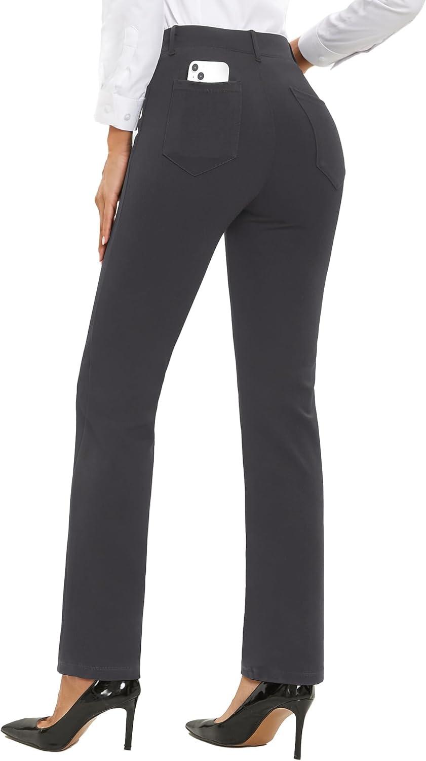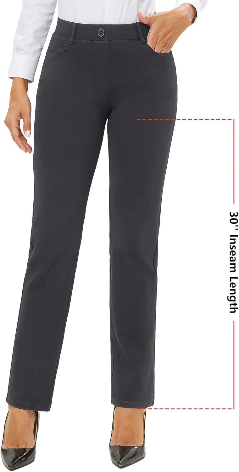 Stelle Women Dress Pants Business Casual Straight Leg 30″ Stretch Work Pants Pull On Slim-fit Regular Slacks with 4 Pockets(Charcoal)