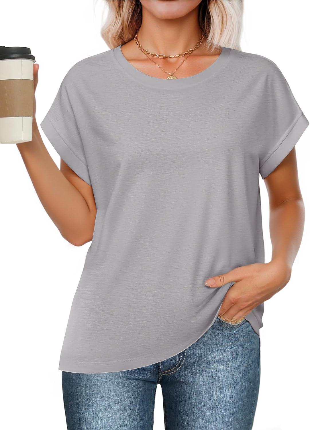 Stelle Women Modal Soft Crewneck Cap Short Sleeve T Shirts Summer Tops Trendy Basic Casual Clothes 2025(Grey)