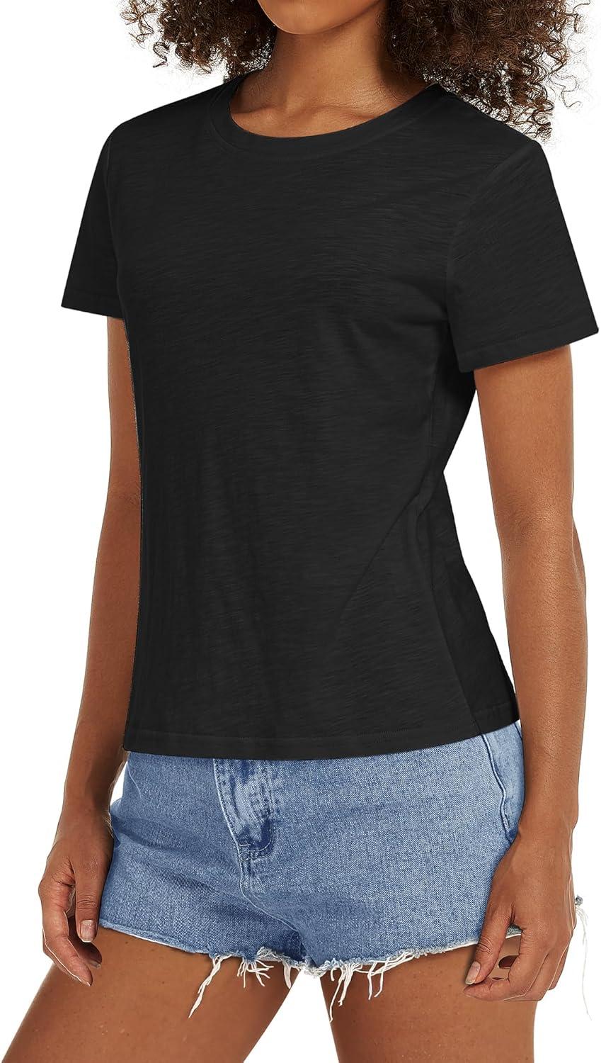 Stelle Women T Shirts Crew Neck Short Sleeve Shirts Modal Soft Summer Classic Fit Tees(Black)