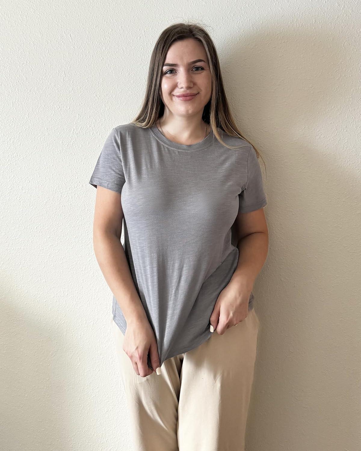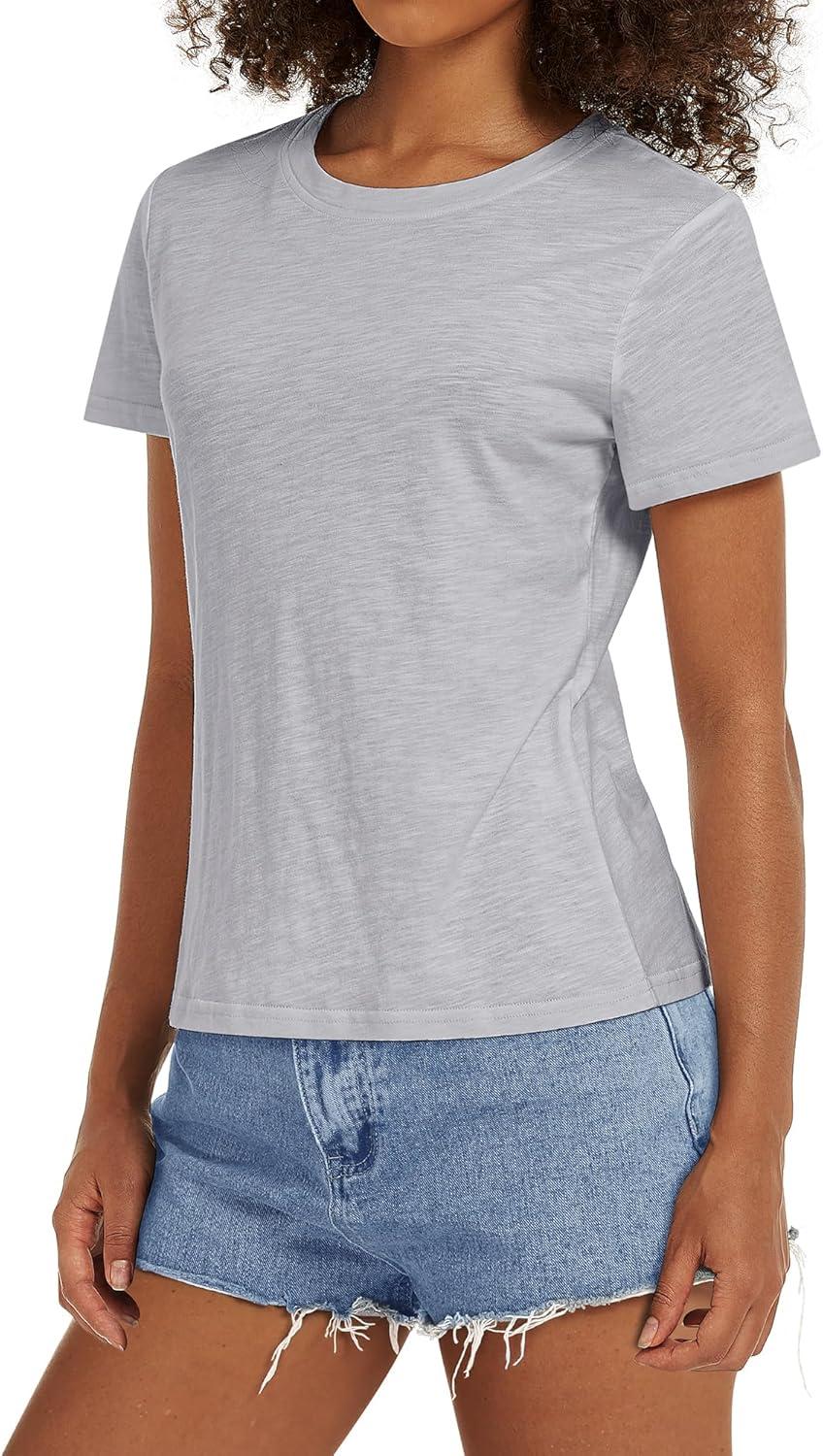 Stelle Women T Shirts Crew Neck Short Sleeve Shirts Modal Soft Summer Classic Fit Tees(Grey)