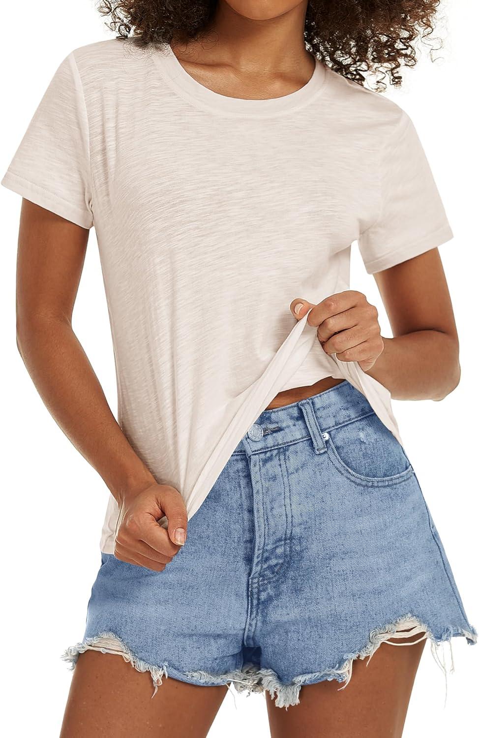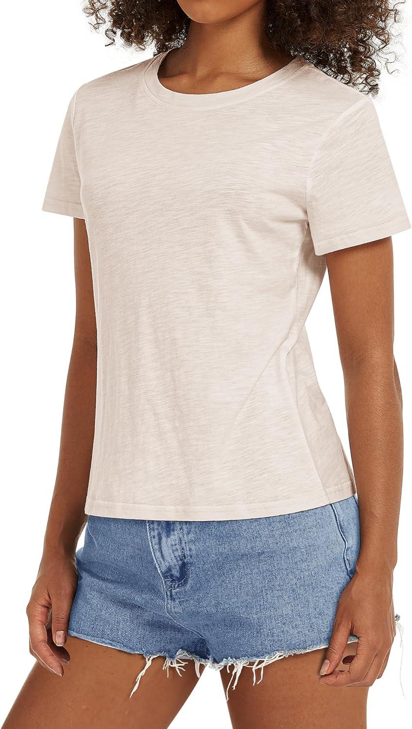 Stelle Women T Shirts Crew Neck Short Sleeve Shirts Modal Soft Summer Classic Fit Tees(Oat Milk)