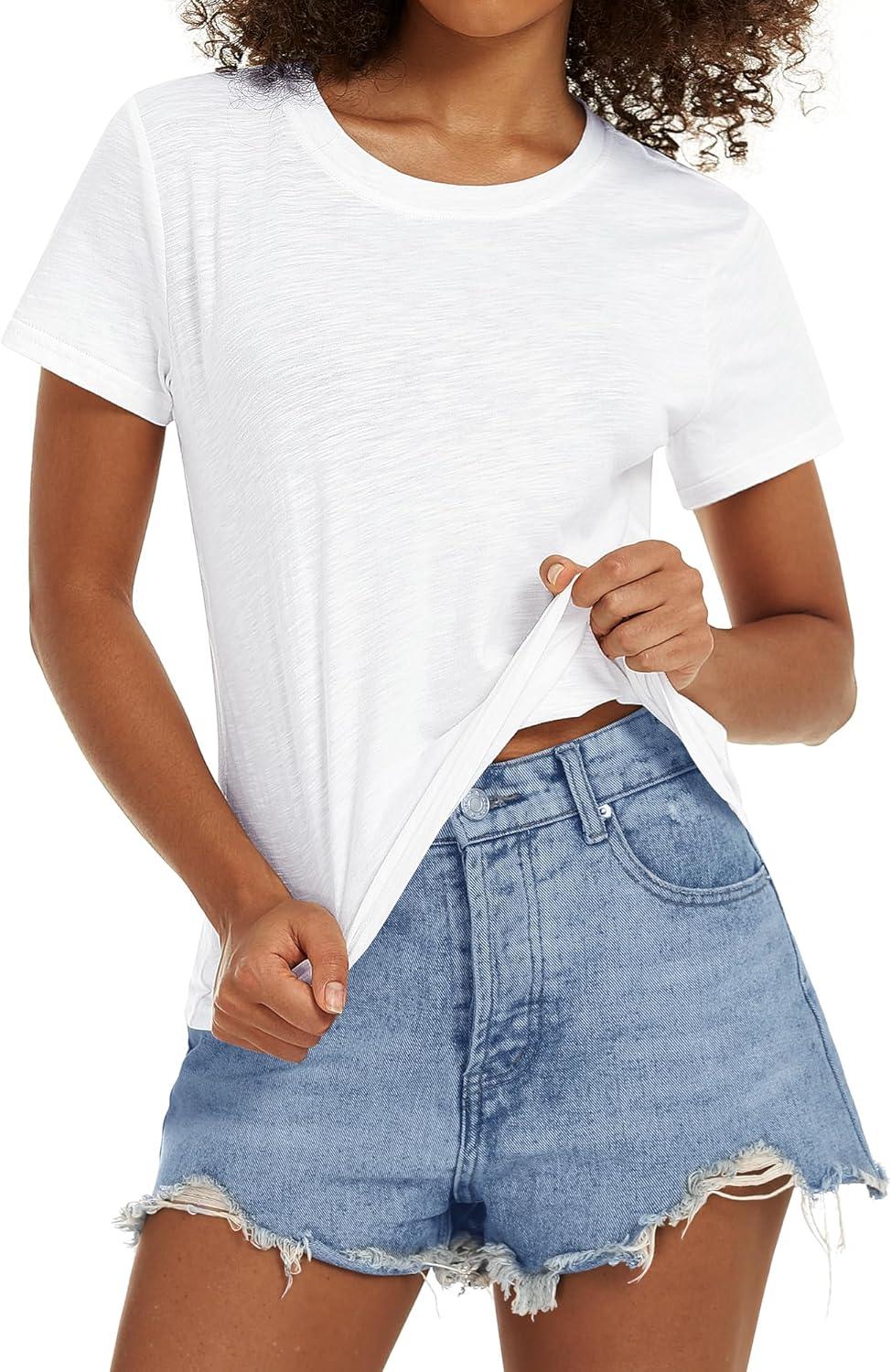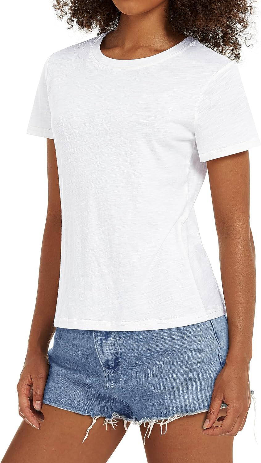 Stelle Women T Shirts Crew Neck Short Sleeve Shirts Modal Soft Summer Classic Fit Tees(White)
