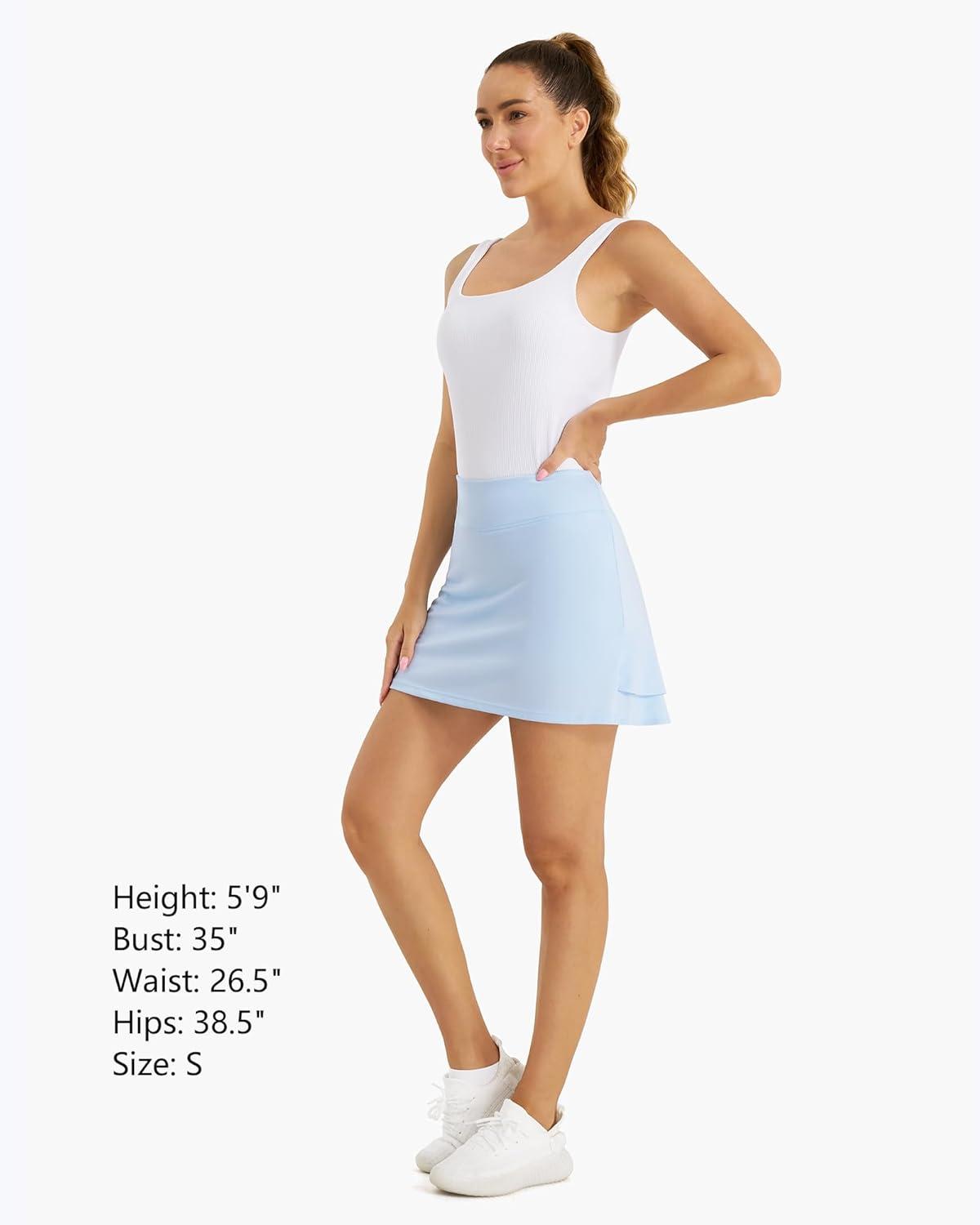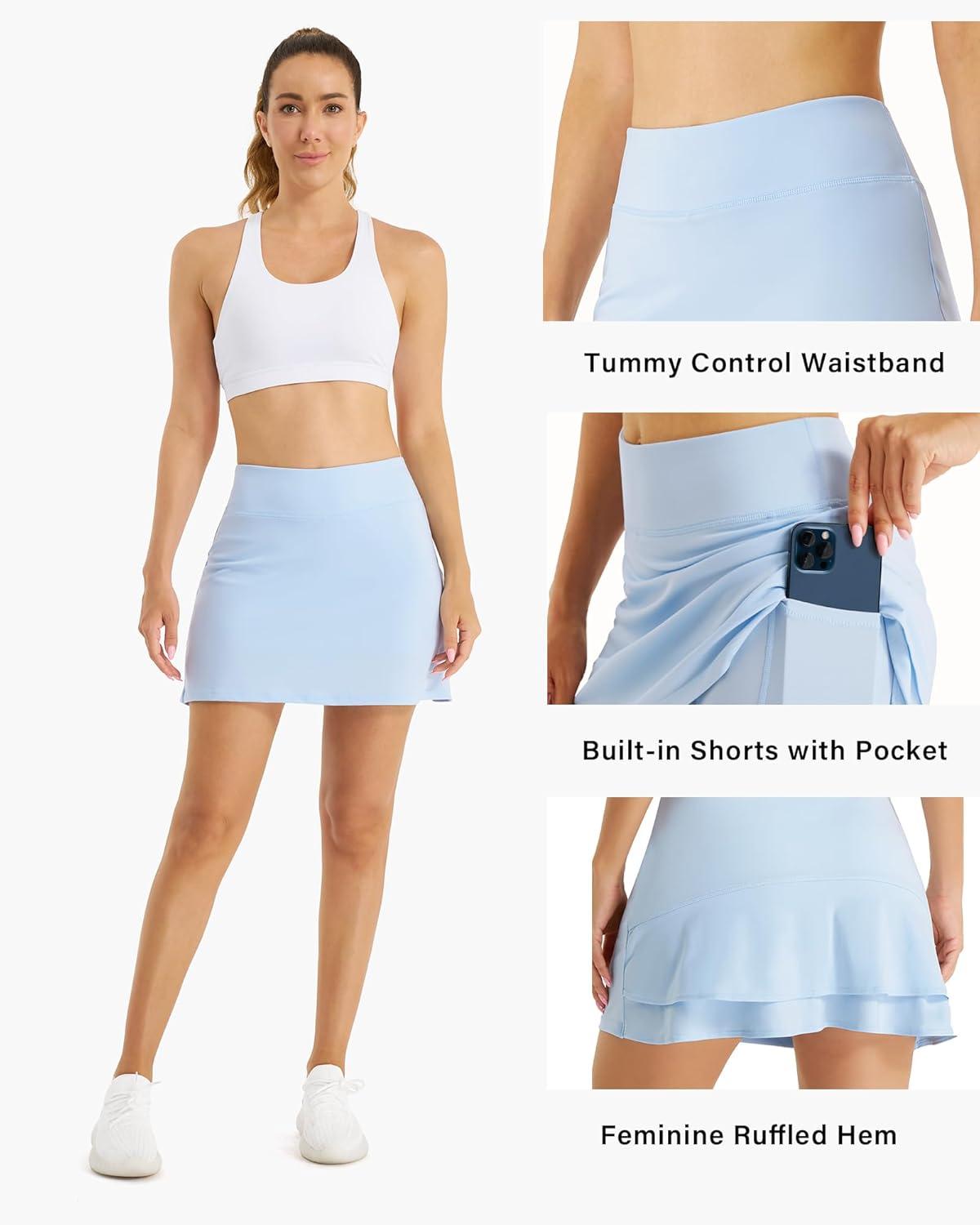 Stelle Women Tennis Skirt Athletic Skort High Waisted Golf Inner Shorts with Pockets Running Sports Pickleball(Light Blue)
