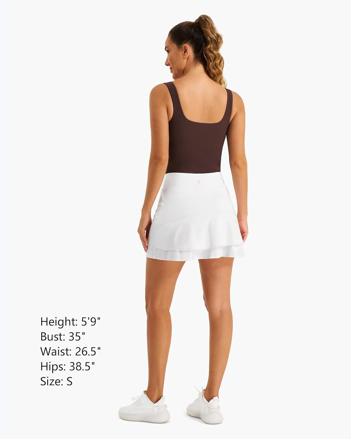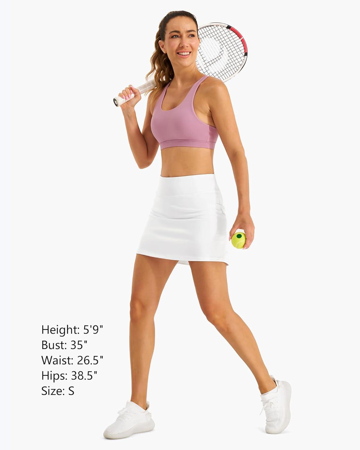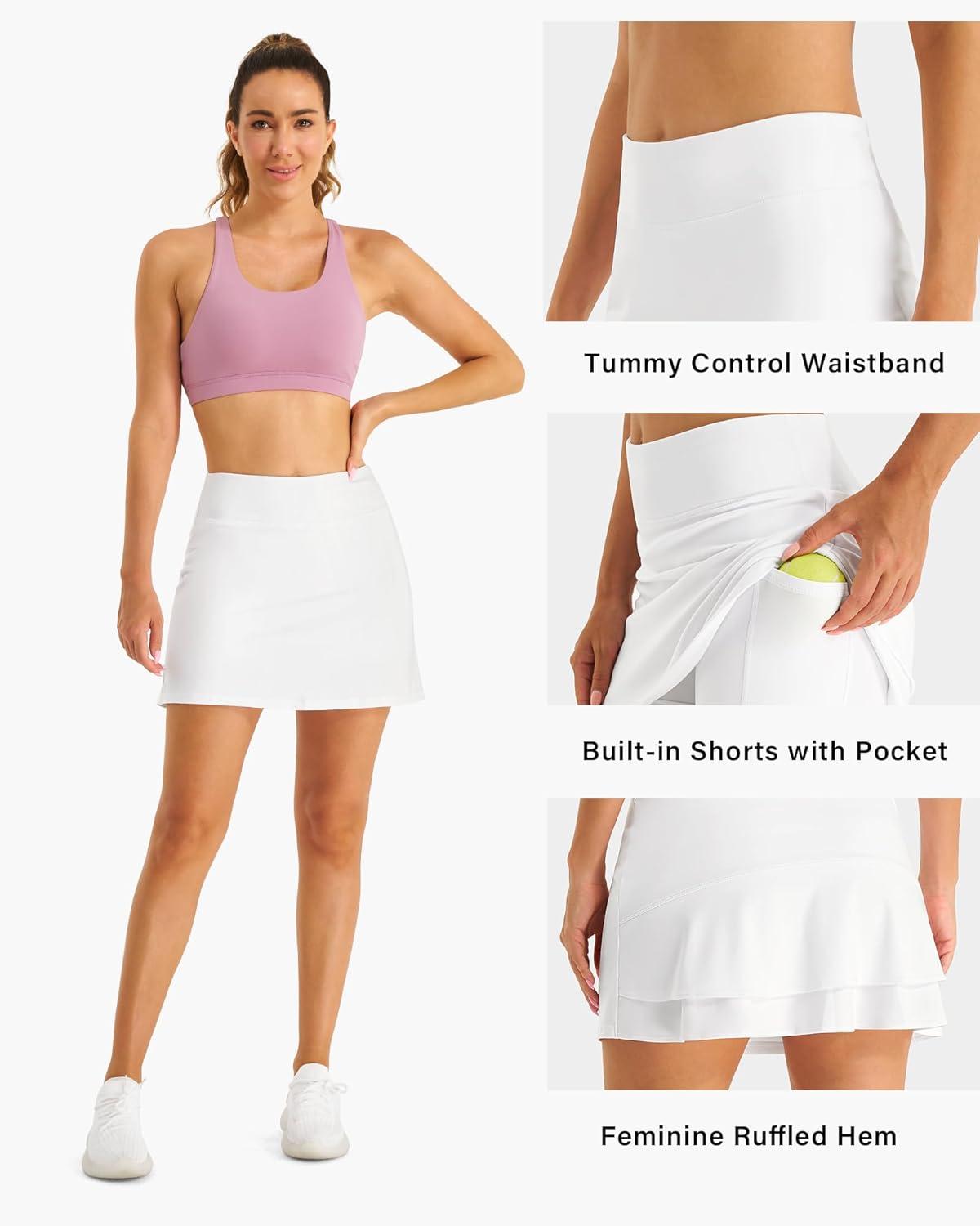 Stelle Women Tennis Skirt Athletic Skort High Waisted Golf Inner Shorts with Pockets Running Sports Pickleball(White)