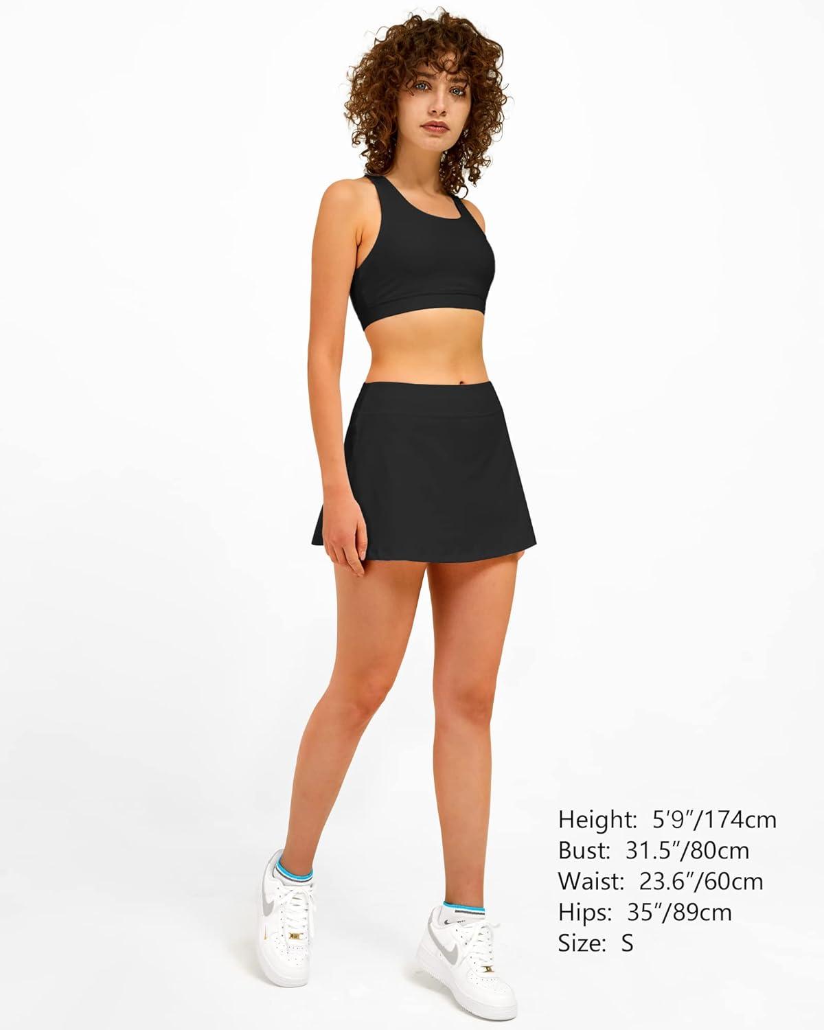 Stelle Women Tennis Skirt Golf Skorts Athletic High Waisted with Pockets Inner Shorts Sport Workout Pleated Pickleball(Black)