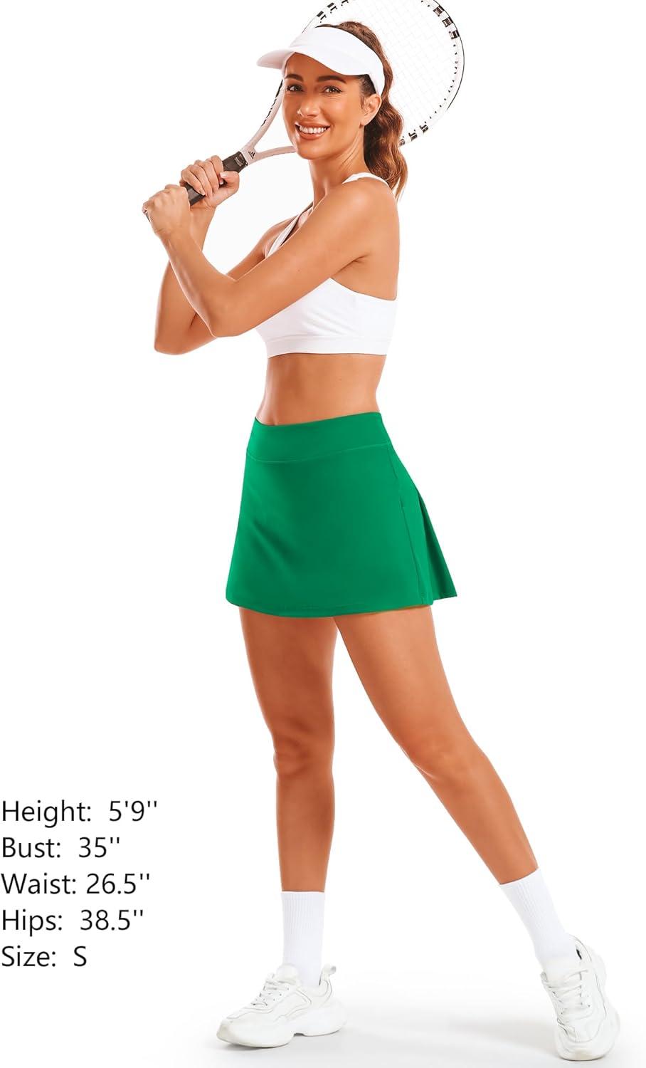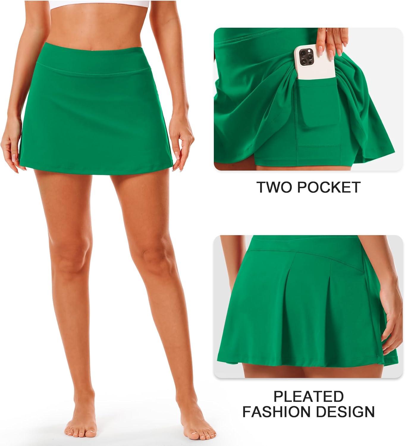 Stelle Women Tennis Skirt Golf Skorts Athletic High Waisted with Pockets Inner Shorts Sport Workout Pleated Pickleball(Evergreen)