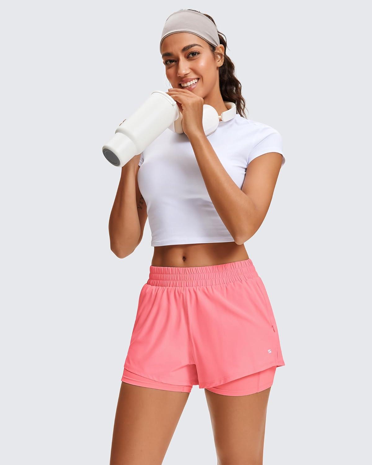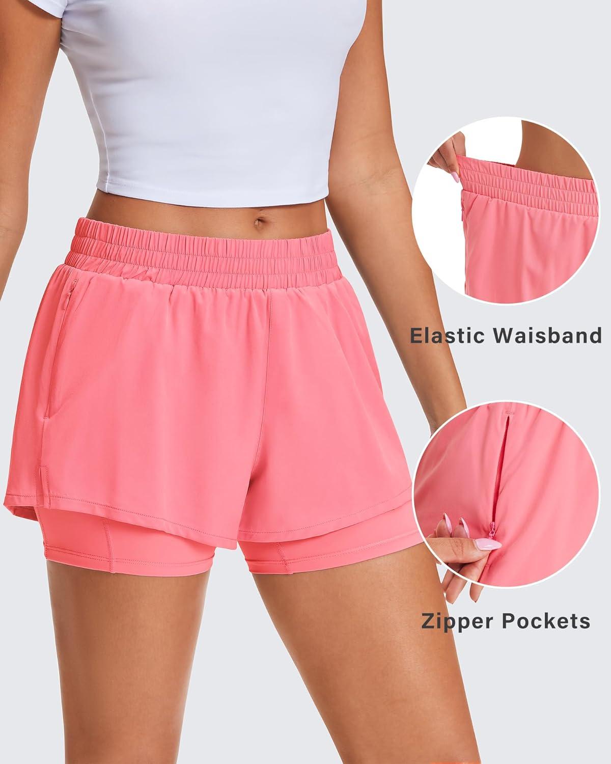 Stelle Women’s 2 in 1 Running Shorts Athletic Workout Gym Shorts High Waisted Shorts with Liner Zipper Pockets(Coral)
