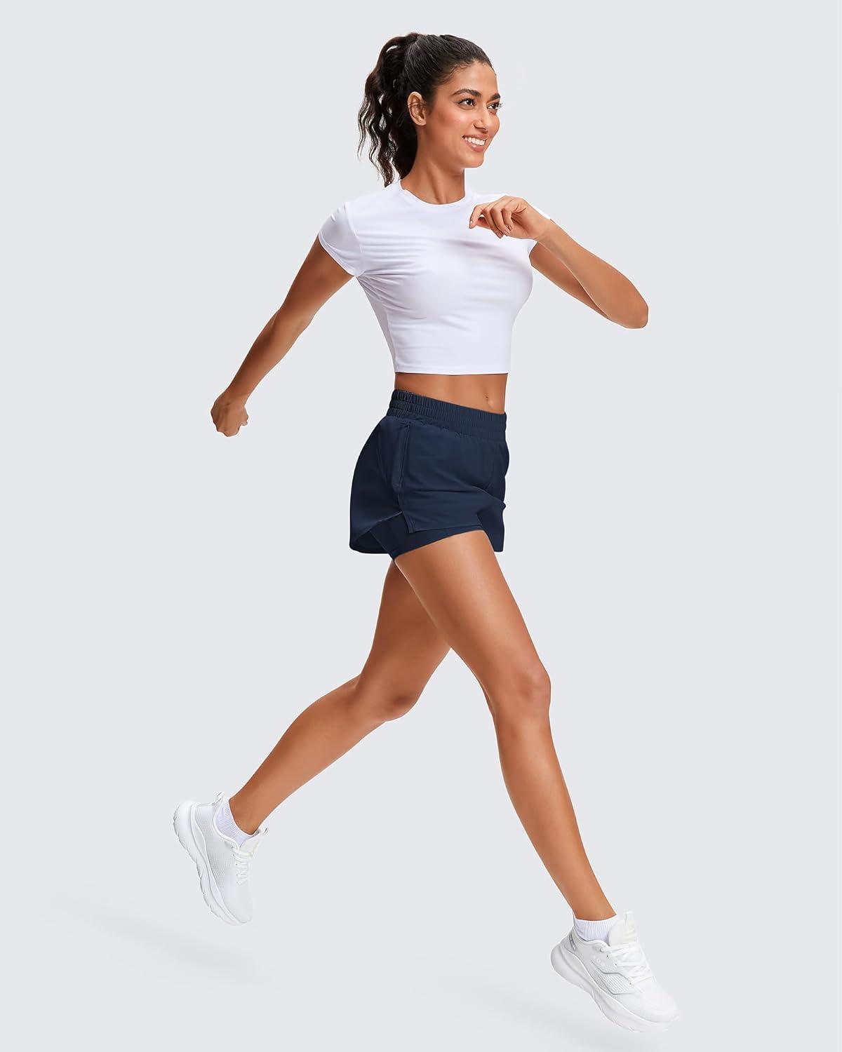 Stelle Women’s 2 in 1 Running Shorts Athletic Workout Gym Shorts High Waisted Shorts with Liner Zipper Pockets(Navy)