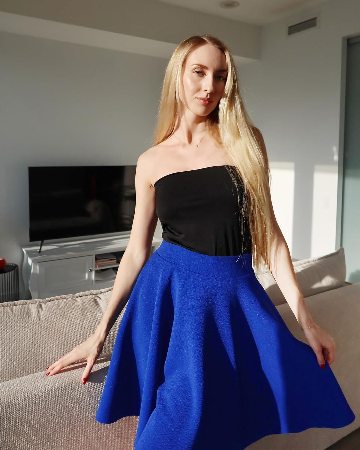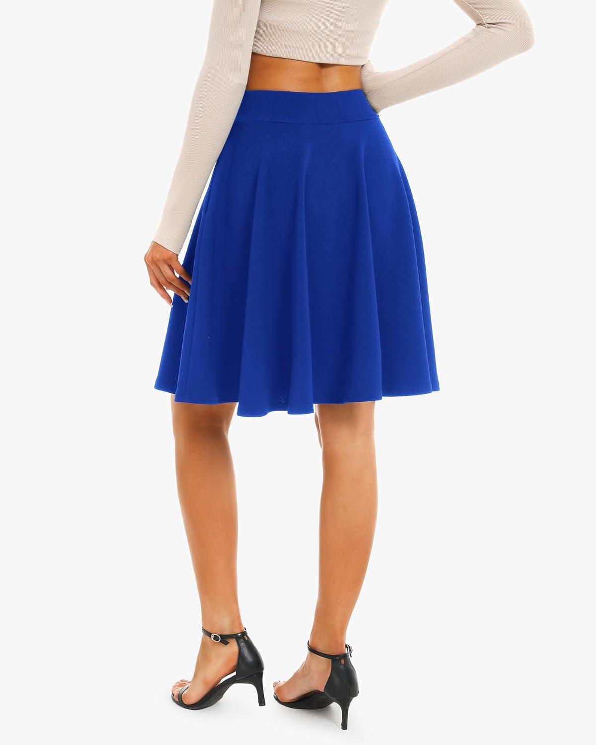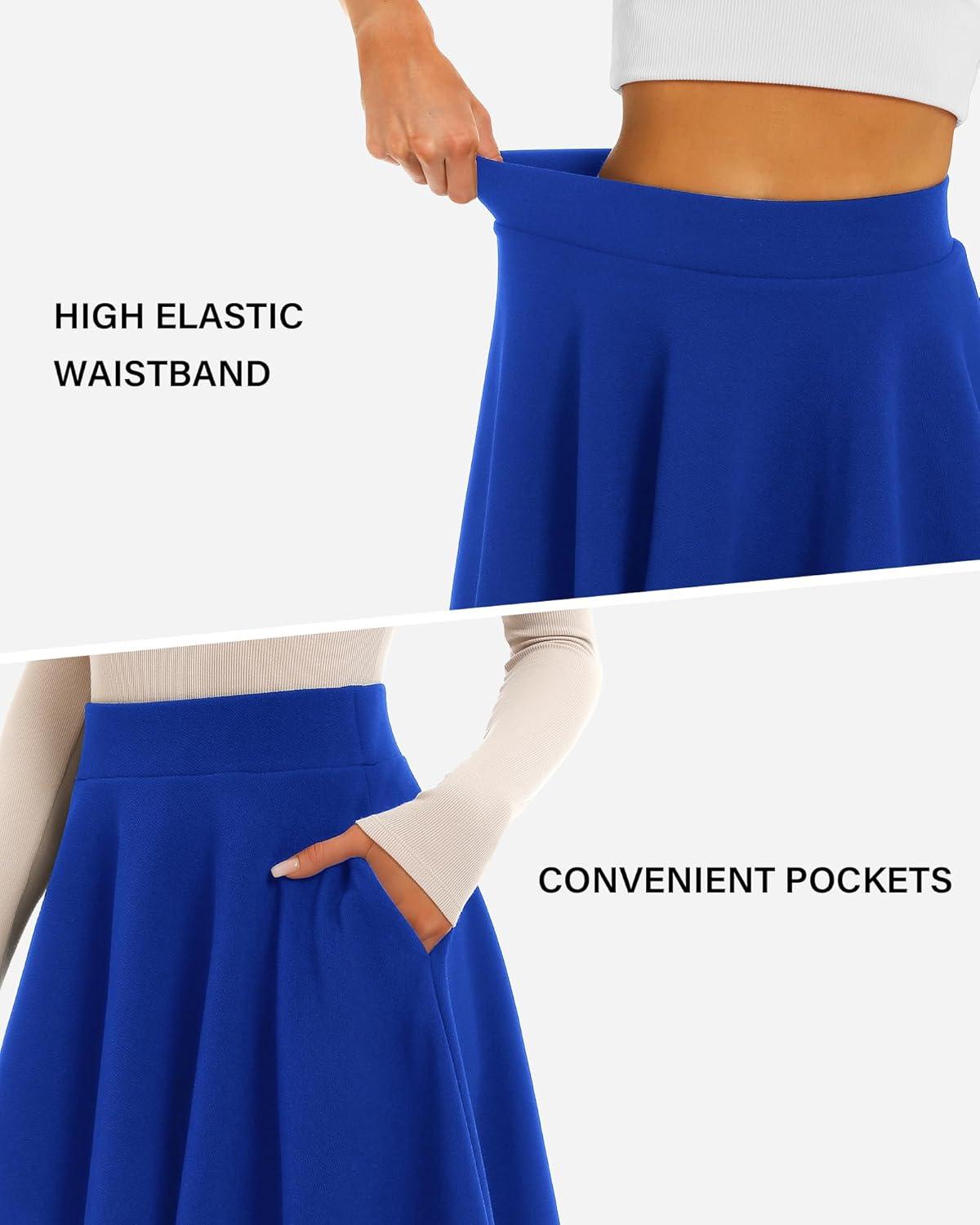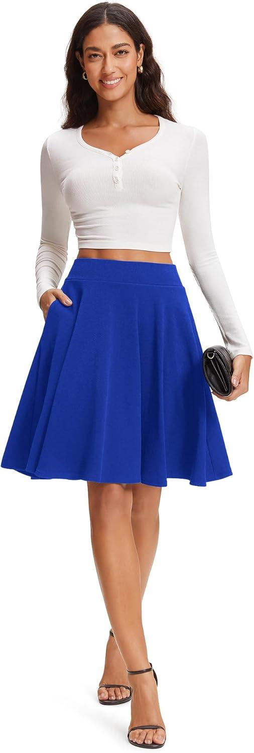 Stelle Women’s 20″ Knee Length Skirts with Pockets Casual Basic Midi Skirt Stretchy High Waisted Skater Flared Pleated(Cobalt Blue)