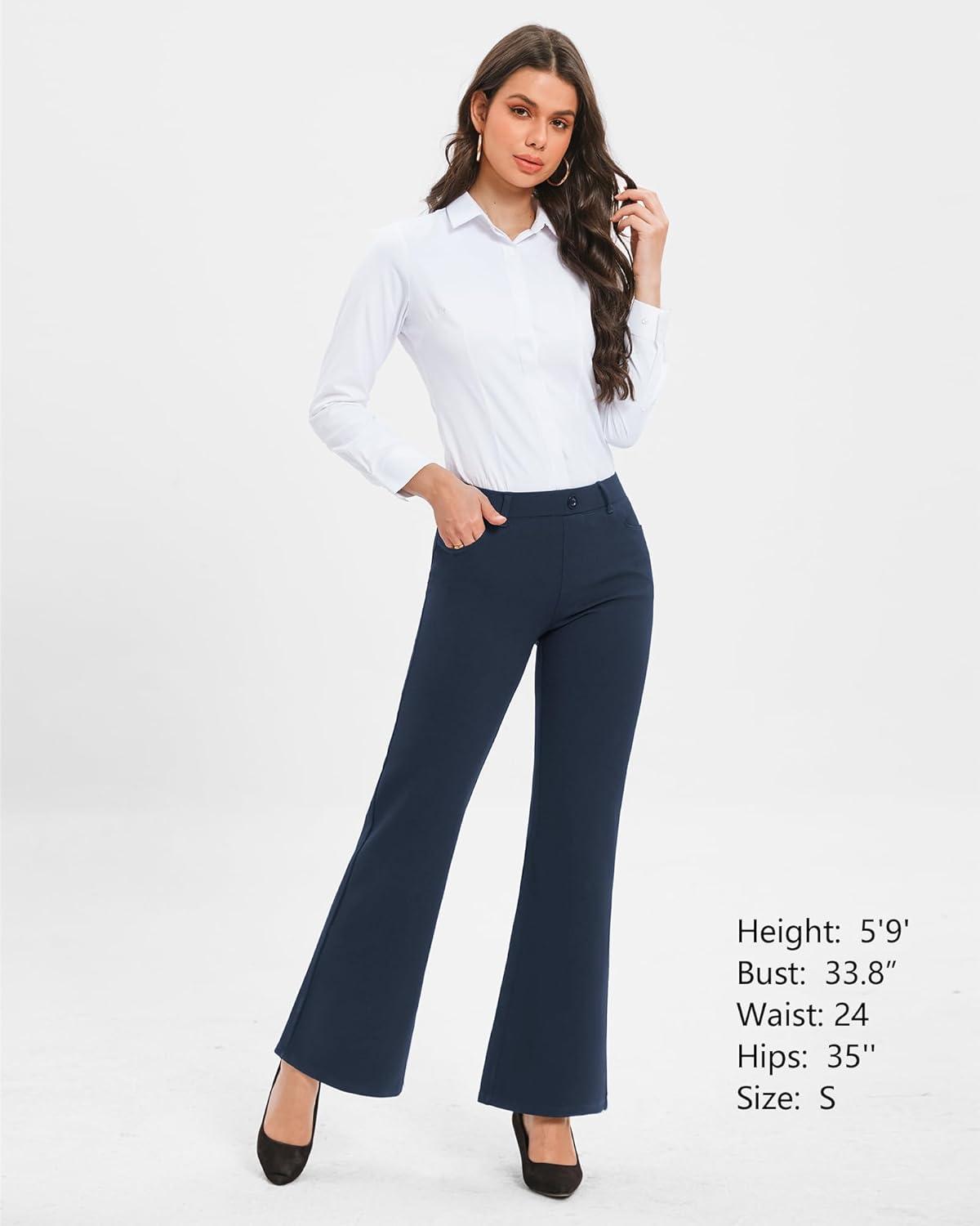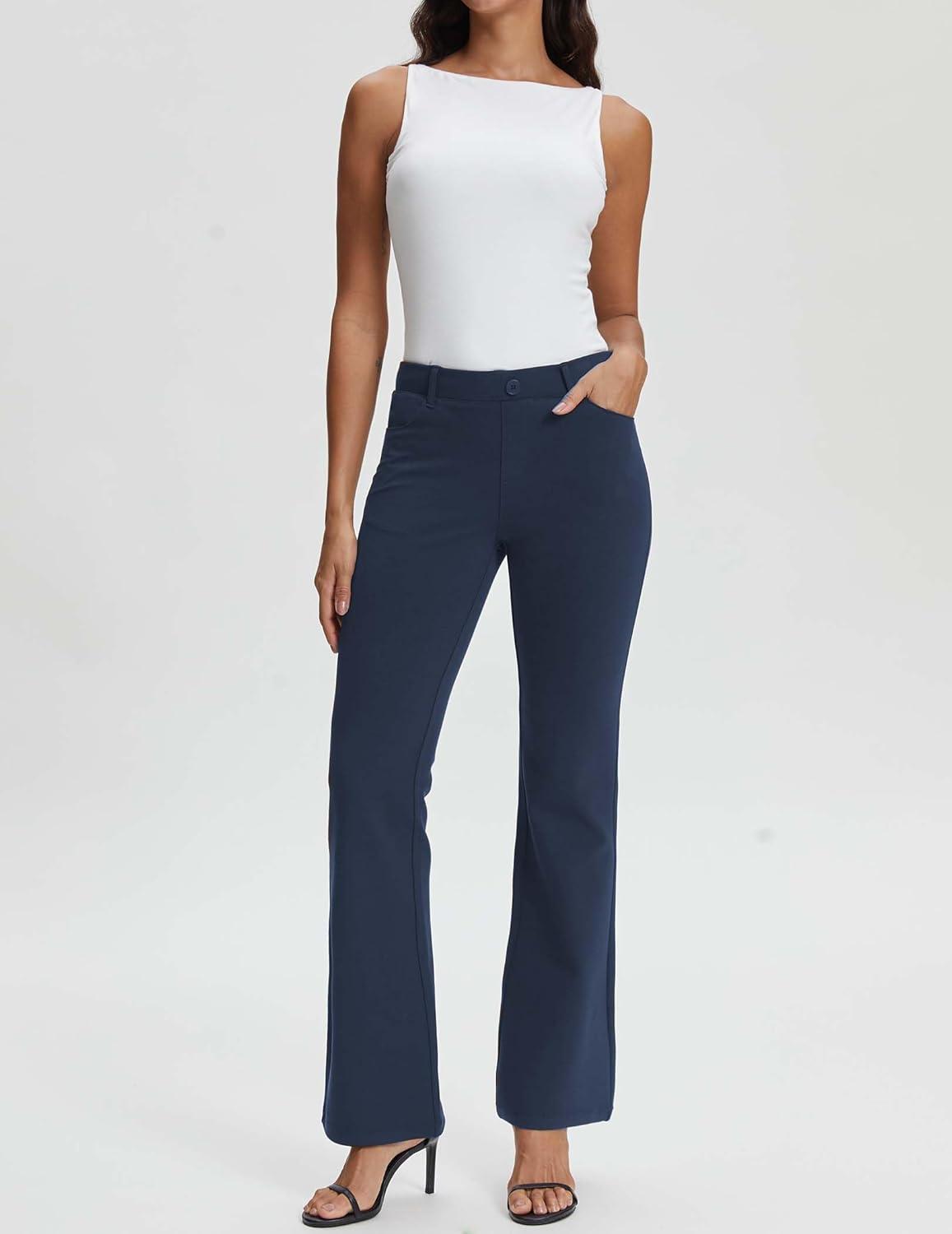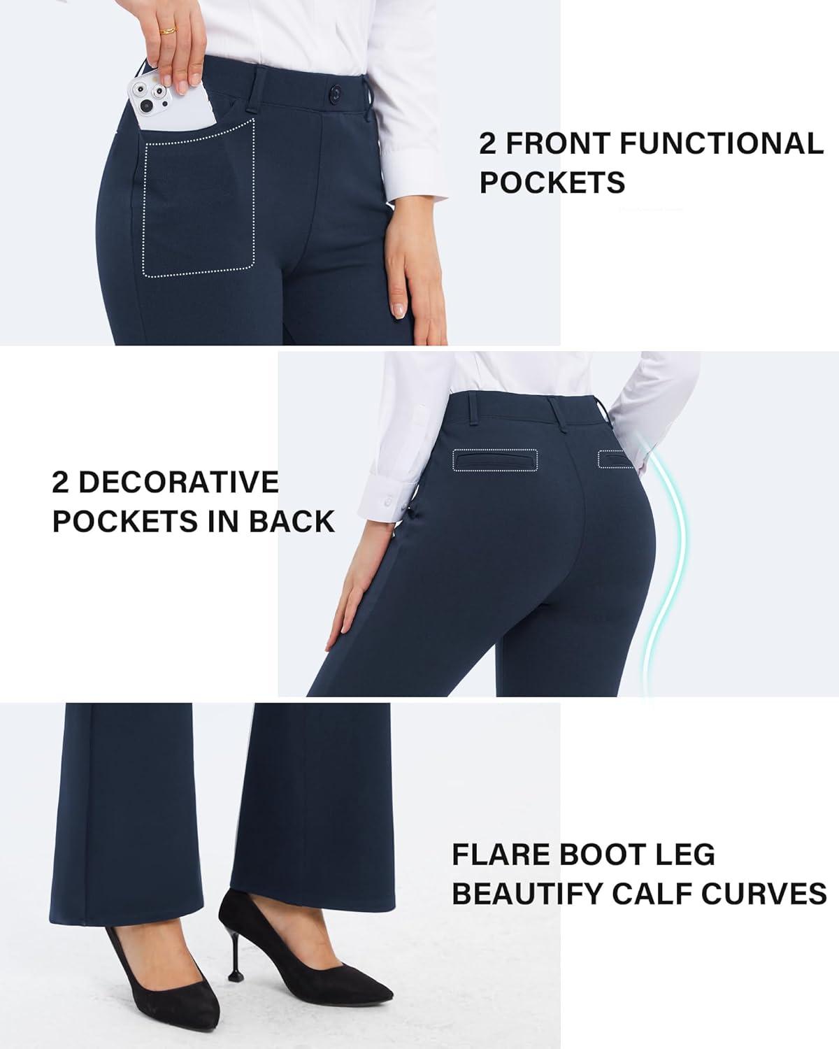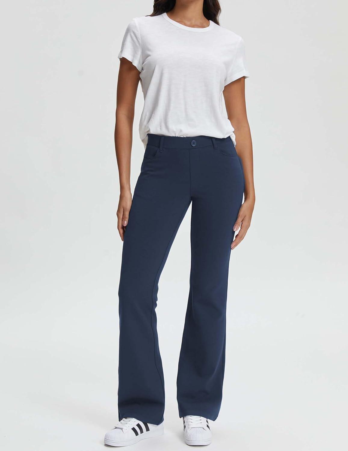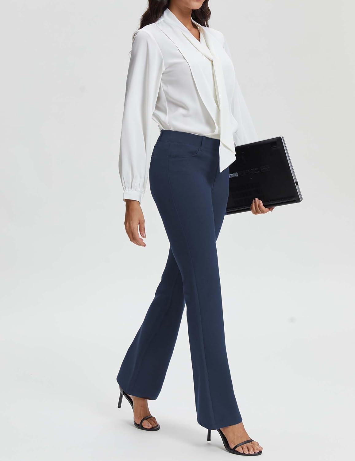 Stelle Women’s 30″ Bootcut Dress Pants Business Casual with Pockets Stretchy High Waisted Office Pull On Slacks for Work(Navy)