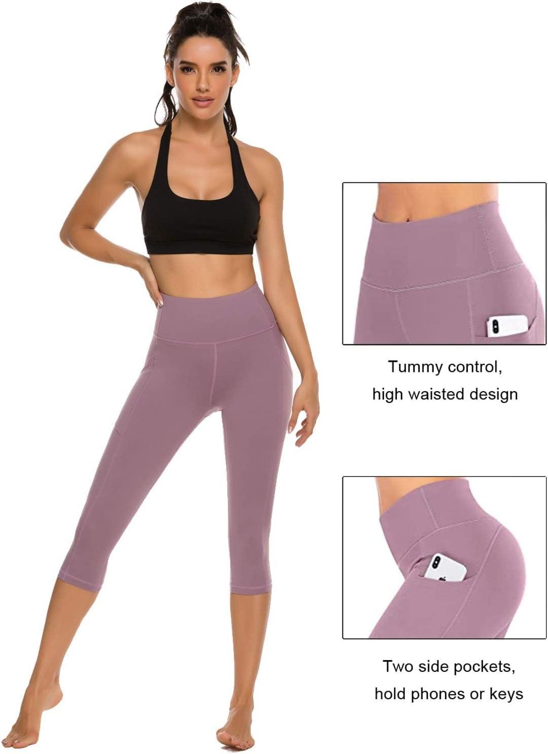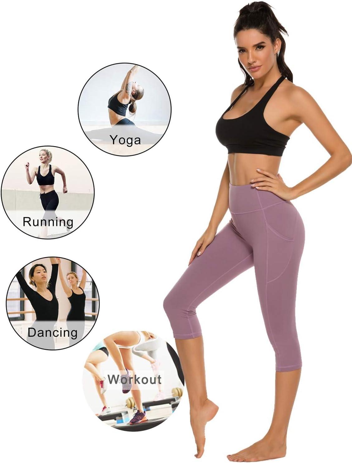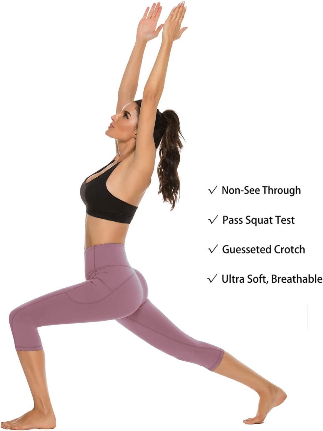 Stelle Women’s Capri Yoga Pants with Pockets Essential High Waisted Legging for Workout(Cotton Like Softness-dusty Lavender)