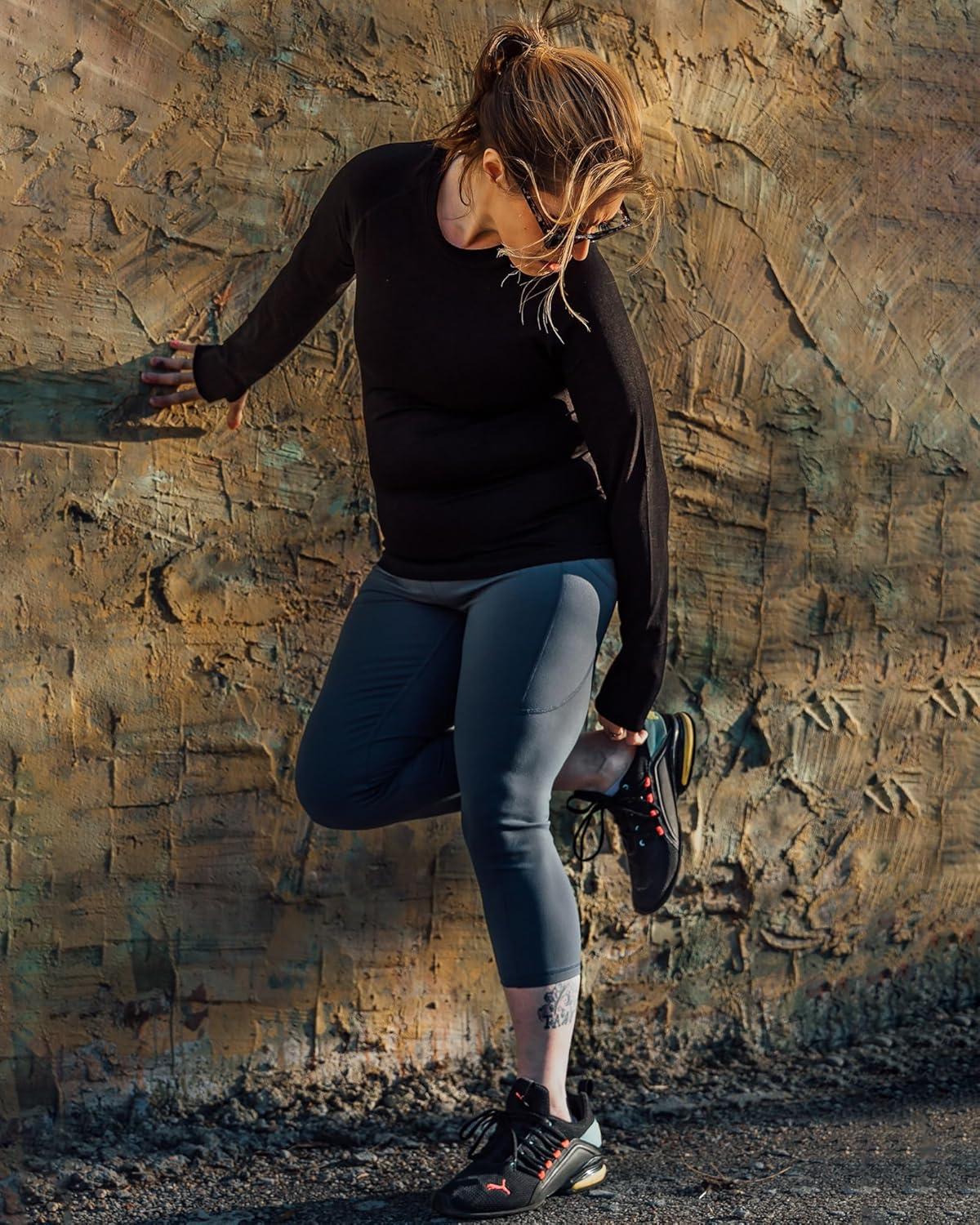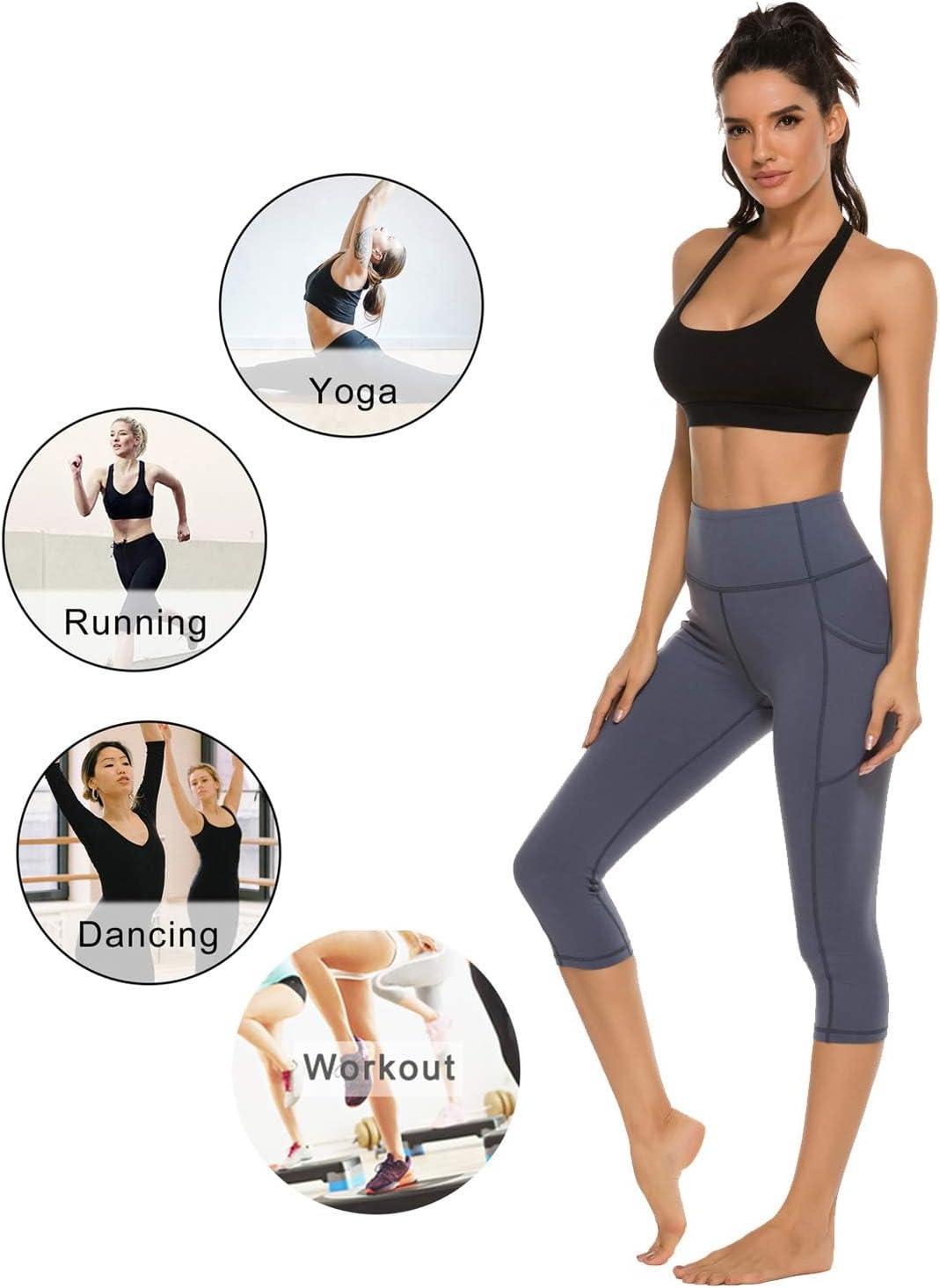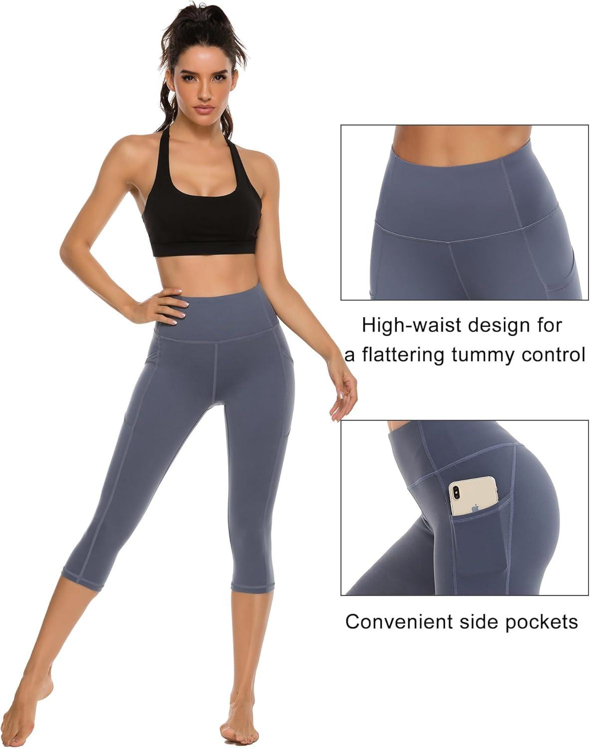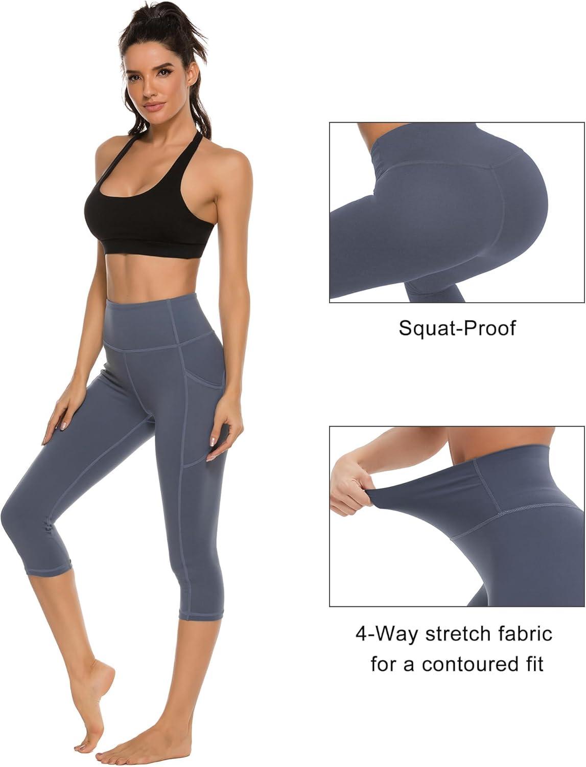 Stelle Women’s Capri Yoga Pants with Pockets Essential High Waisted Legging for Workout(Cotton Like Softness-grey Blue)