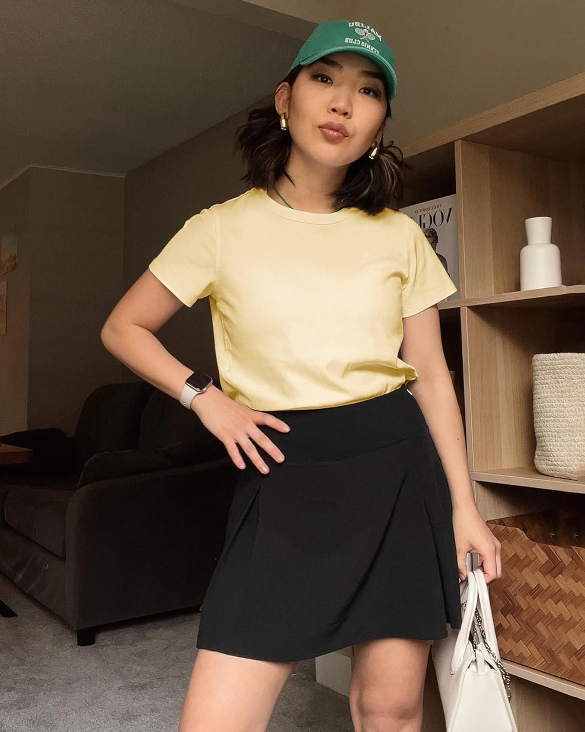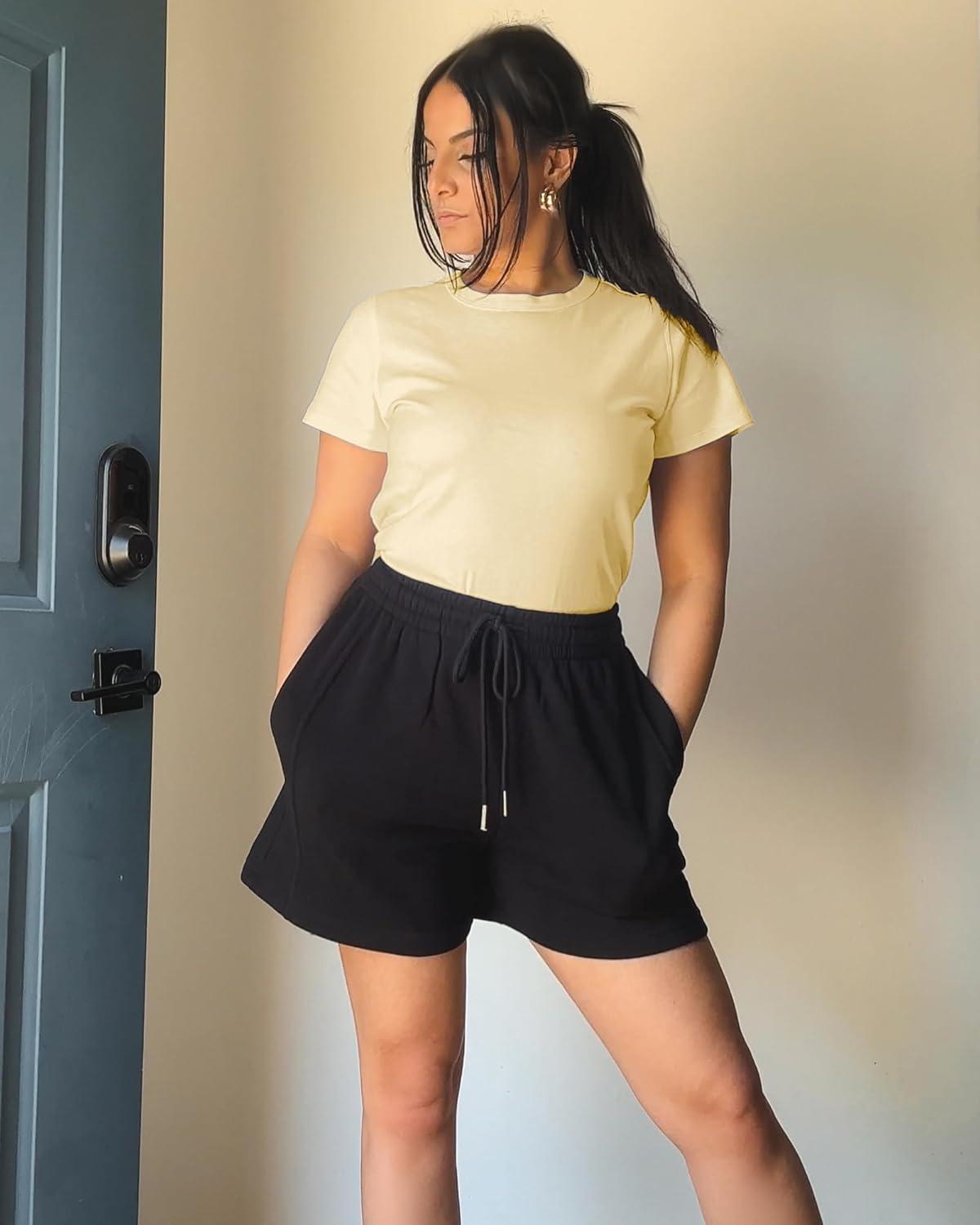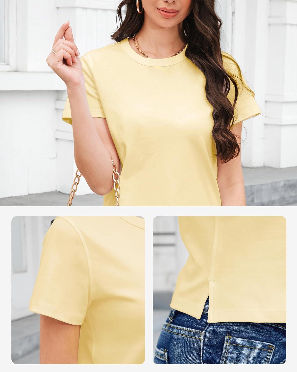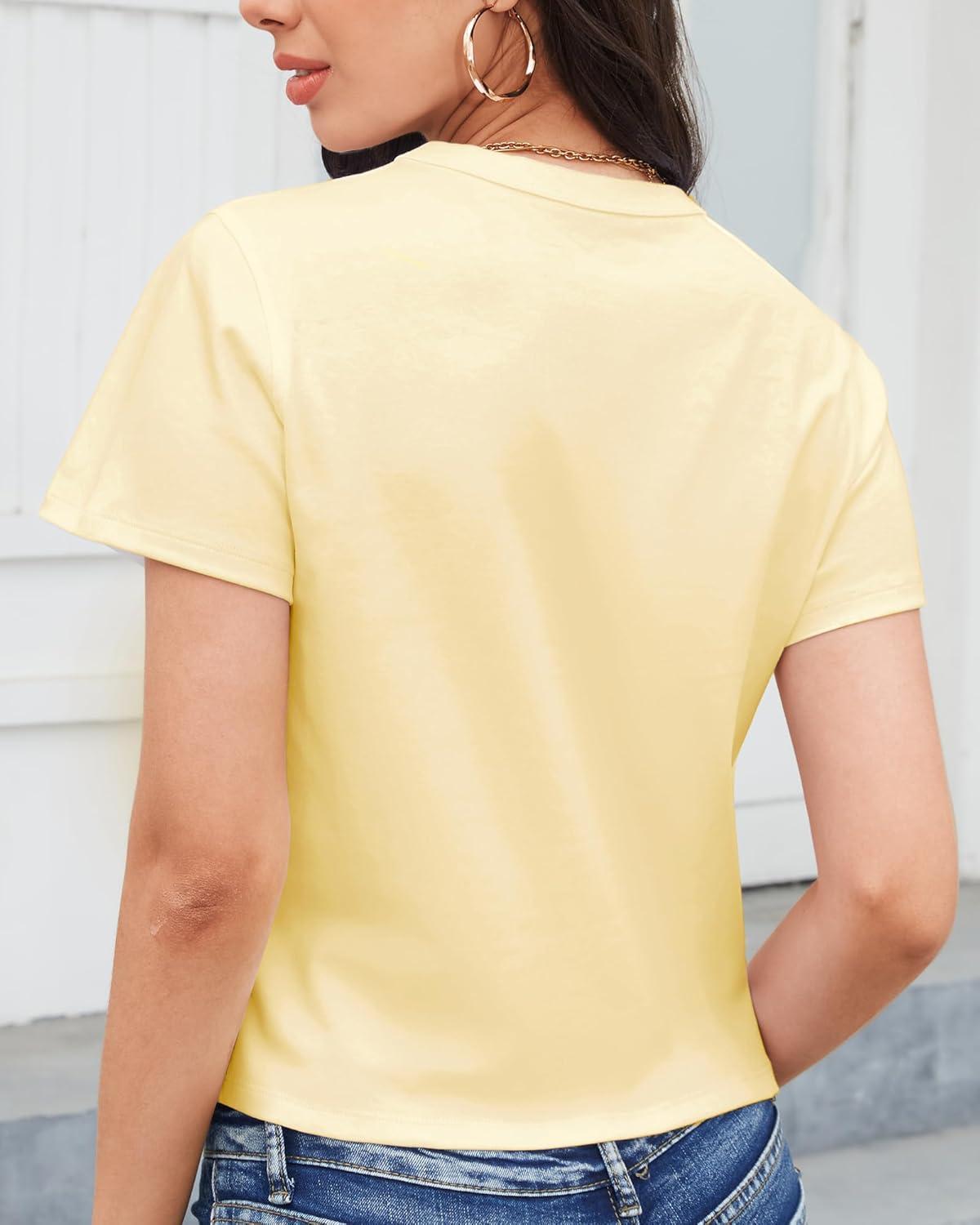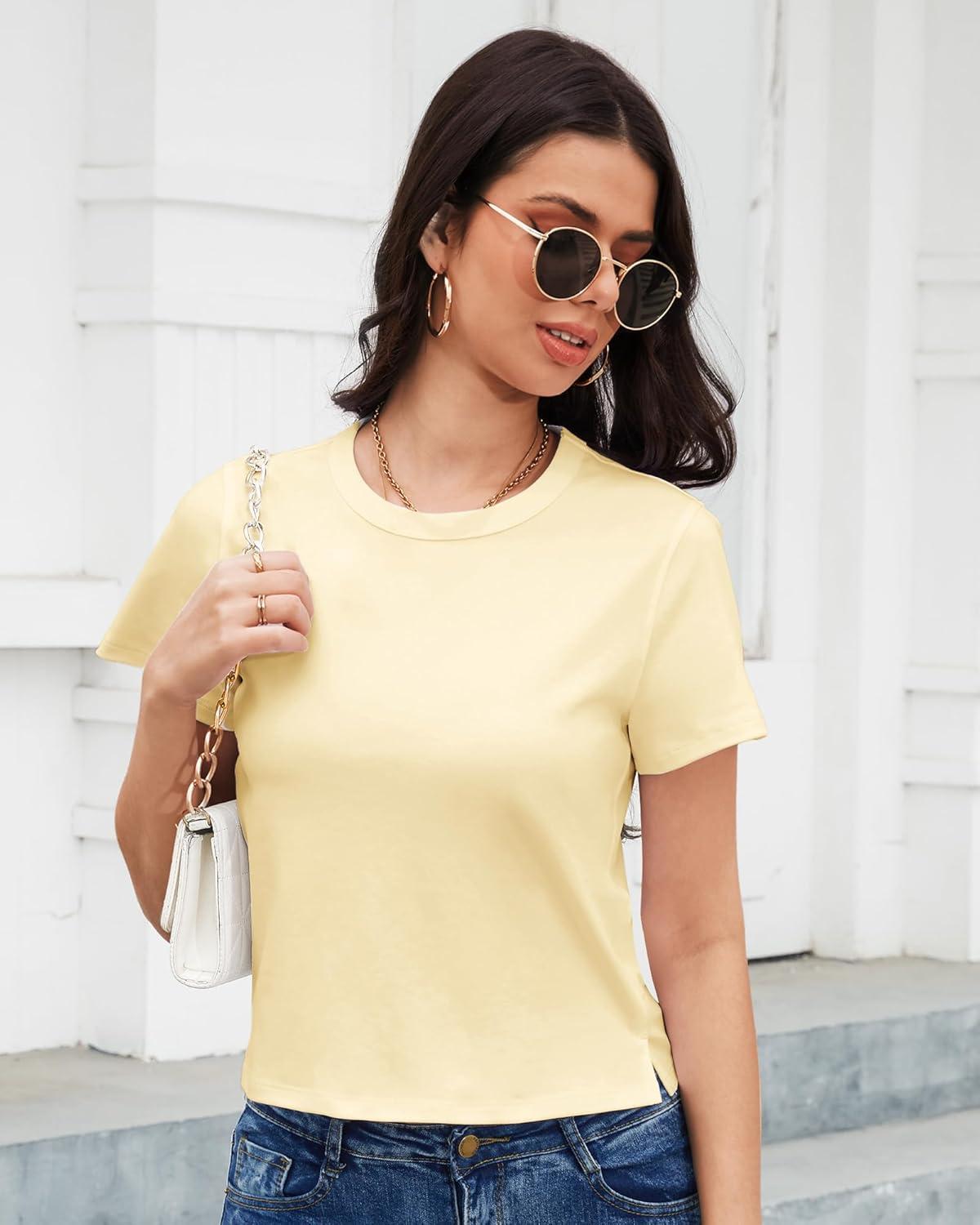 Stelle Women’s Cotton T-Shirts Crewneck Short Sleeve Basic Tees Summer Casual Solid Crop Tops(Vanilla)