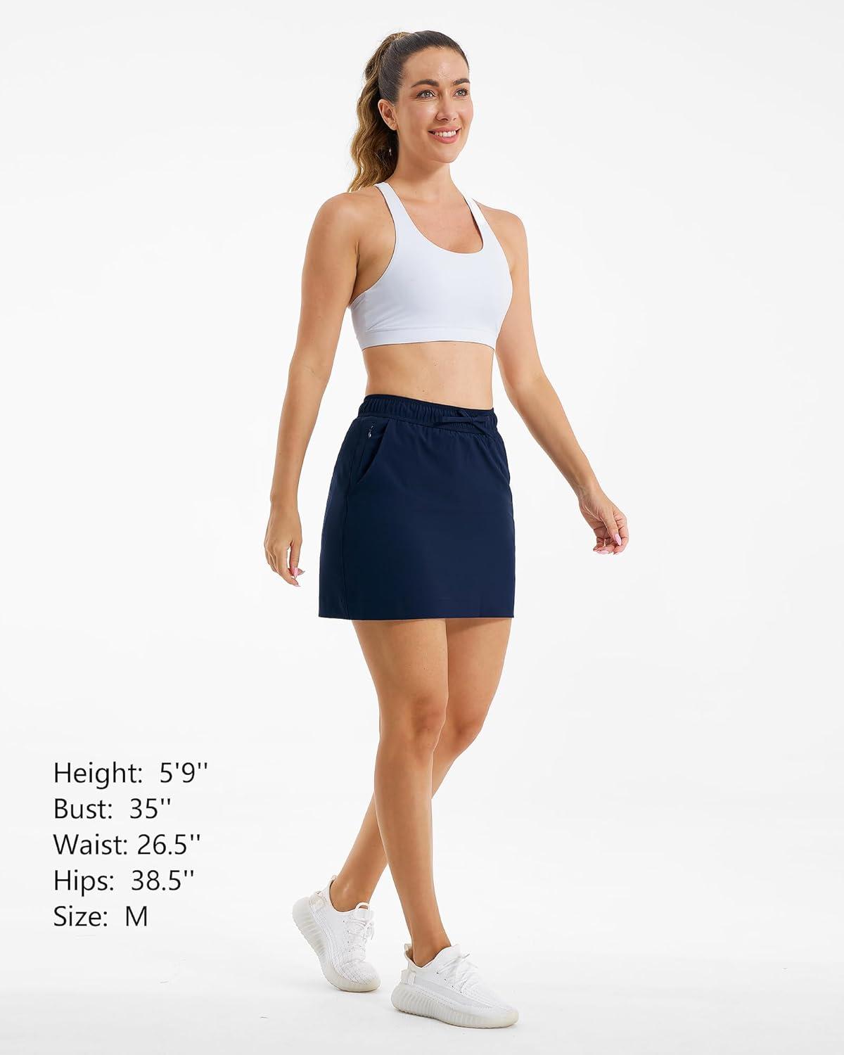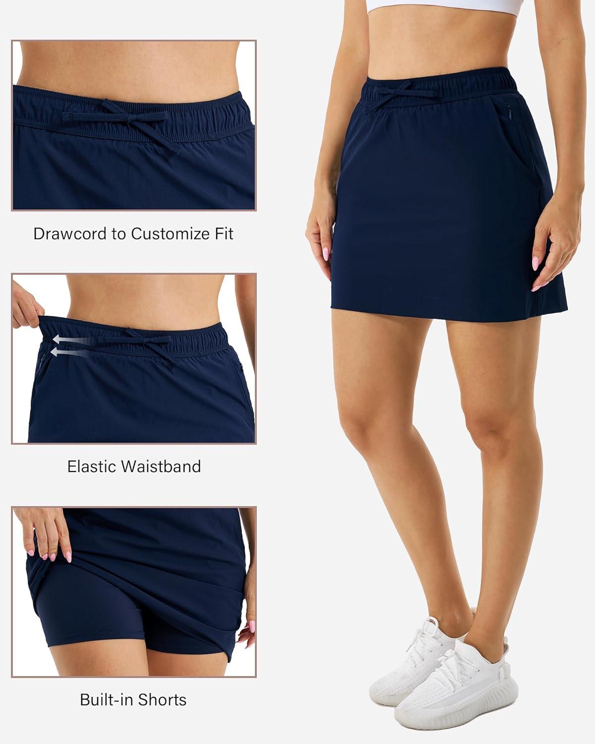 Stelle Women’s Golf Skort Skirts 16″ Hiking Skort for Tennis Outdoors Quick Drying Athletic Workout Skort with Pockets(Navy)