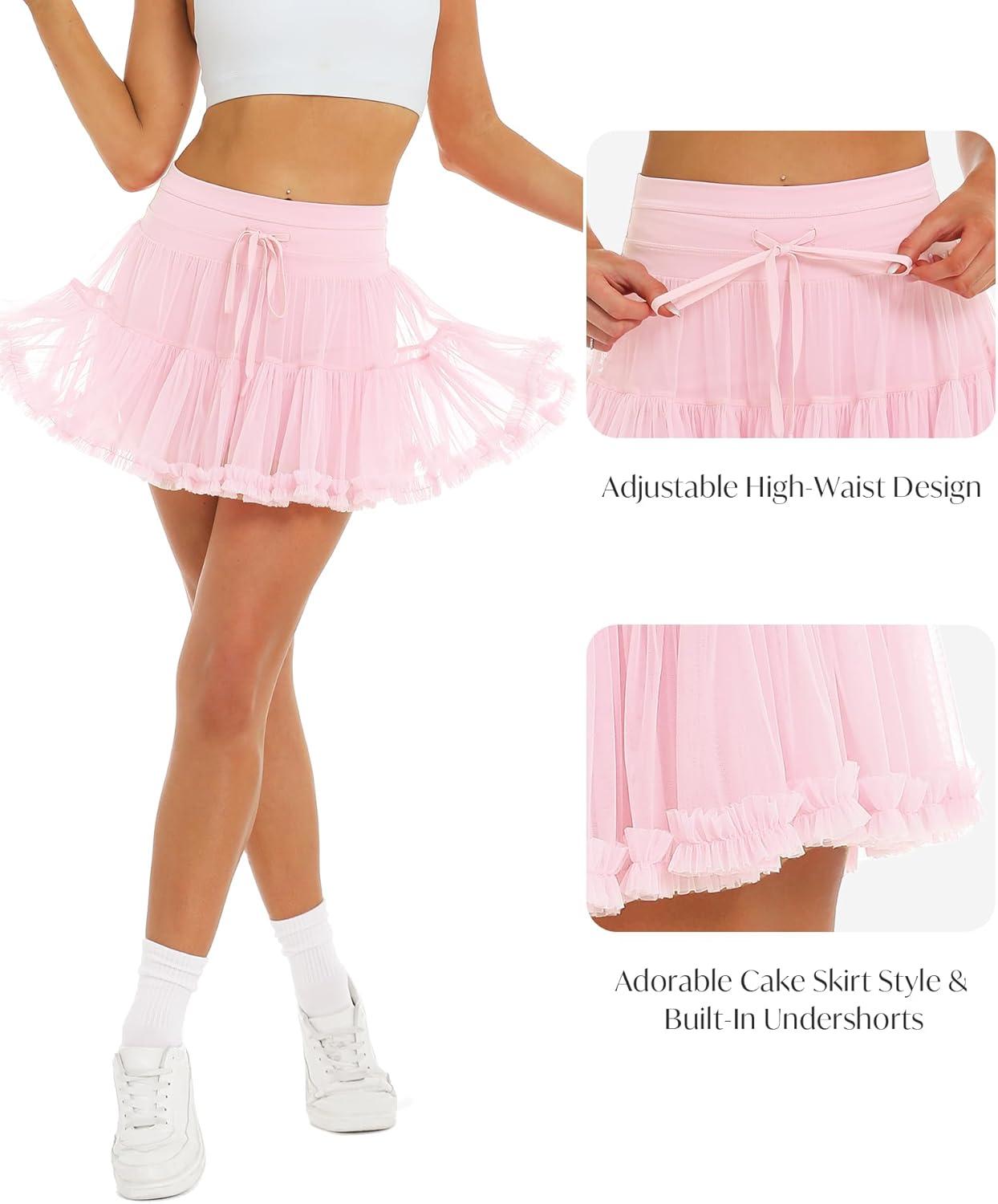 Stelle Women’s High Waist Athletic Skorts with Shorts Pockets Ruffle Hem Flowy Skirts Mini Tiered Short Skirt Casual Summer(Ballet Pink)