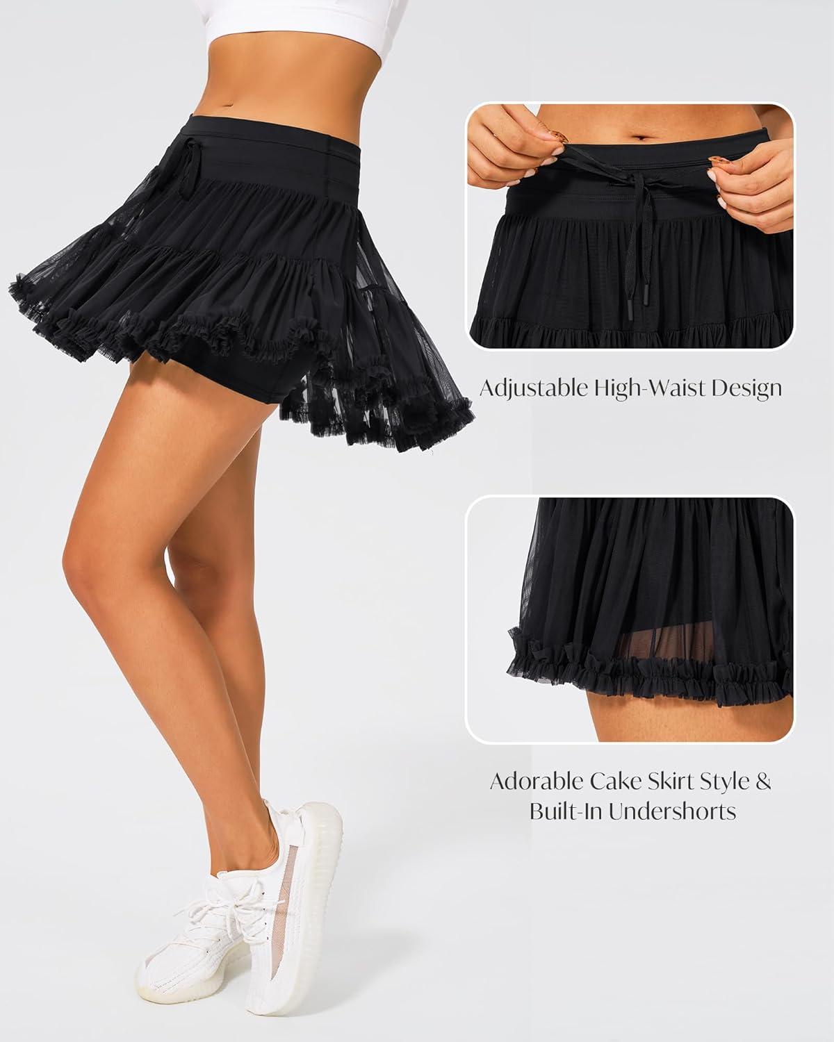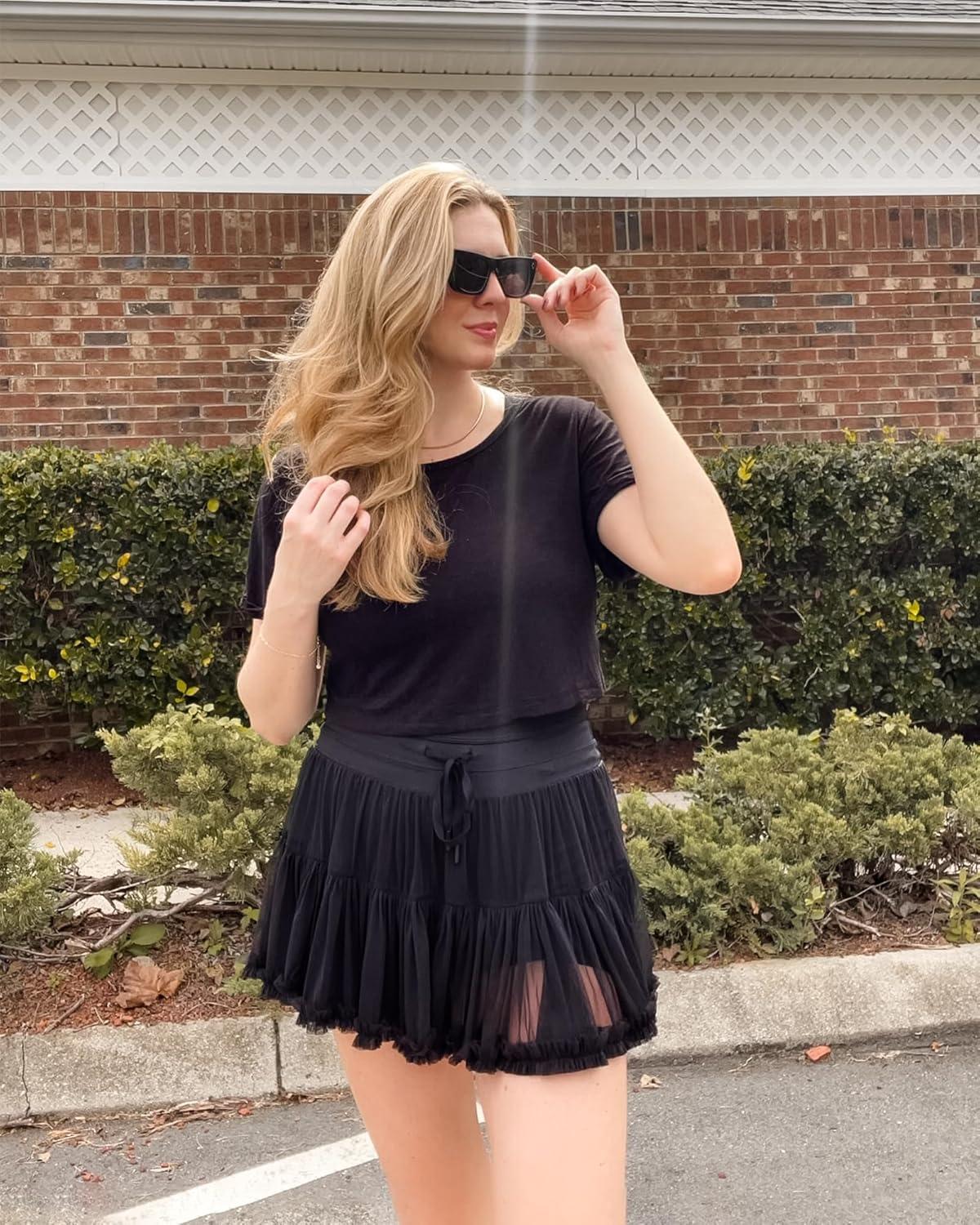 Stelle Women’s High Waist Athletic Skorts with Shorts Pockets Ruffle Hem Flowy Skirts Mini Tiered Short Skirt Casual Summer(Black)