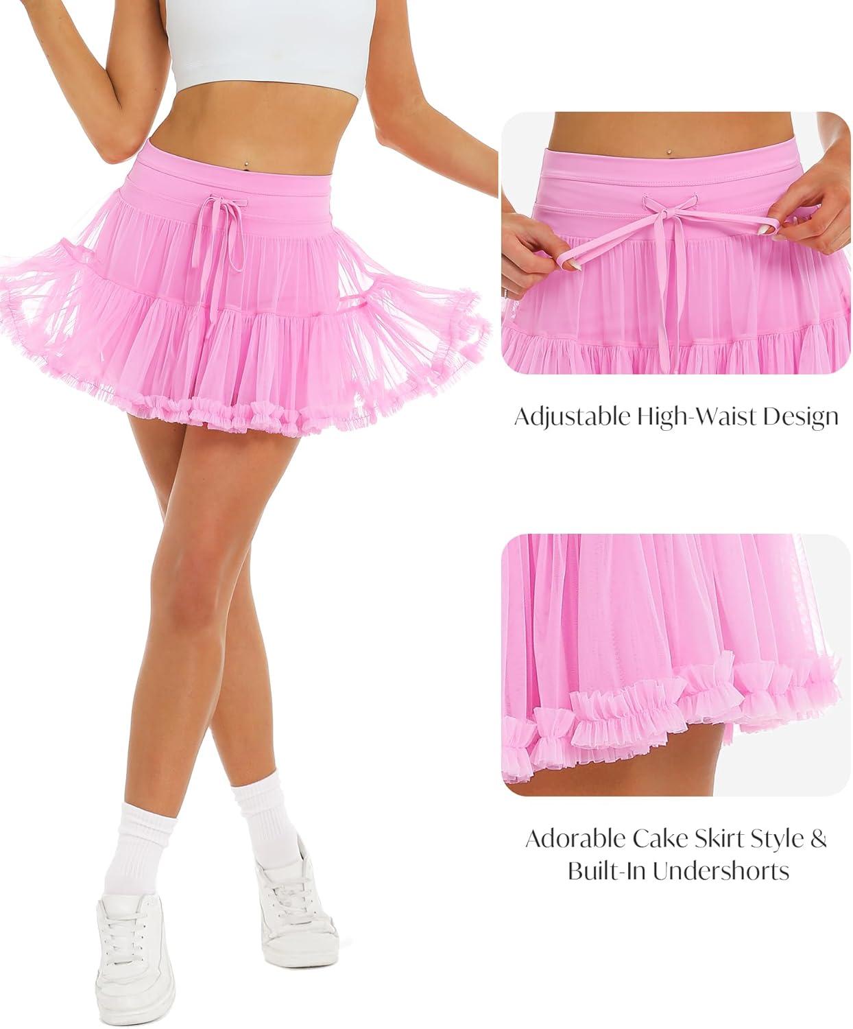 Stelle Women’s High Waist Athletic Skorts with Shorts Pockets Ruffle Hem Flowy Skirts Mini Tiered Short Skirt Casual Summer(Cotton Candy)