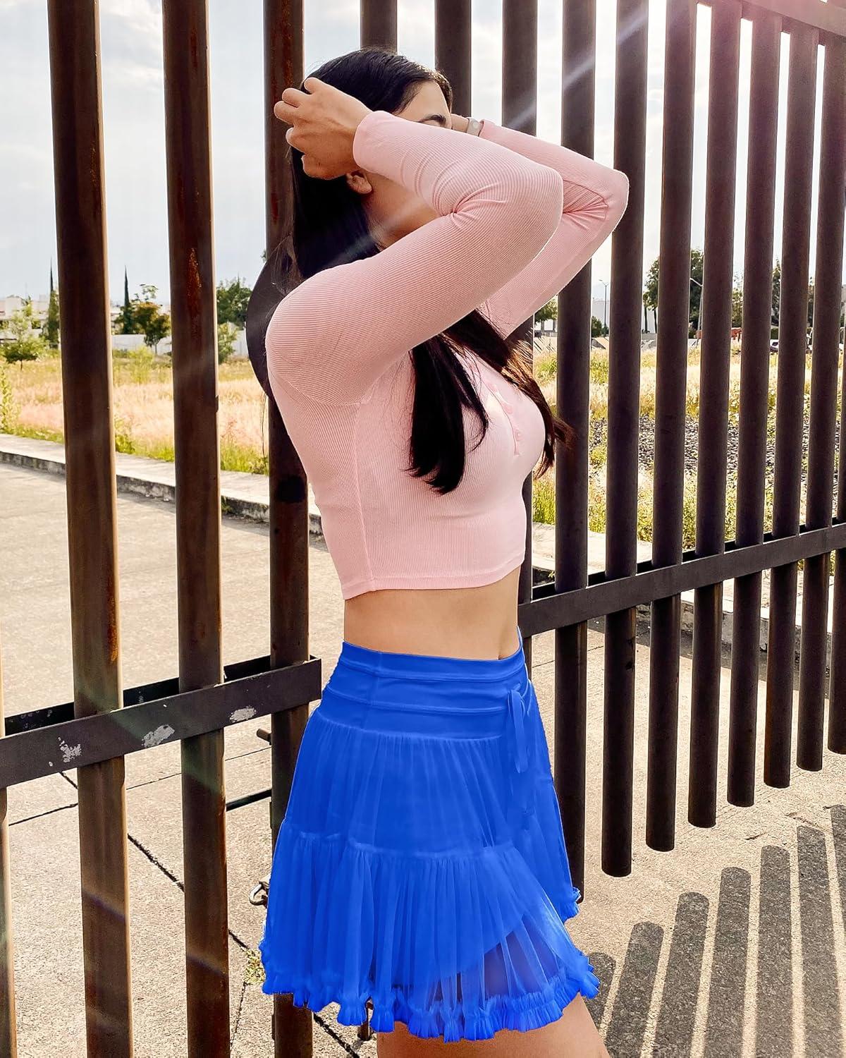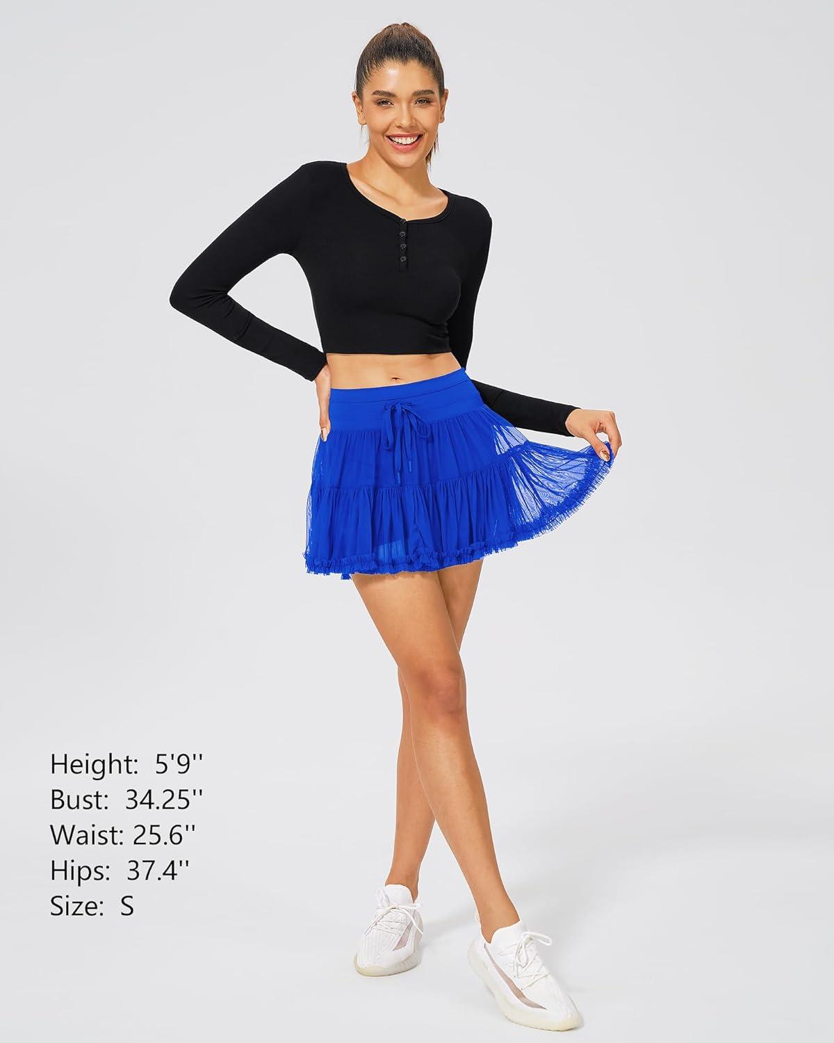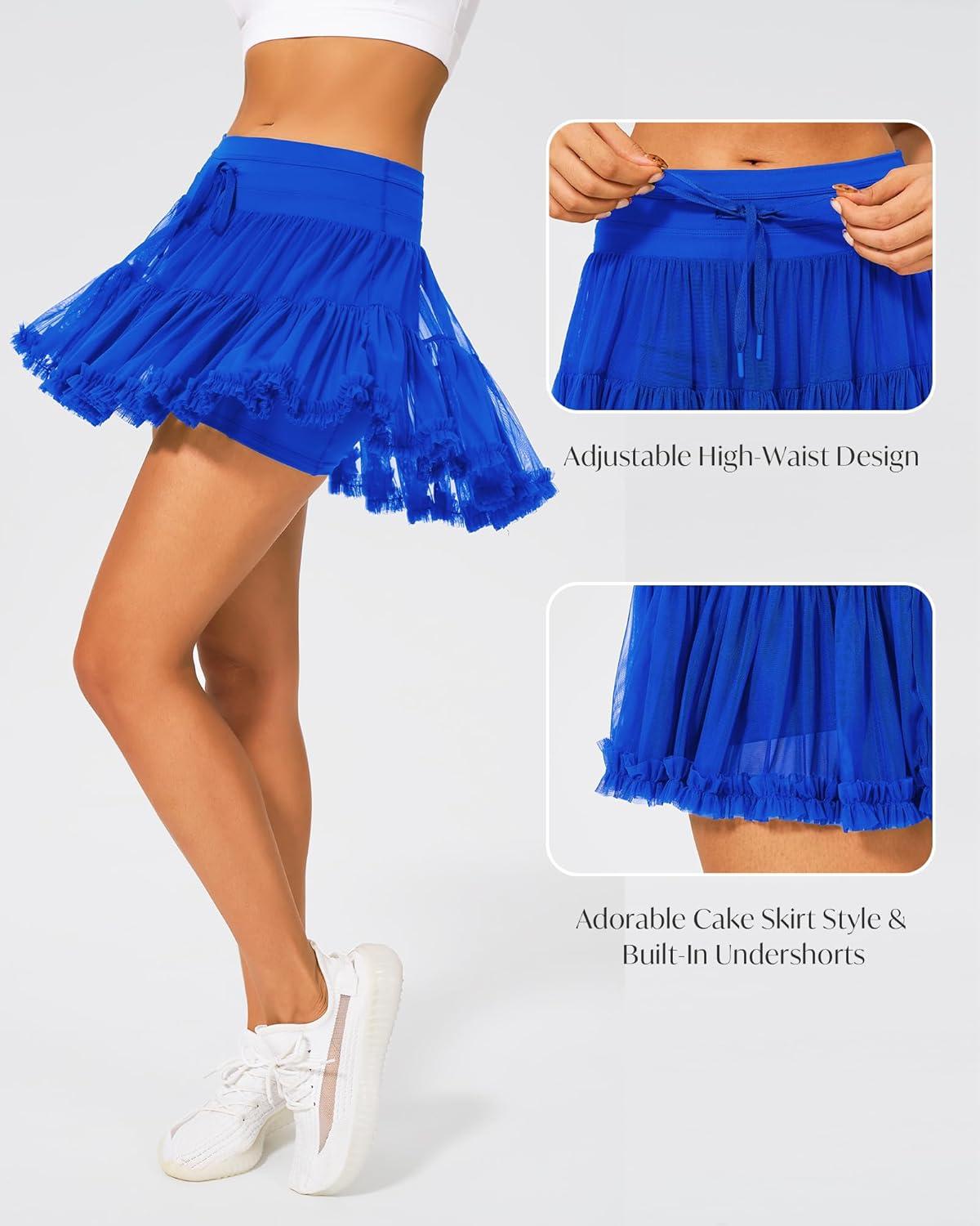 Stelle Women’s High Waist Athletic Skorts with Shorts Pockets Ruffle Hem Flowy Skirts Mini Tiered Short Skirt Casual Summer(Sapphire)