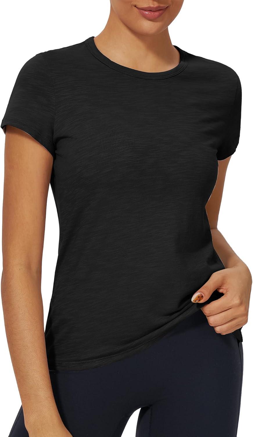 Stelle Womens Modal Soft Crewneck Short Sleeve T Shirts Summer Casual Basic Tops Tees(Black)