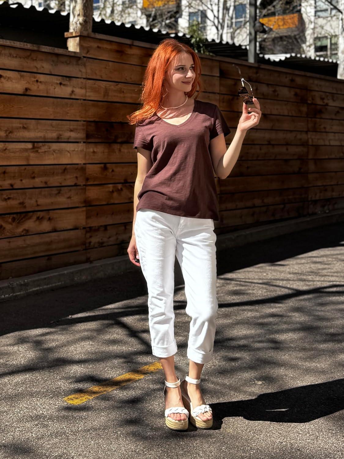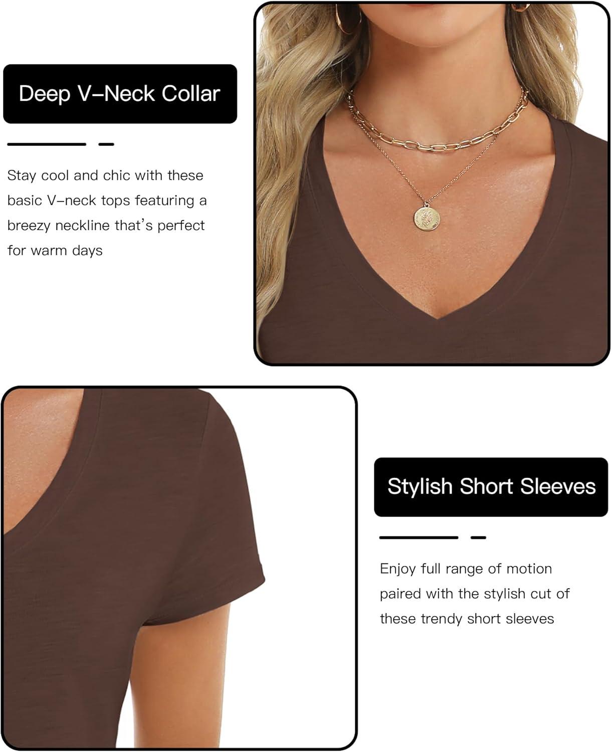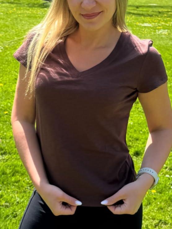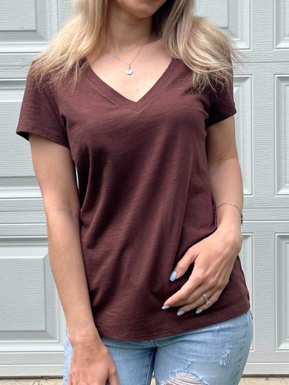 Stelle Womens Modal Soft T Shirts Short Sleeve V Neck Basic Tee Casual Loose Fit Tops Lightweight Soft Summer Outfits Clothes(Cocoa)