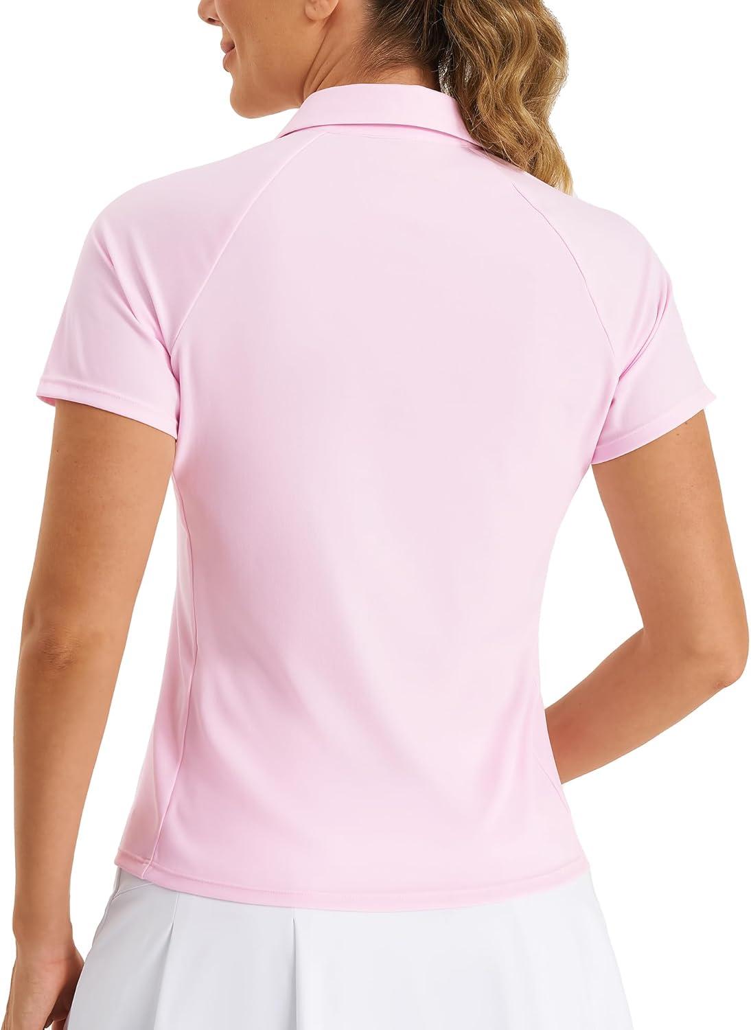 Stelle Womens Polo Golf Shirts UPF 50+ V Neck Short Sleeve Collared Tennis Shirts Casual Tank Tops(Cherry Blossom)