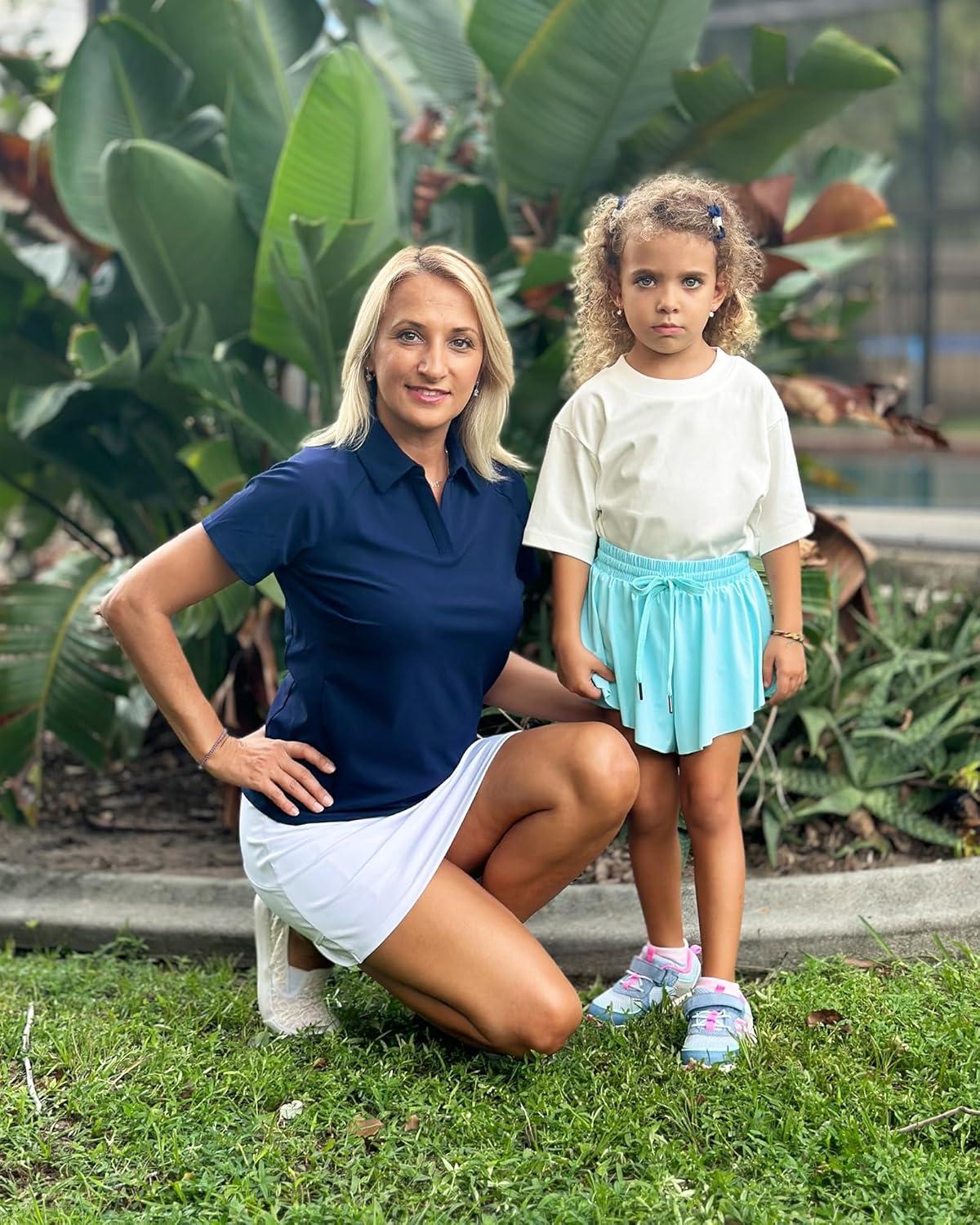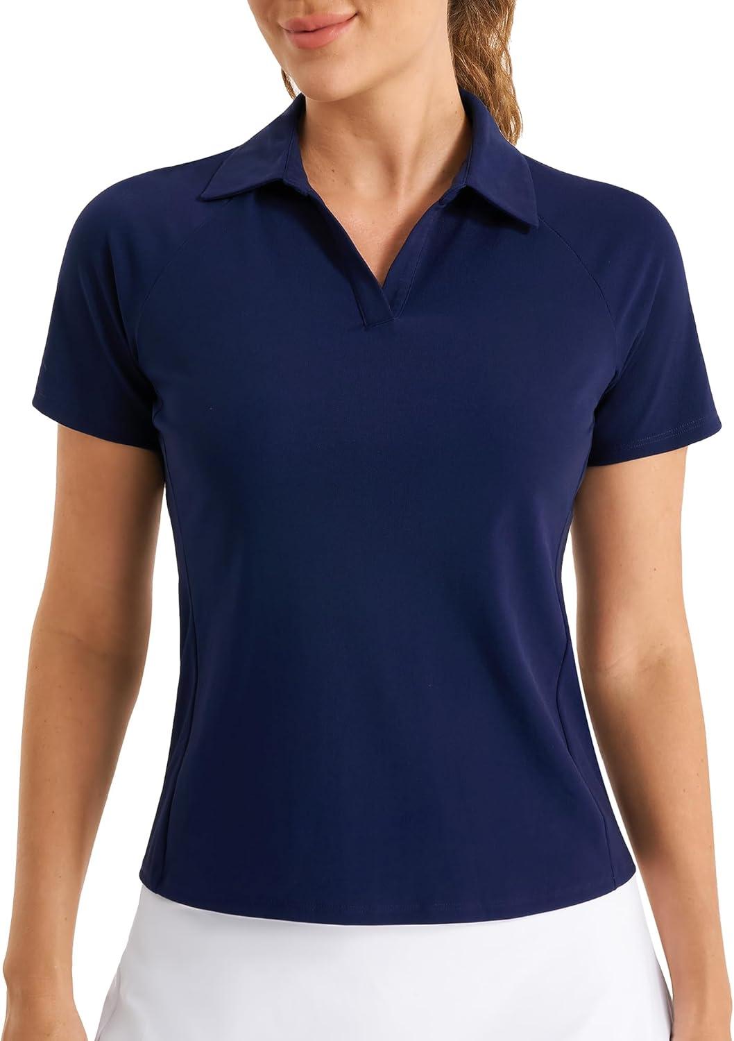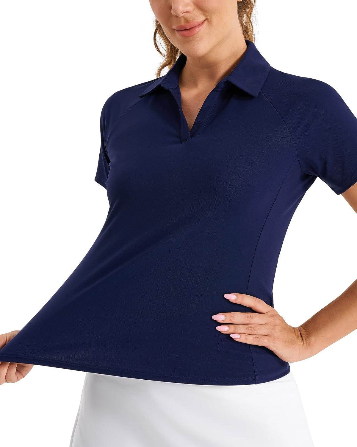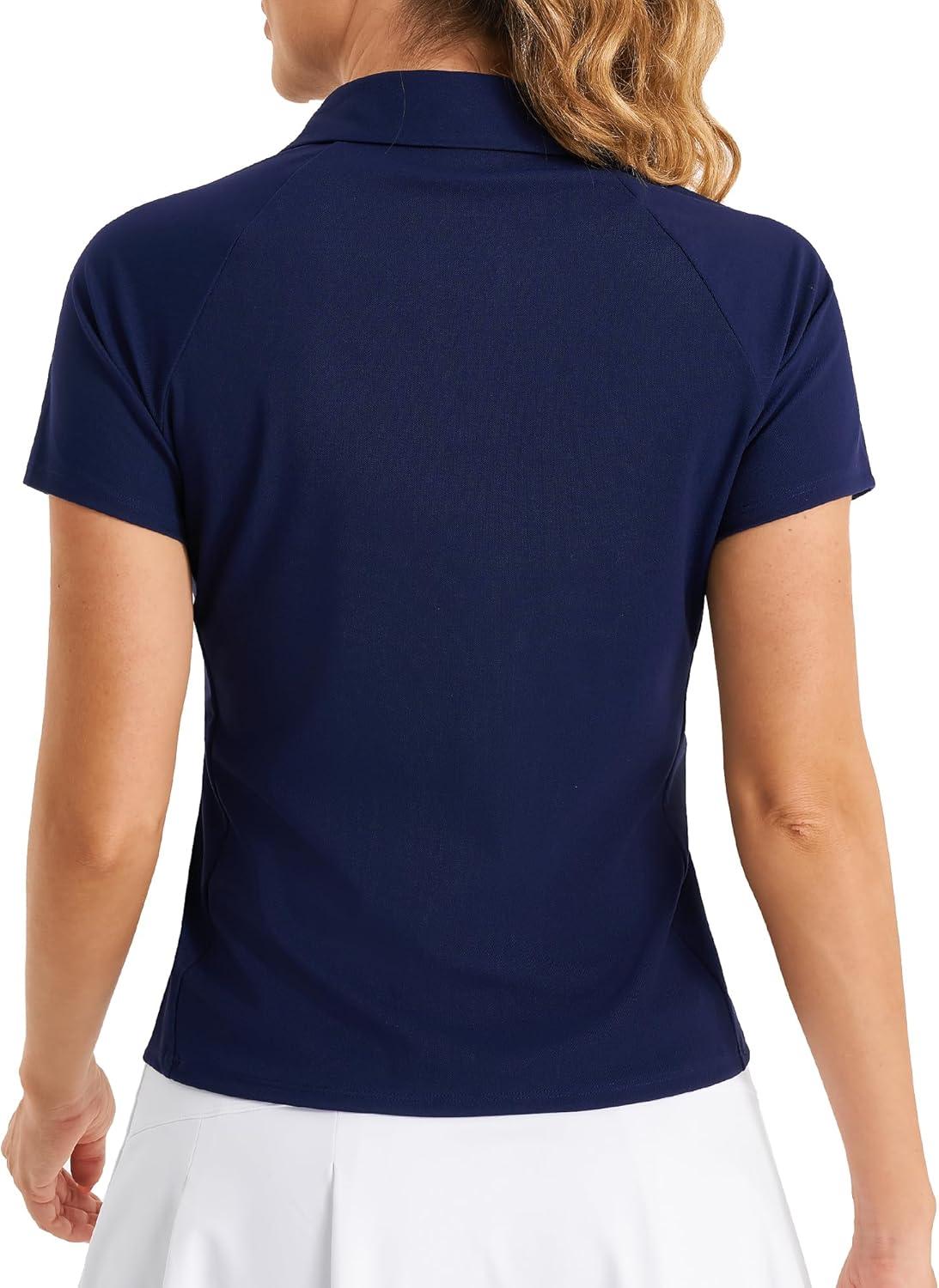 Stelle Womens Polo Golf Shirts UPF 50+ V Neck Short Sleeve Collared Tennis Shirts Casual Tank Tops(Navy)