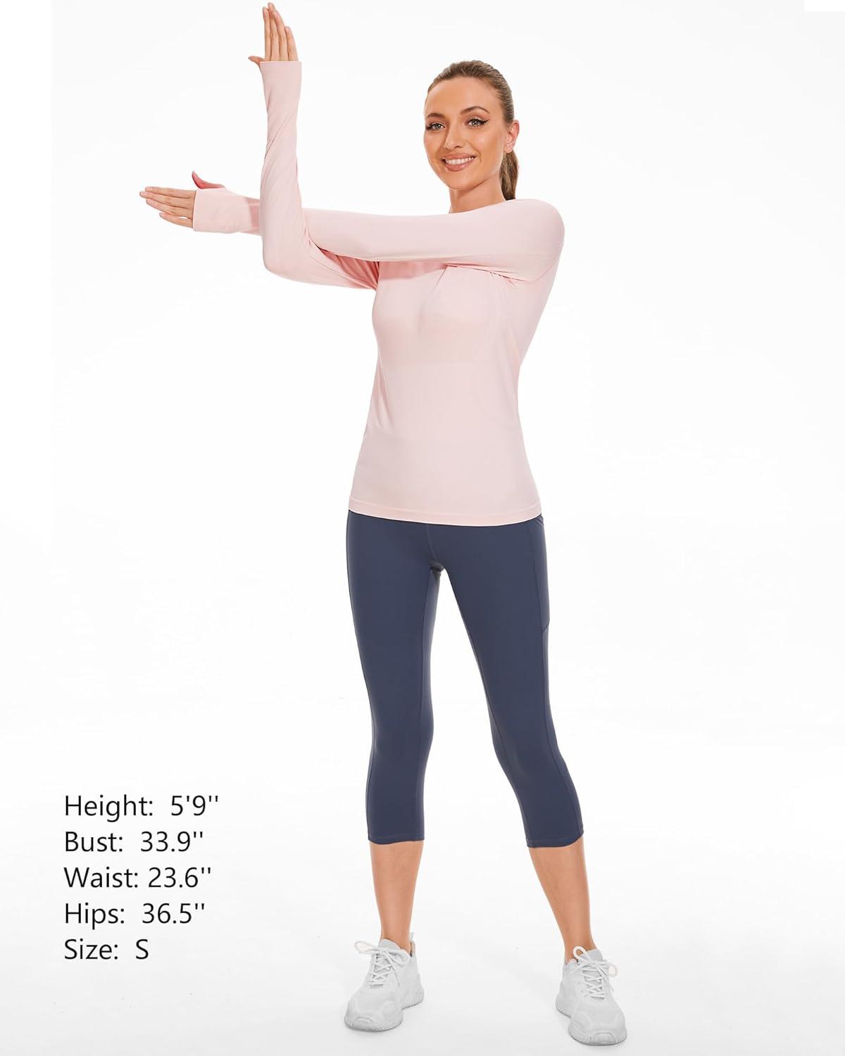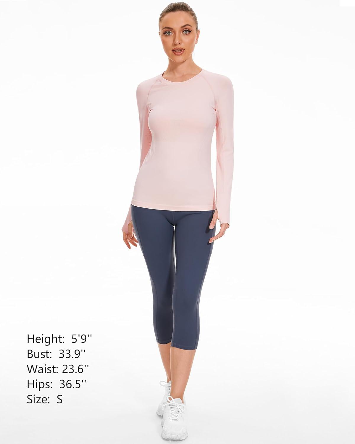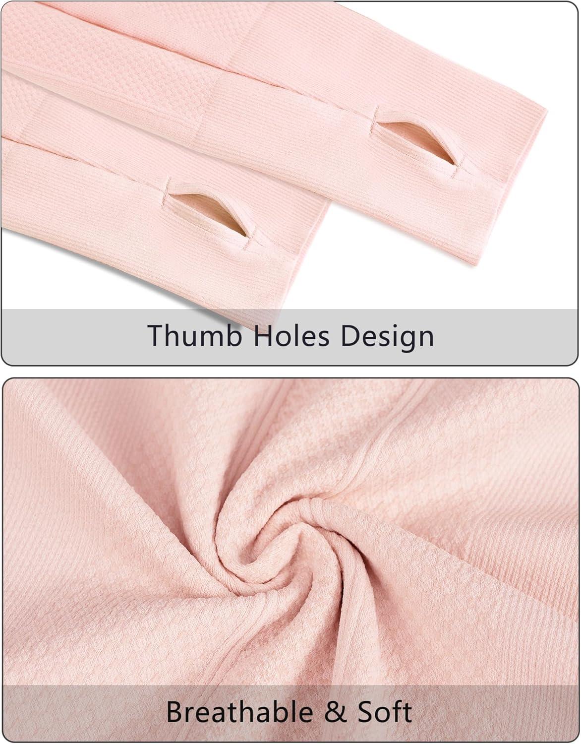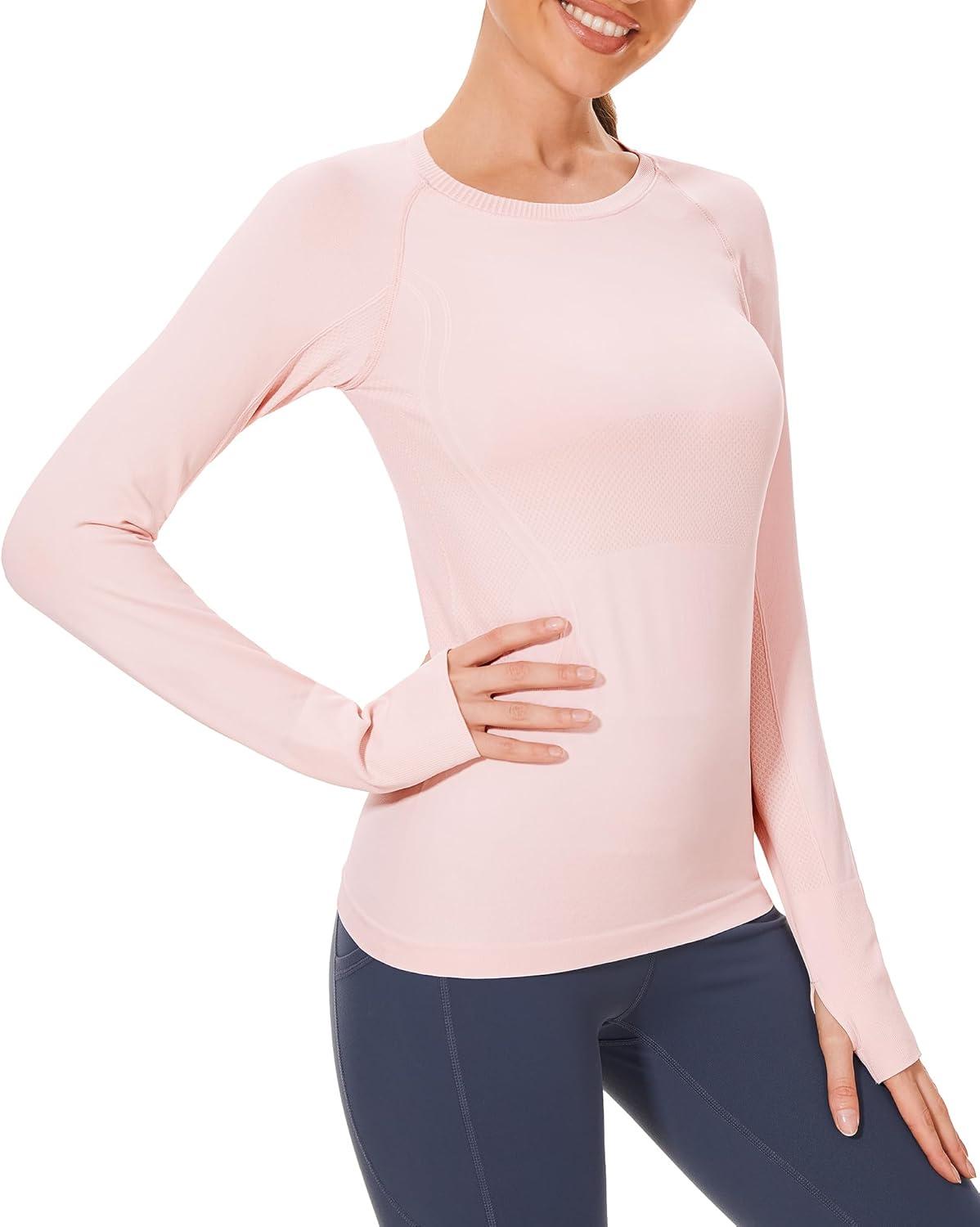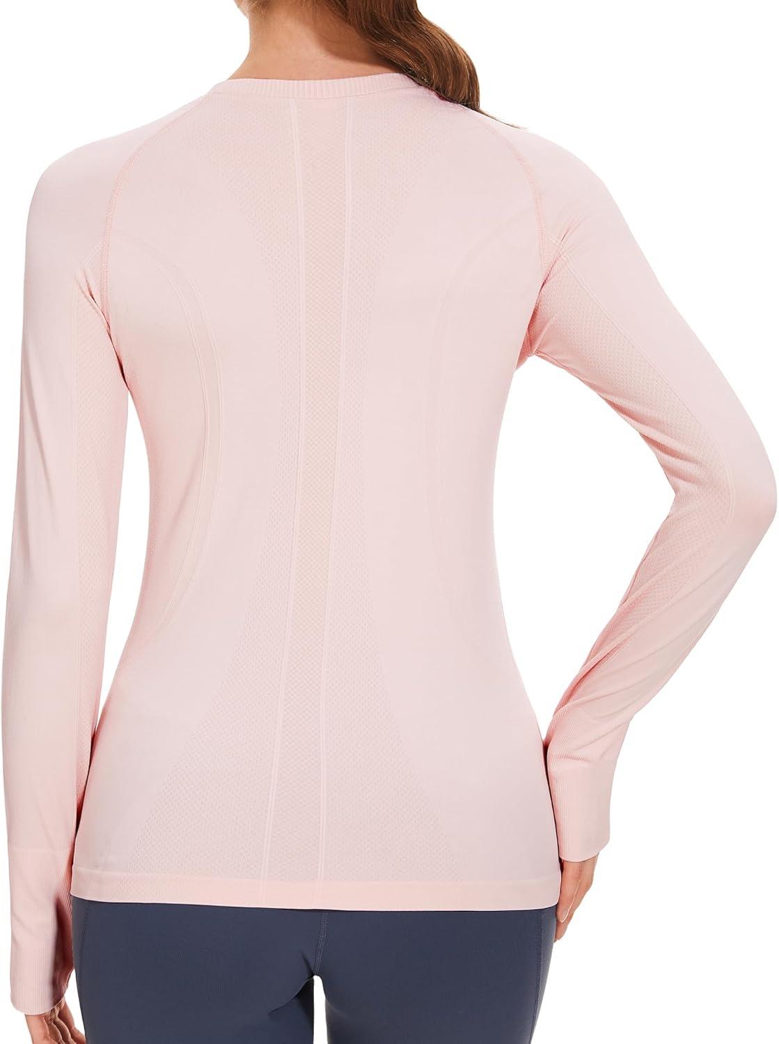 Stelle Womens Seamless Workout Top Yoga Athletic Shirt with Thumb Hole Breathable for Sports Running Slim Fit(Ballet Pink)