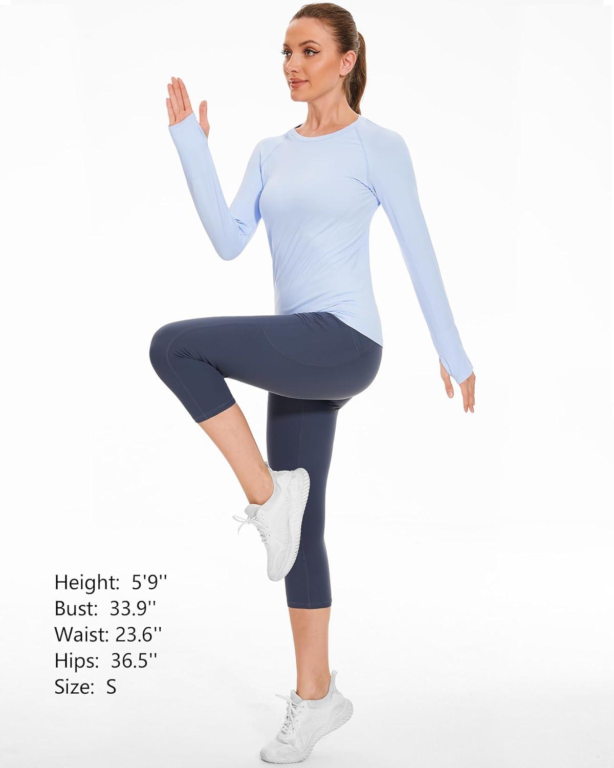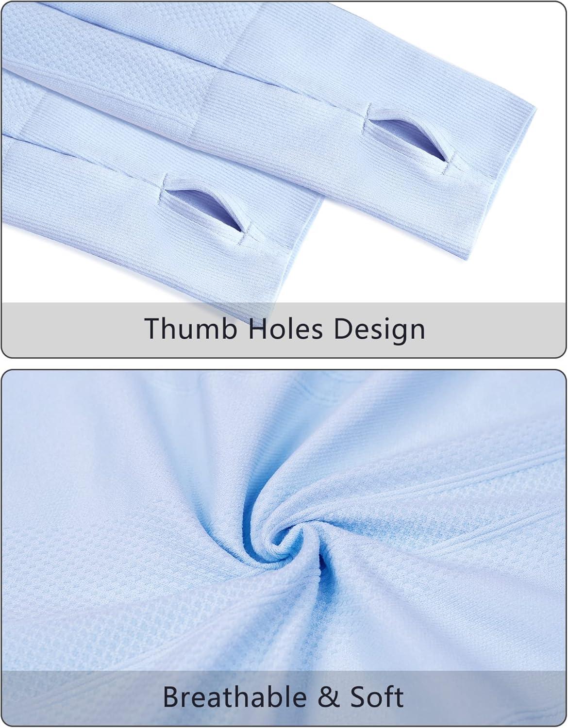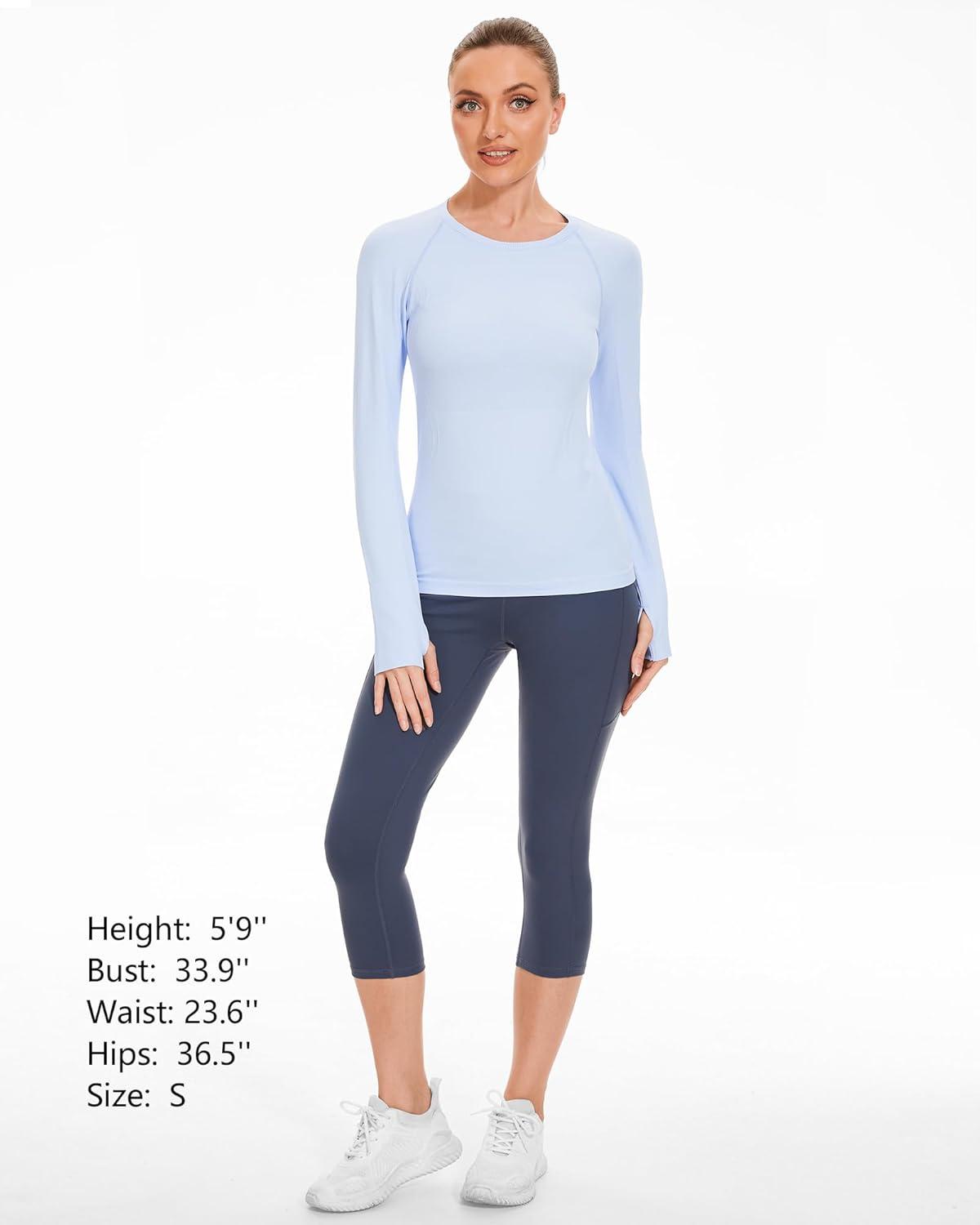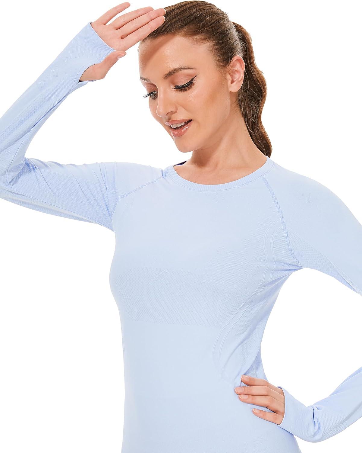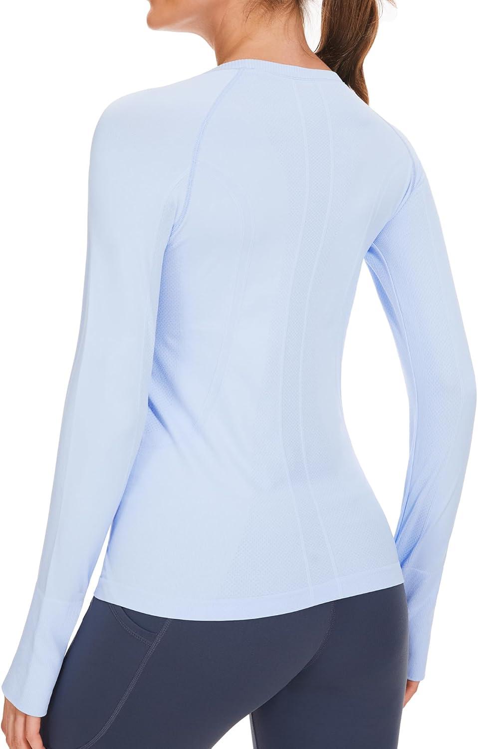 Stelle Womens Seamless Workout Top Yoga Athletic Shirt with Thumb Hole Breathable for Sports Running Slim Fit(Blue)