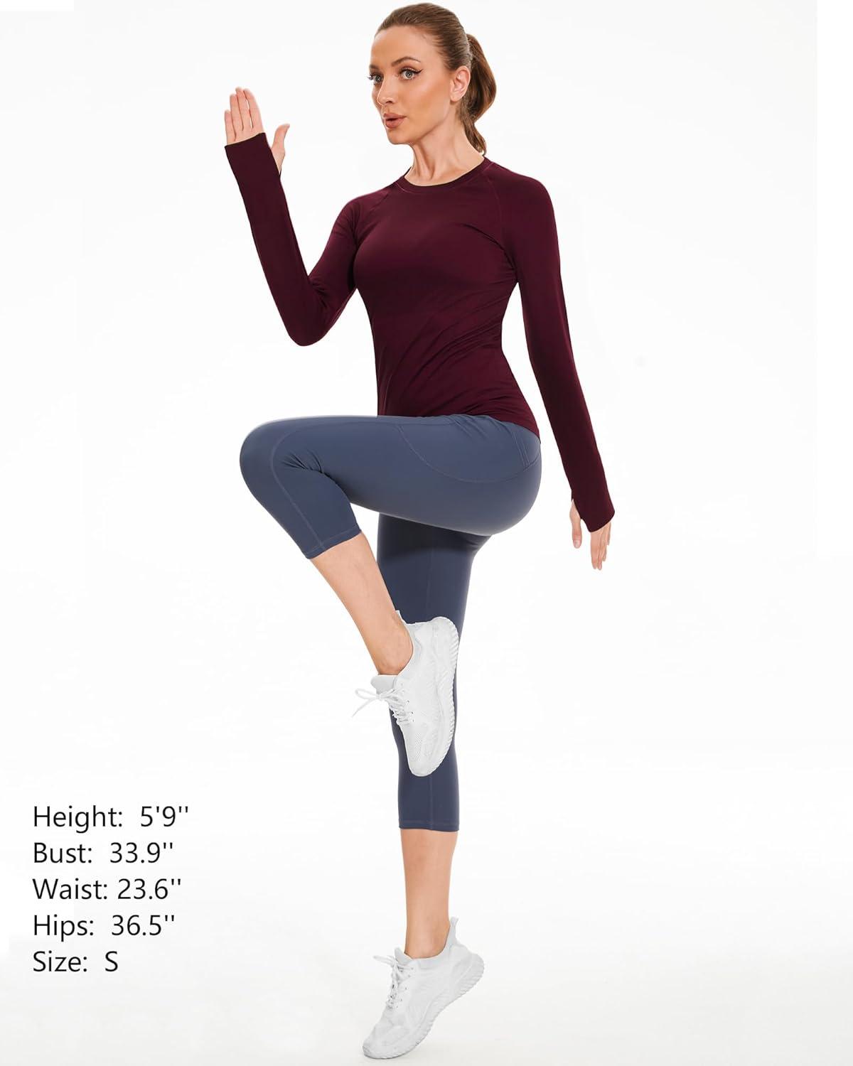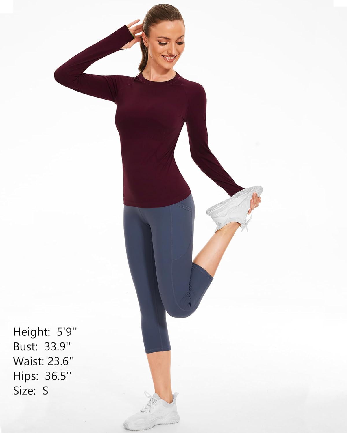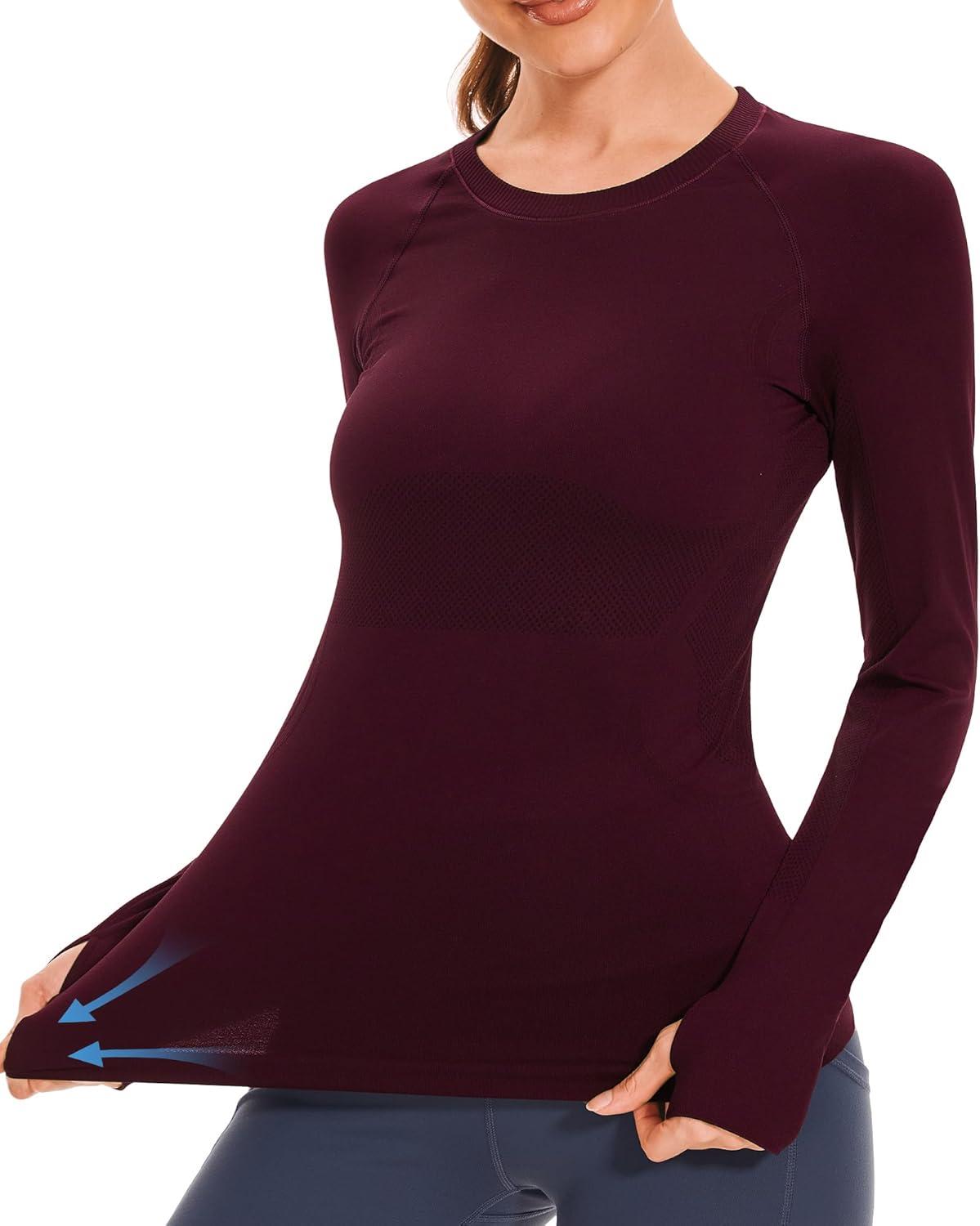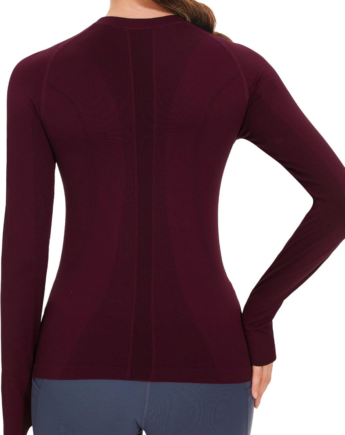 Stelle Womens Seamless Workout Top Yoga Athletic Shirt with Thumb Hole Breathable for Sports Running Slim Fit(Burgundy)