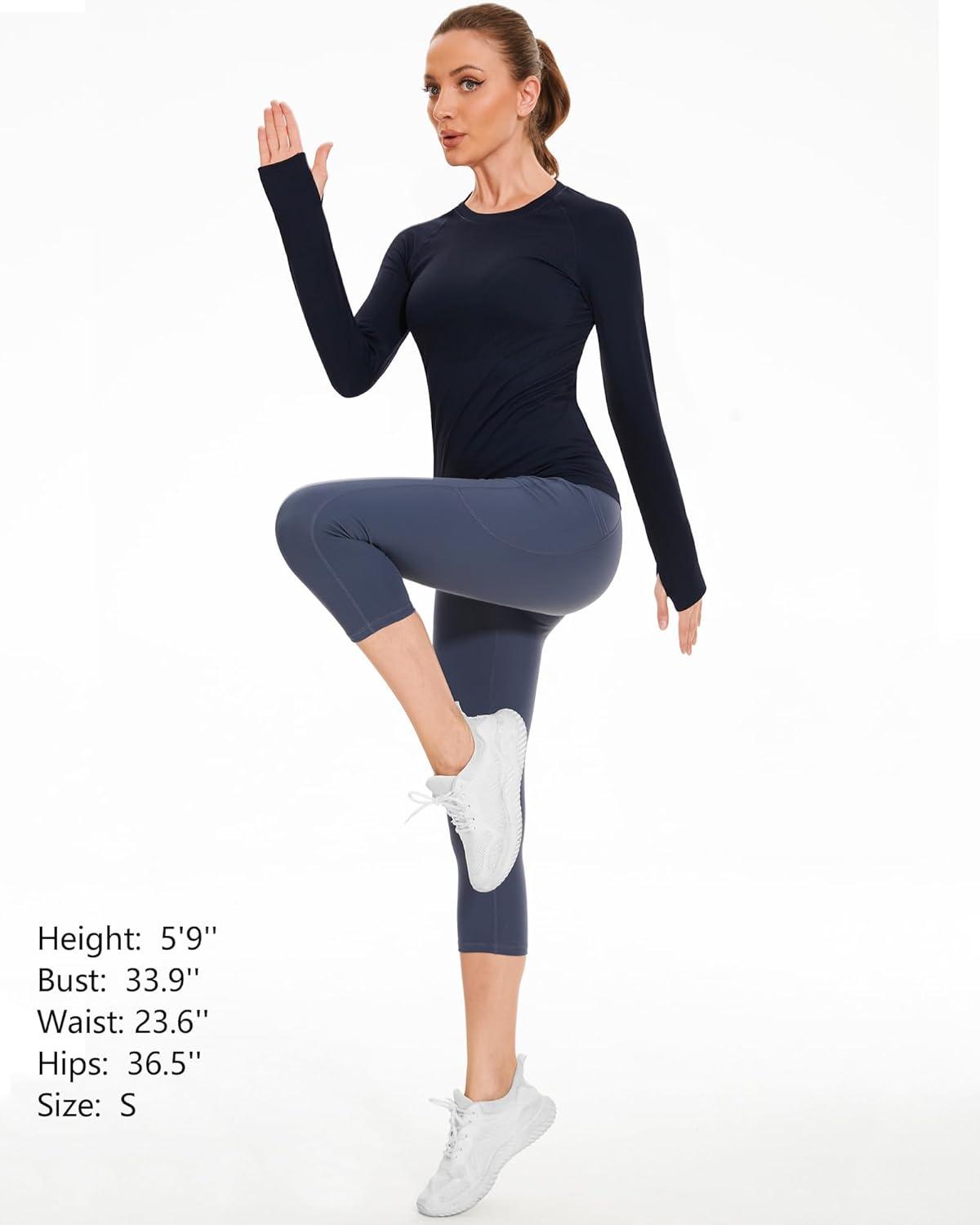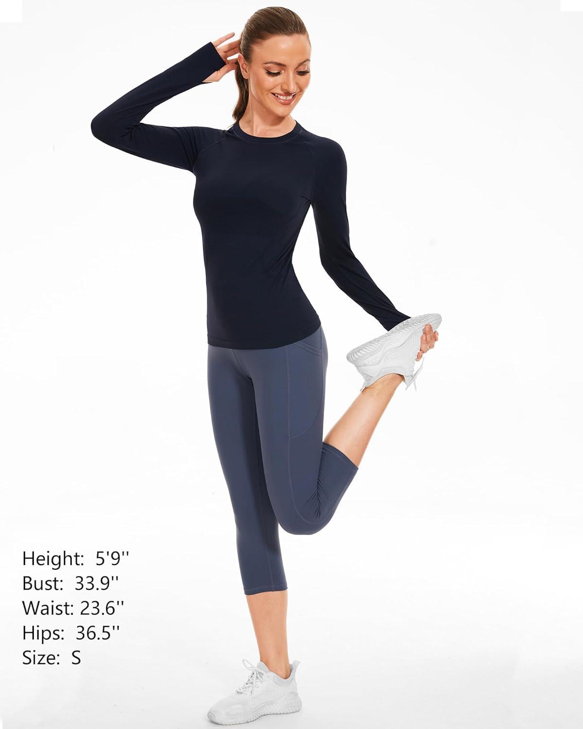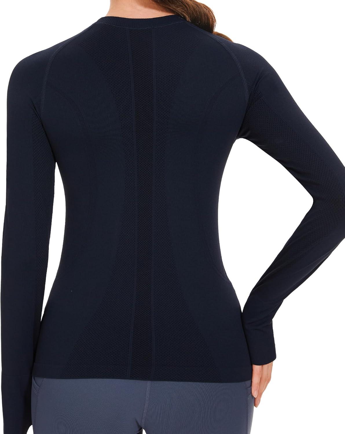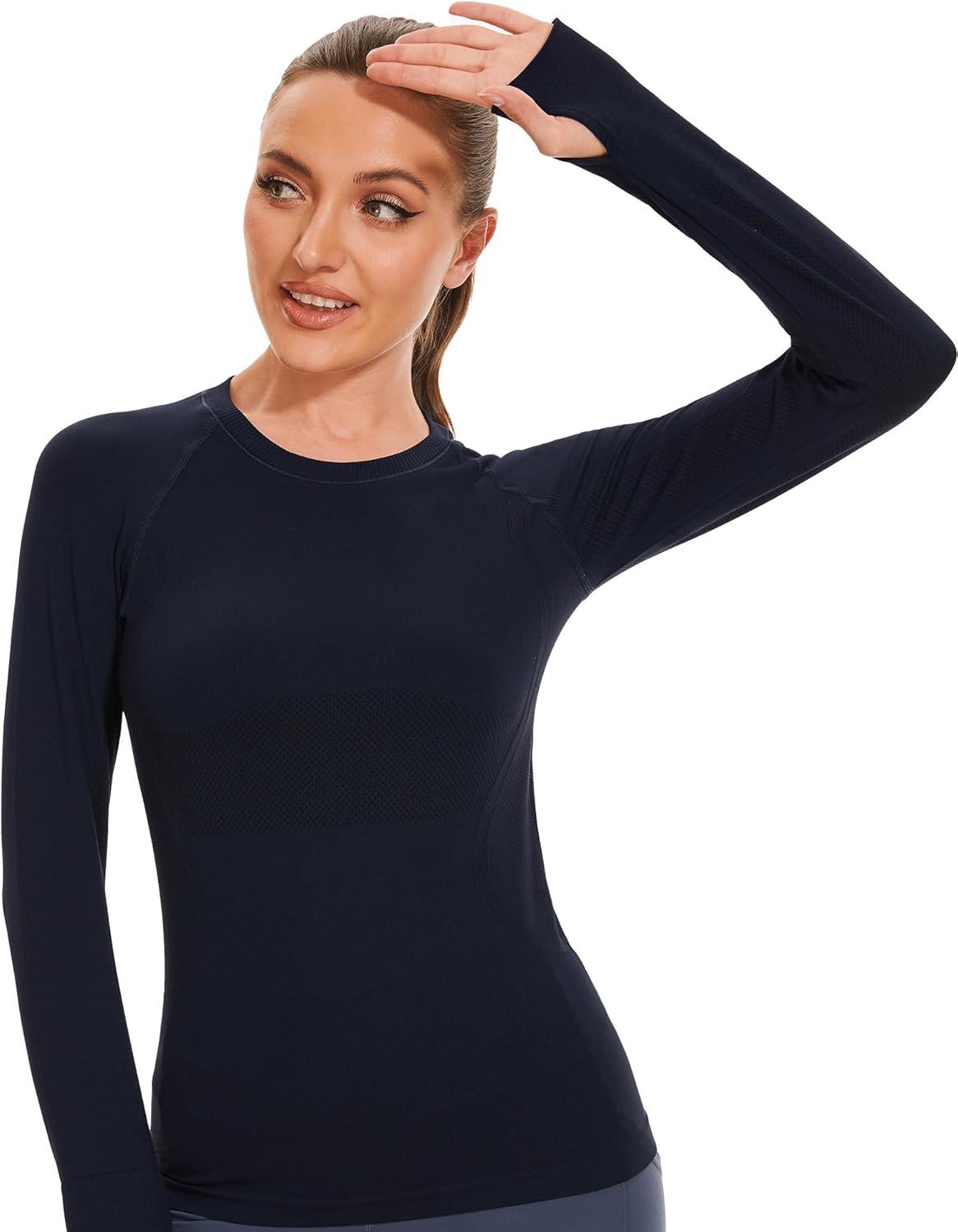 Stelle Womens Seamless Workout Top Yoga Athletic Shirt with Thumb Hole Breathable for Sports Running Slim Fit(Navy)