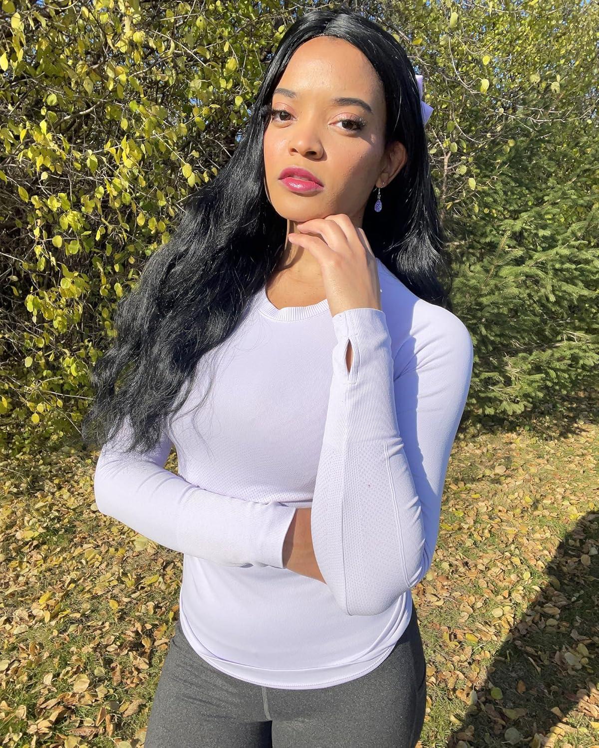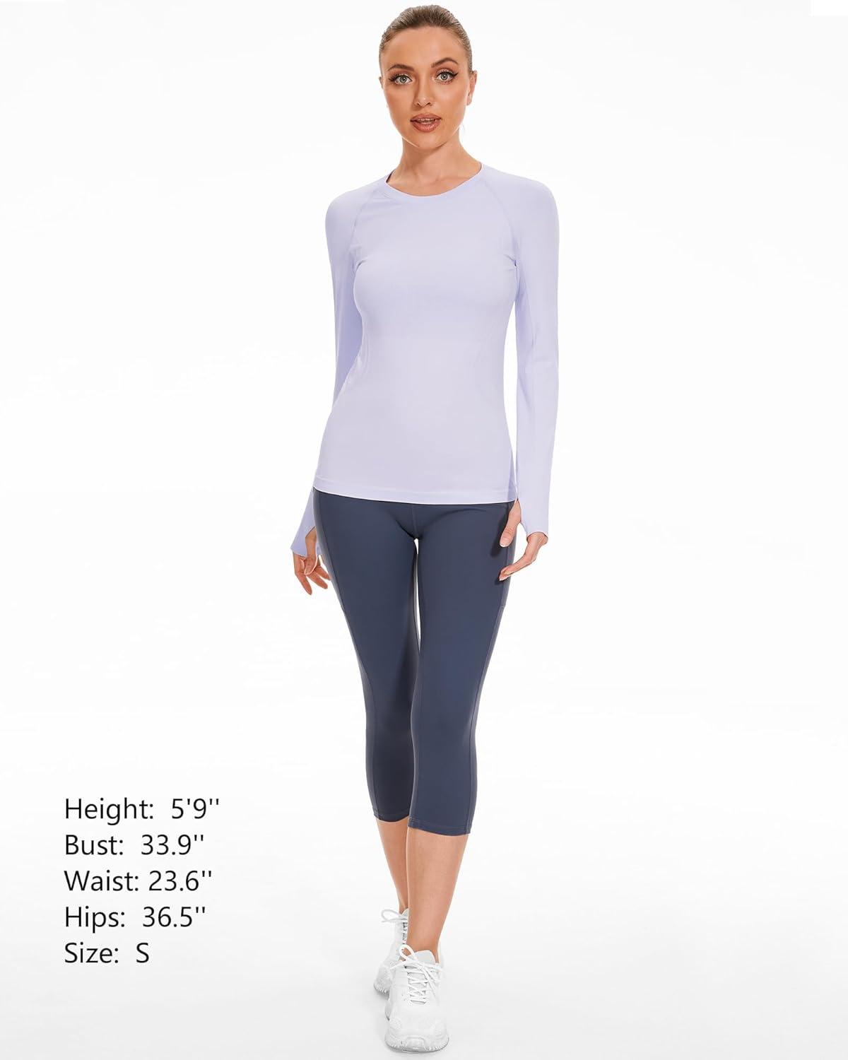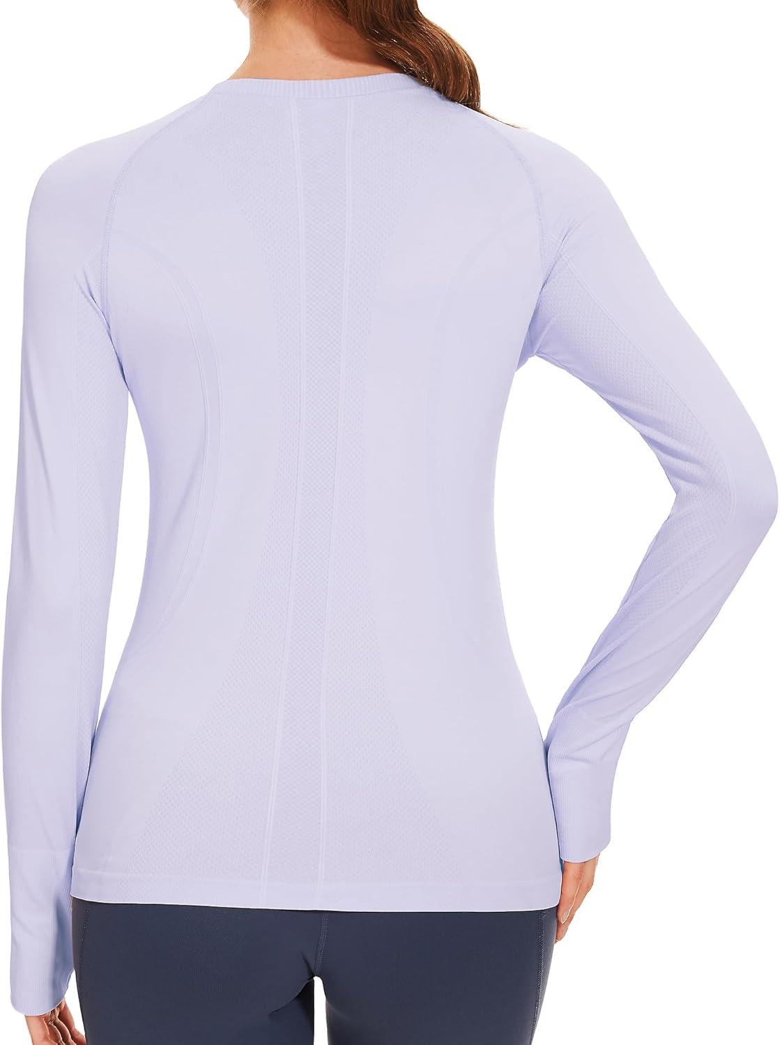 Stelle Womens Seamless Workout Top Yoga Athletic Shirt with Thumb Hole Breathable for Sports Running Slim Fit(Purple)