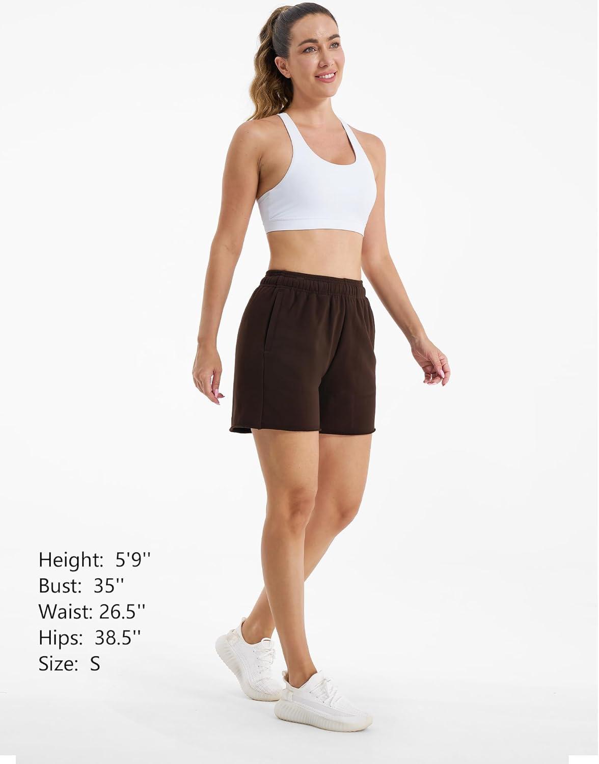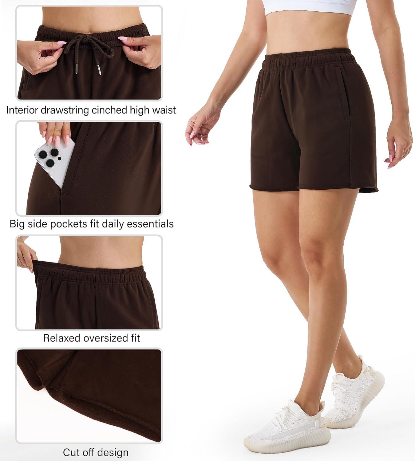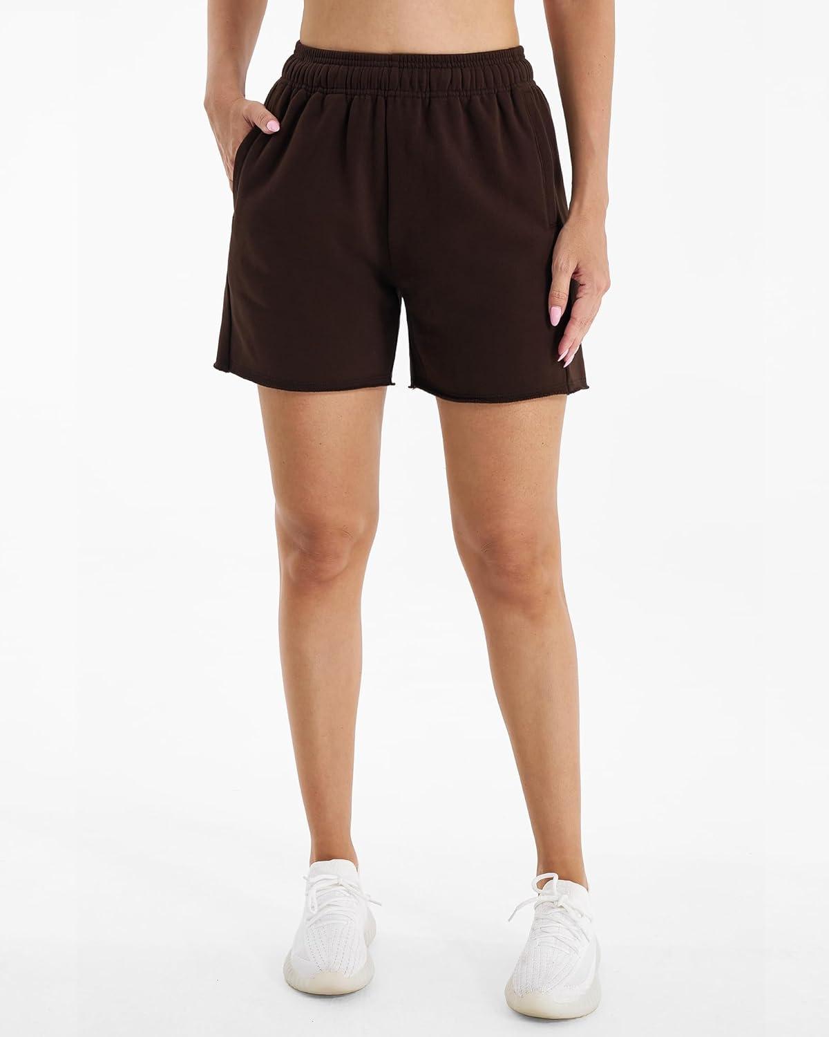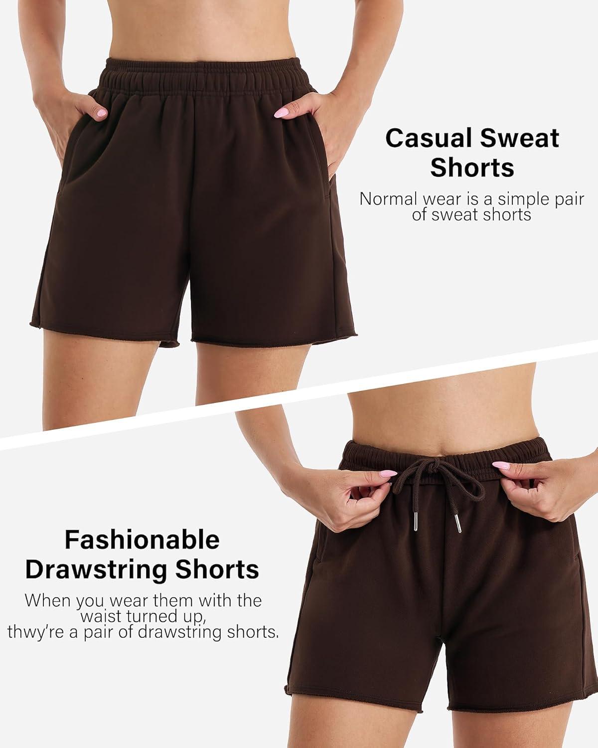 Stelle Women’s Sweat Shorts Casual Drawstring Shorts Comfy Cotton High Waisted Workout Lounge Shorts with Pockets(Coffee)