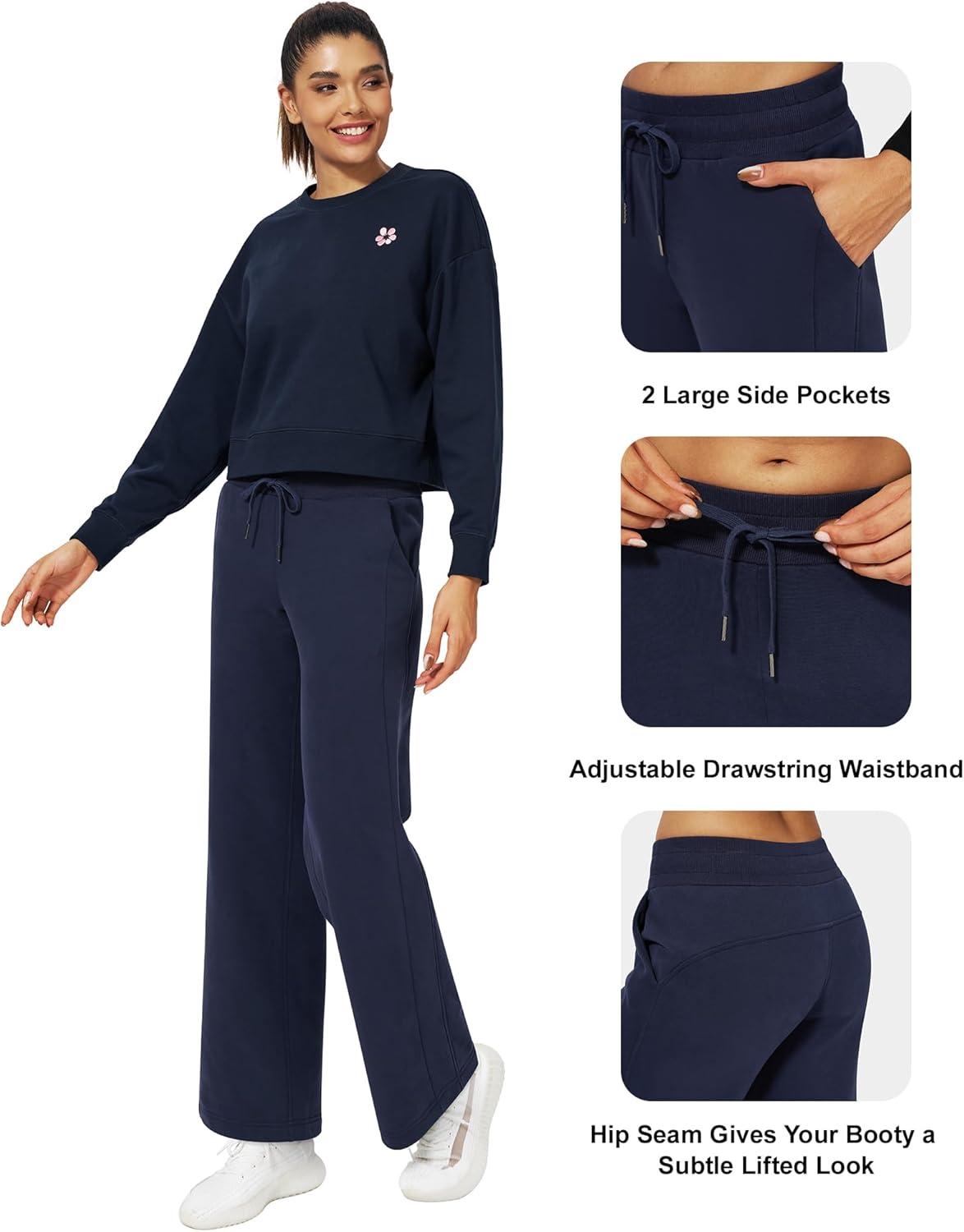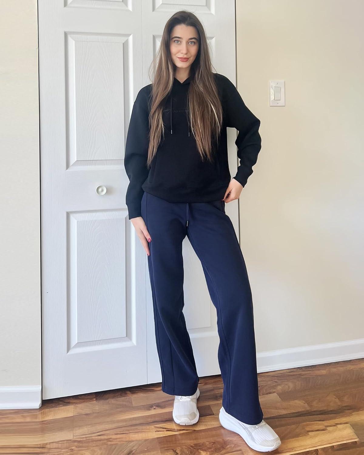 Stelle Womens Sweatpants Elastic Waist Drawstring Lined Straight Leg Pants Lounge Baggy Fleece Joggers with Pockets(Navy)