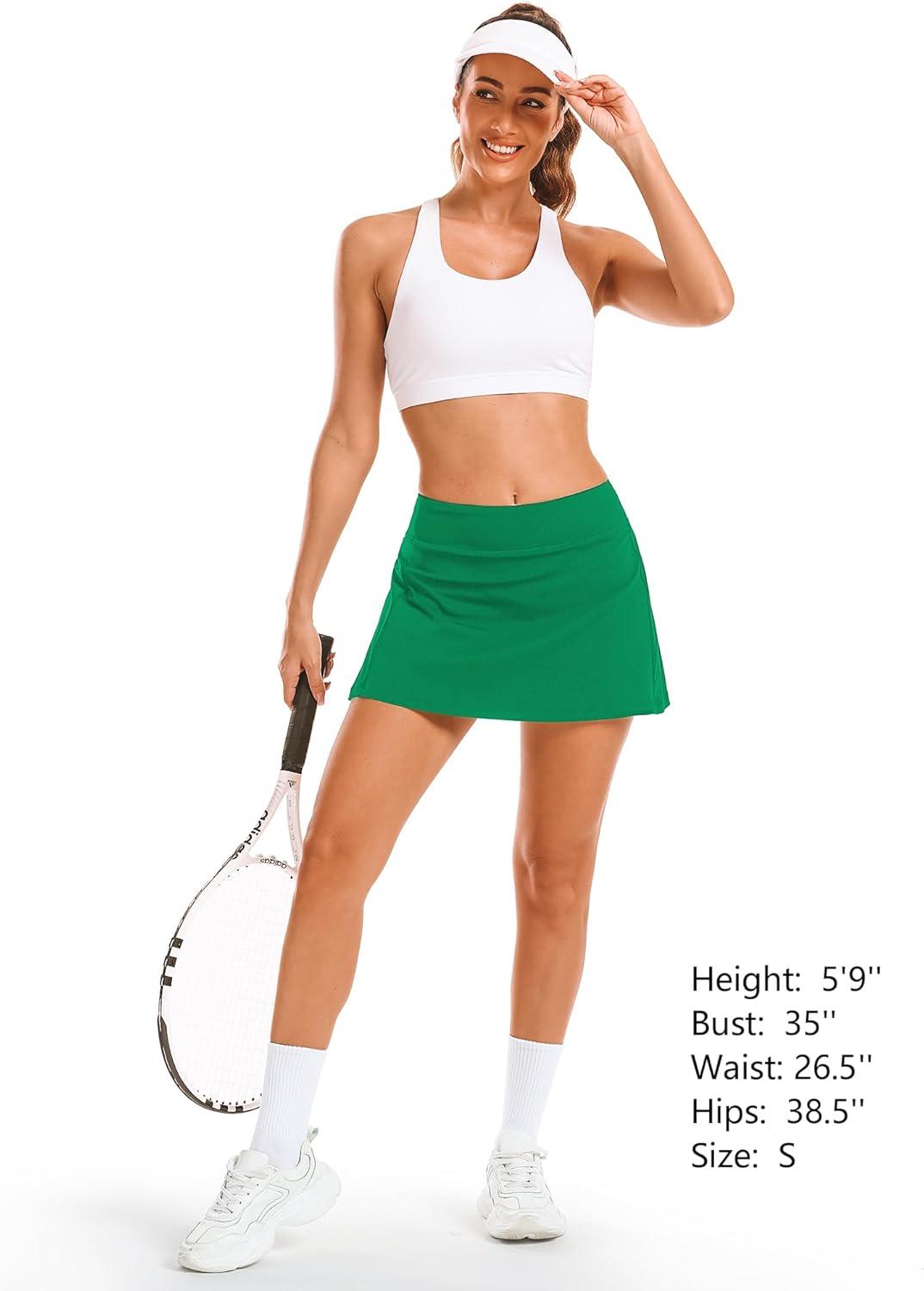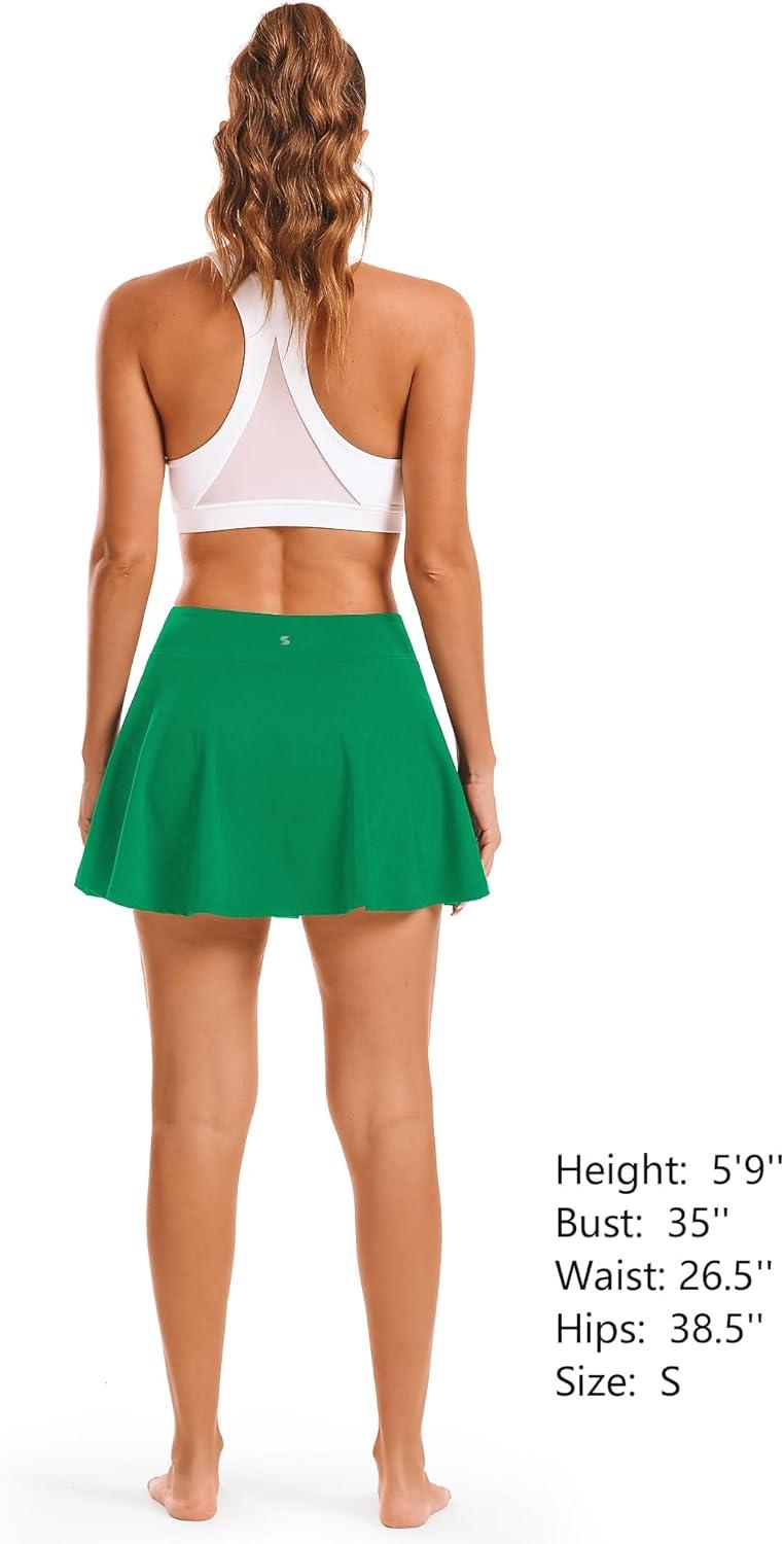 Stelle Women’s Tennis Golf Skirts High Waisted with Pockets Inner Shorts for Athletic Skorts Sports Running Pickleball(Evergreen)