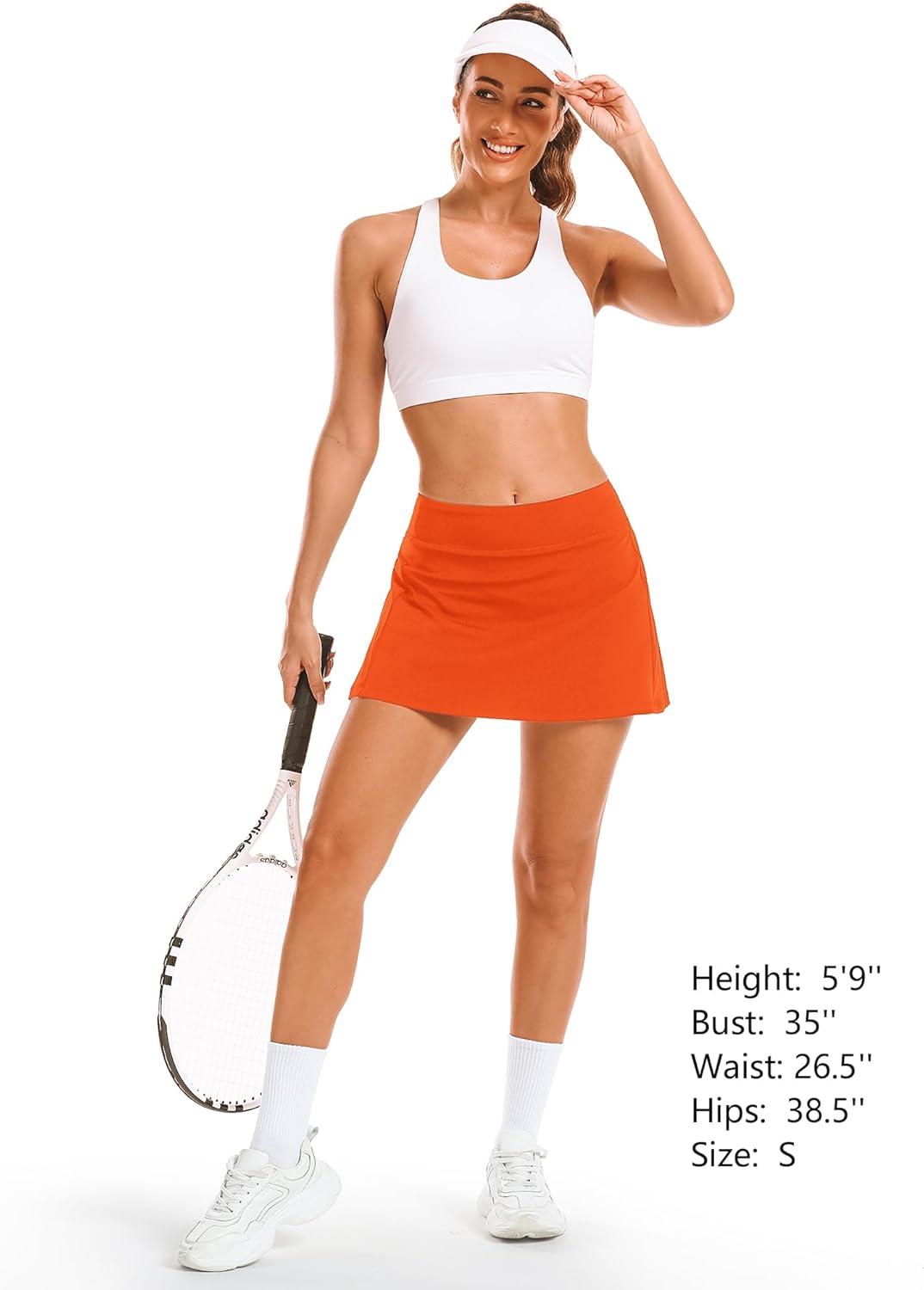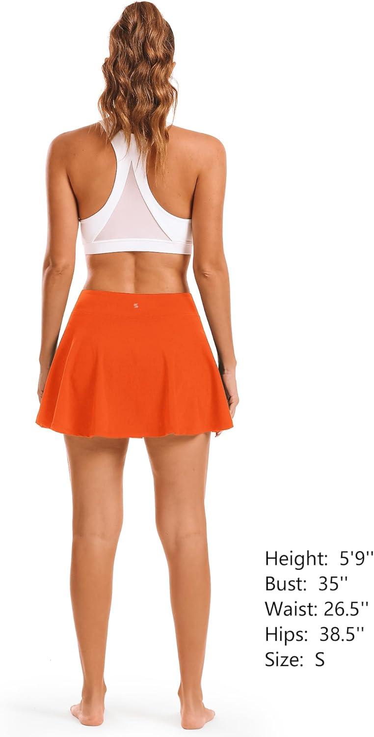 Stelle Women’s Tennis Golf Skirts High Waisted with Pockets Inner Shorts for Athletic Skorts Sports Running Pickleball(Orange)