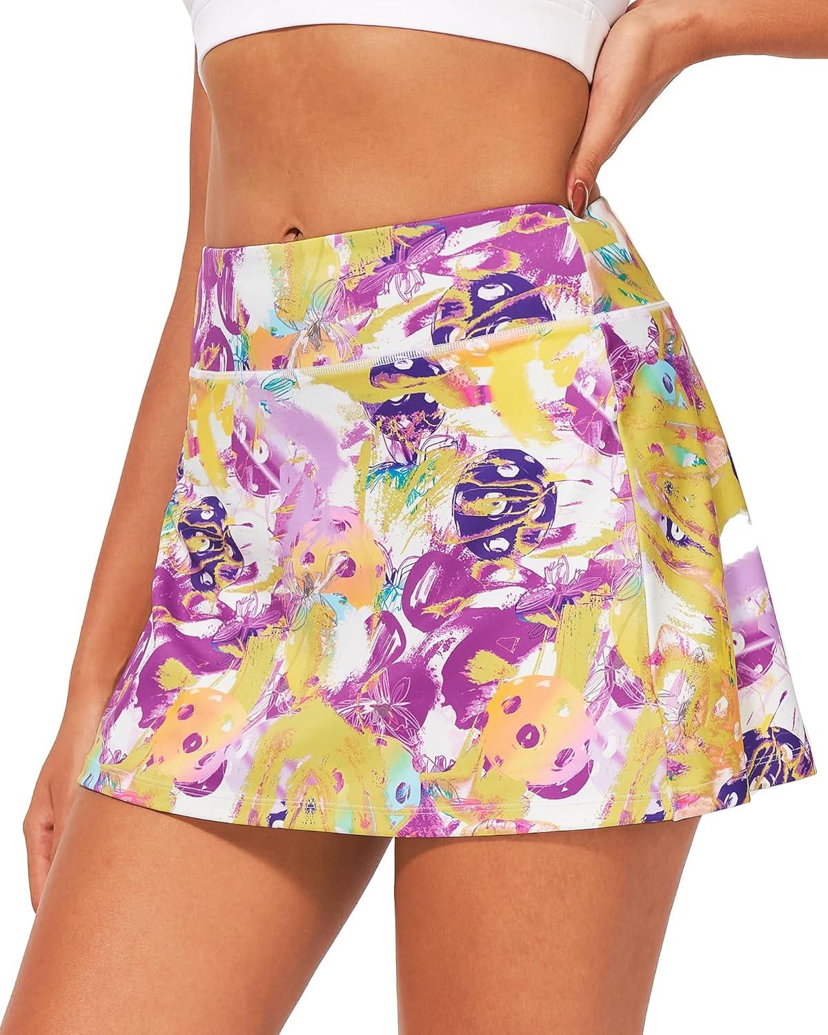Stelle Women’s Tennis Golf Skirts High Waisted with Pockets Inner Shorts for Athletic Skorts Sports Running Pickleball(Pastel Pickle)