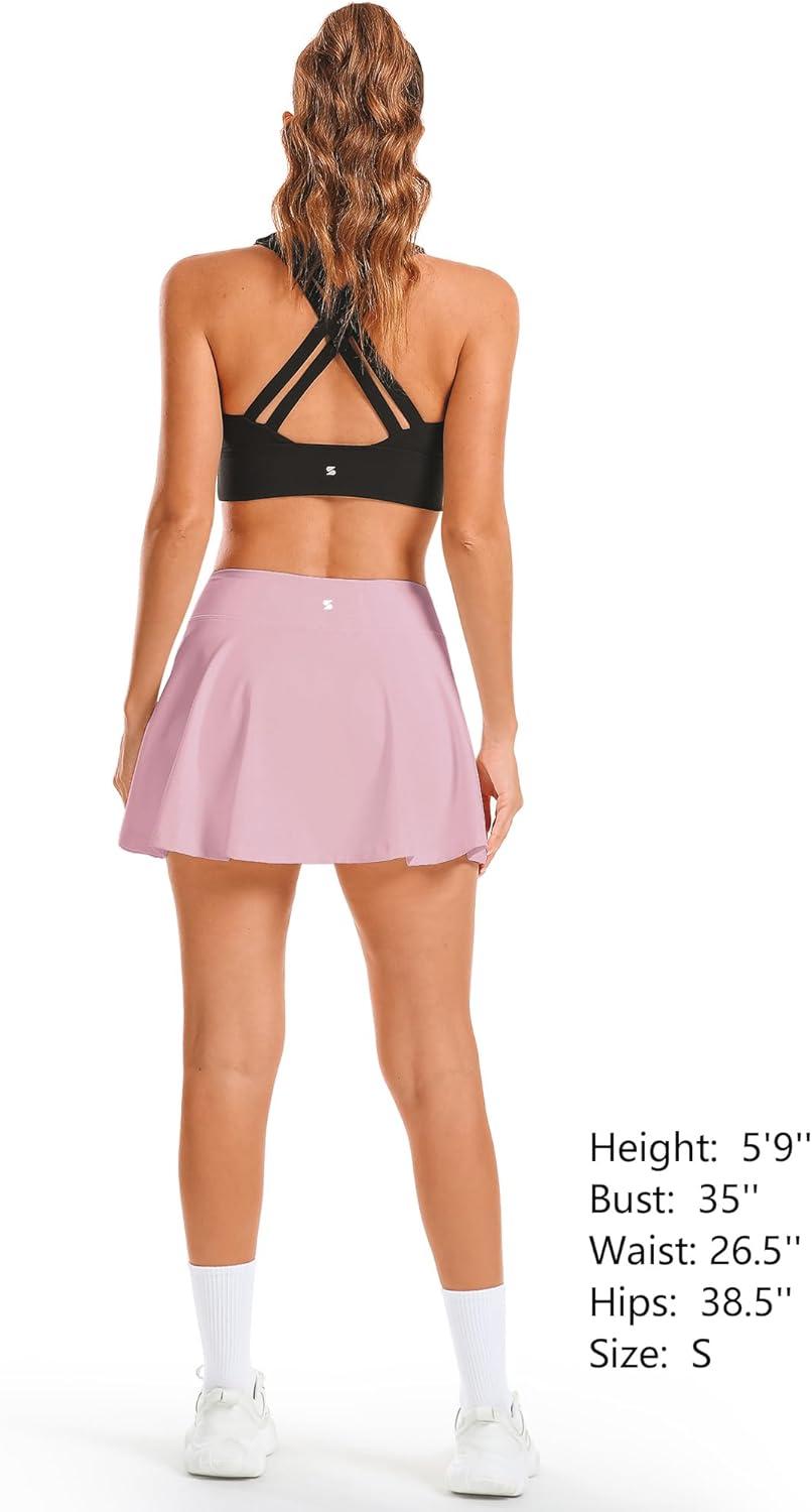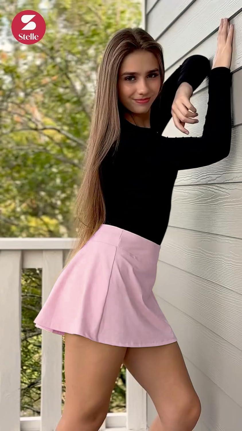 Stelle Women’s Tennis Golf Skirts High Waisted with Pockets Inner Shorts for Athletic Skorts Sports Running Pickleball(Pink)