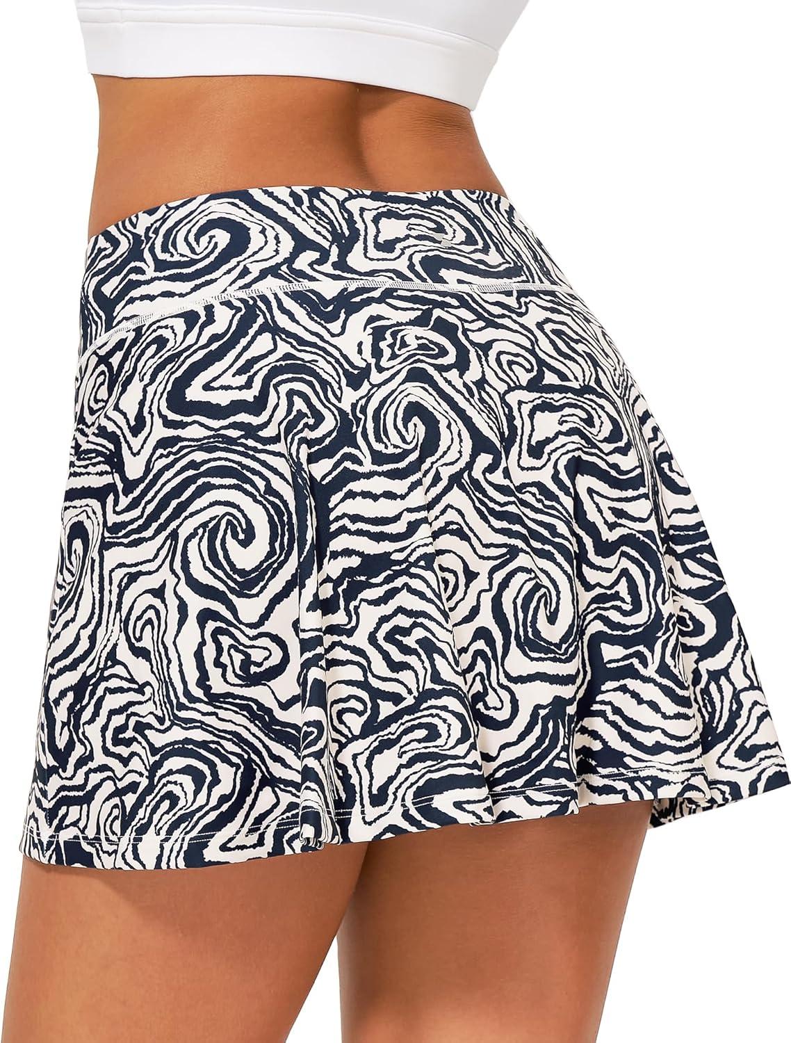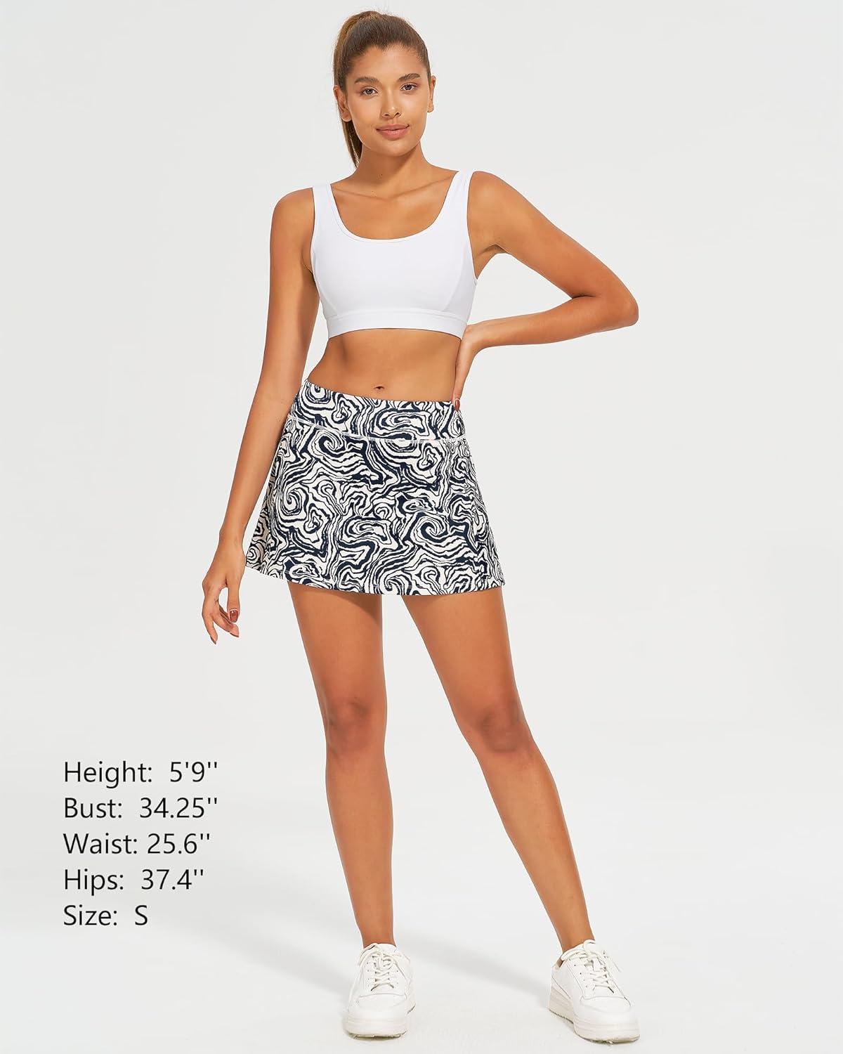 Stelle Women’s Tennis Golf Skirts High Waisted with Pockets Inner Shorts for Athletic Skorts Sports Running Pickleball(Wavy Ink)
