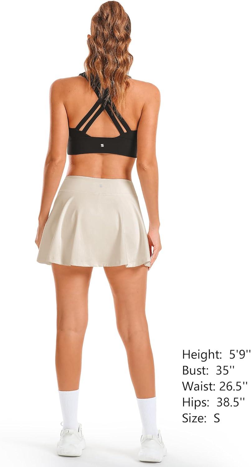 Stelle Women’s Tennis Golf Skirts High Waisted with Pockets Inner Shorts for Athletic Skorts Sports Running Pickleball(White Beige)
