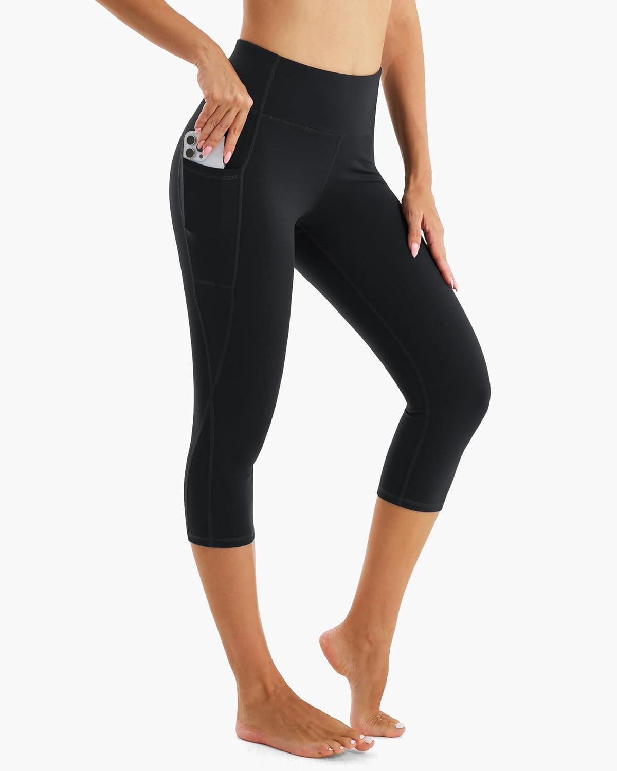 Stelle Women’s Yoga Pants with Pockets High Waisted Capri Leggings Tummy Control Workout Cycling Pants(Black)