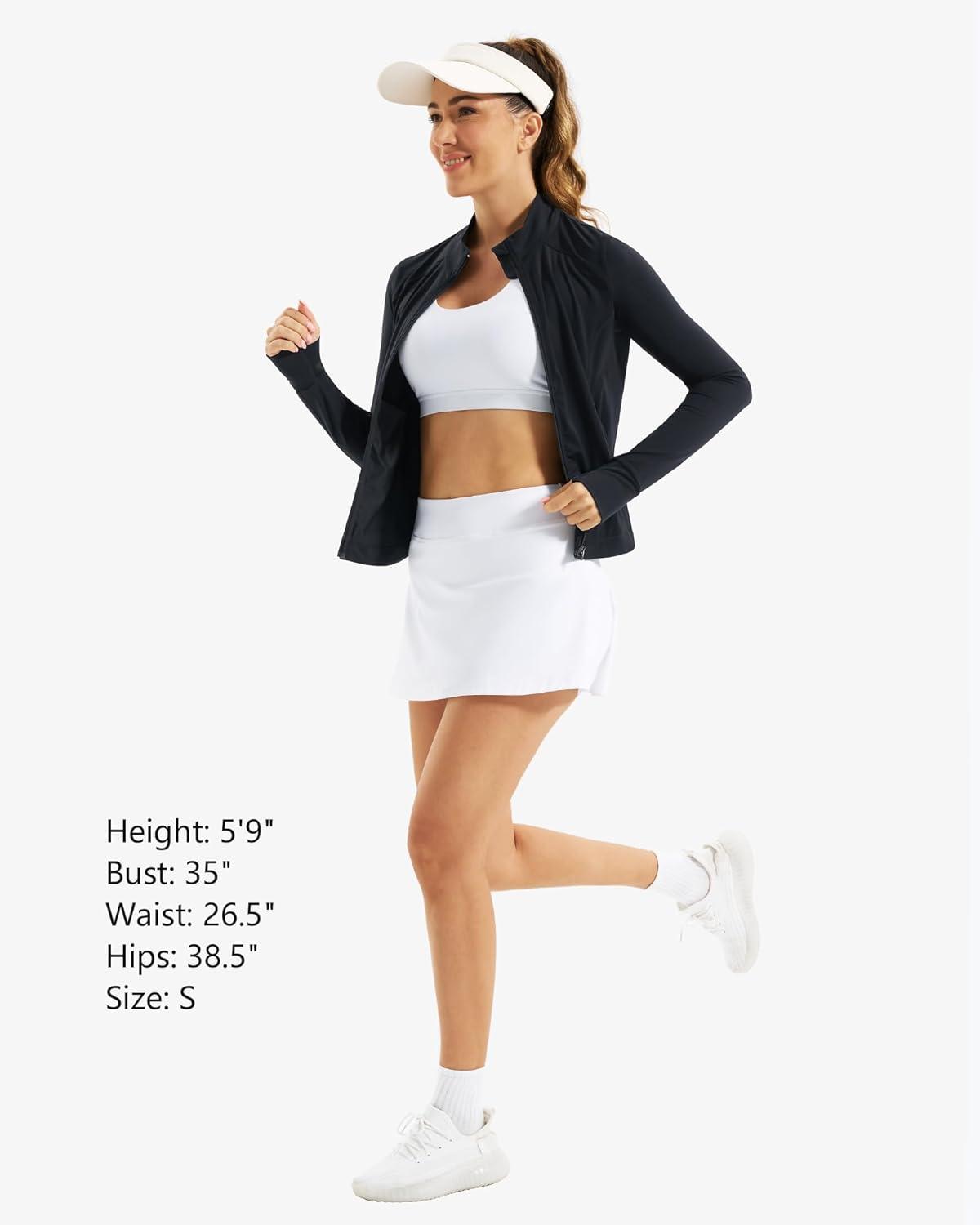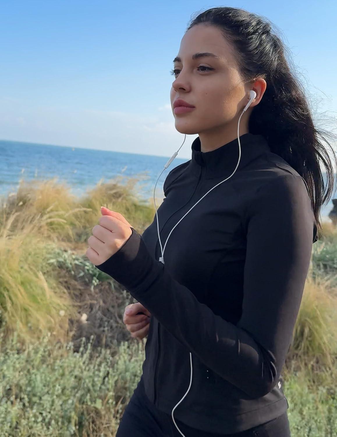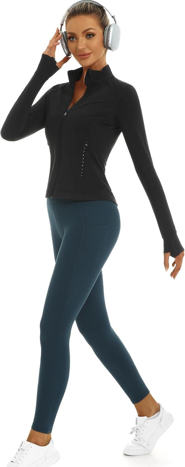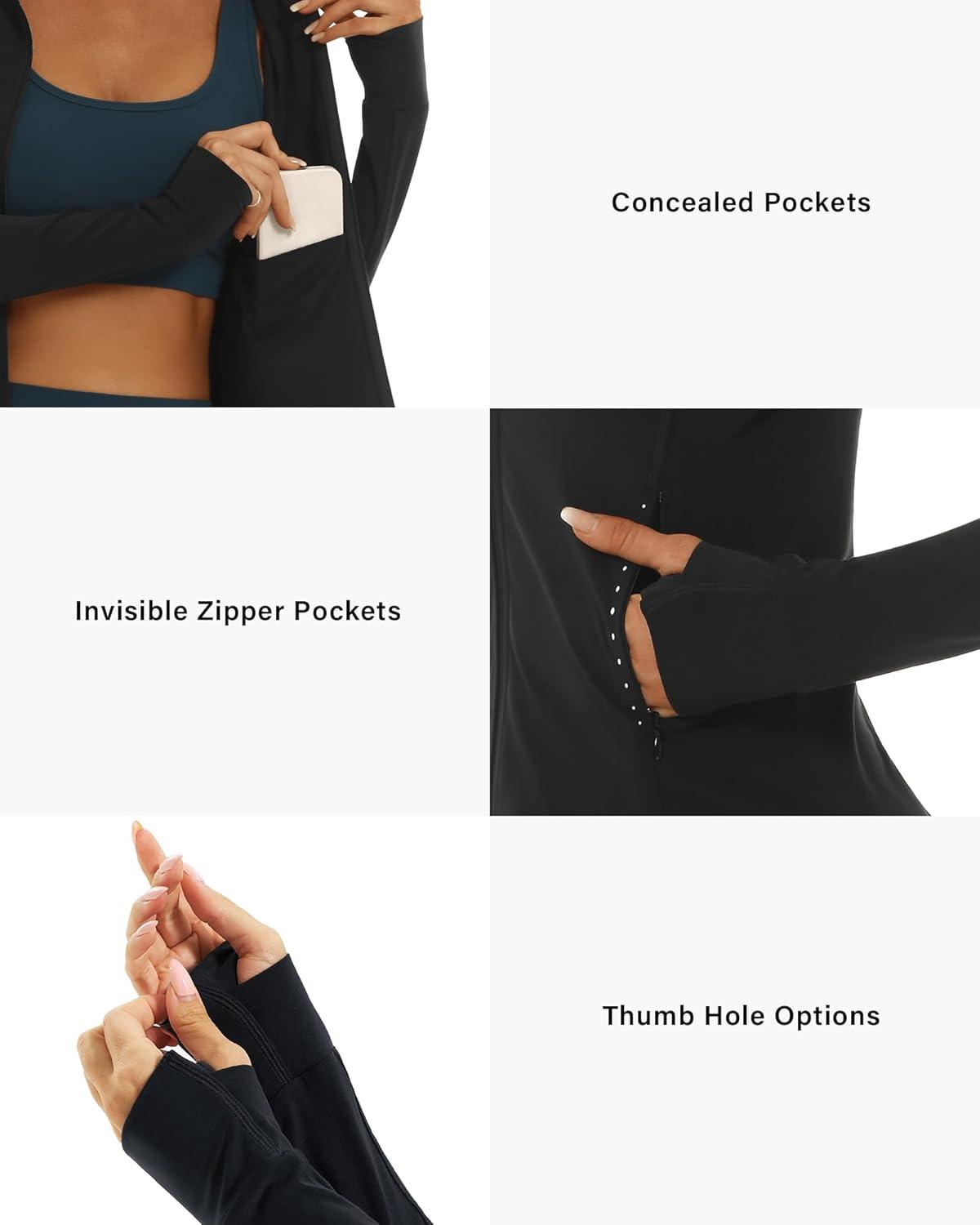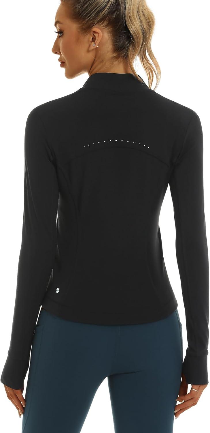 Stelle Women’s Zip Up Jackets Lightweight Athletic Running Jacket Workout Slim Fit Yoga Track Clothes with Thumb Holes(Black)