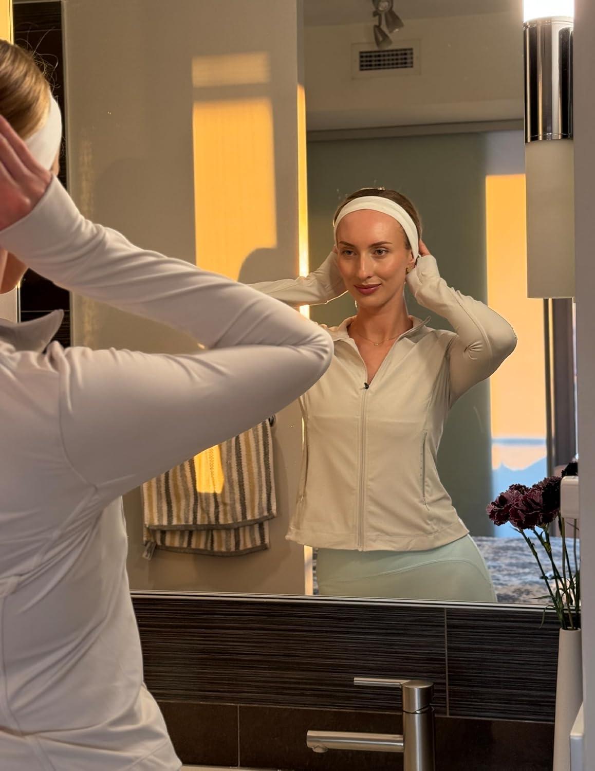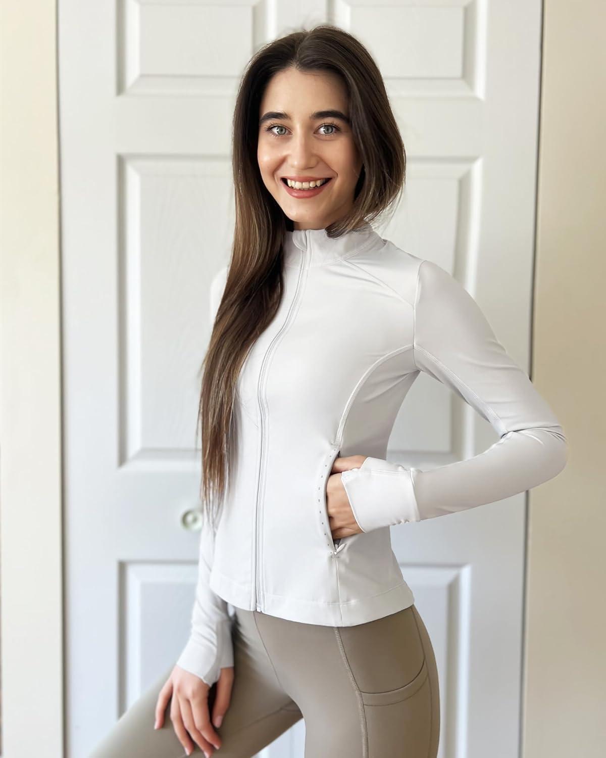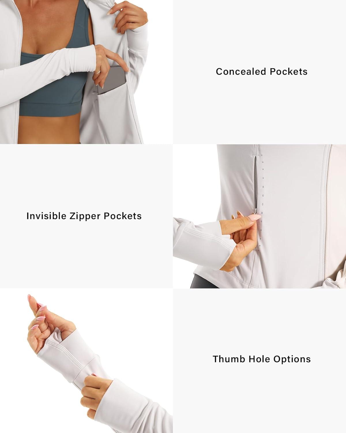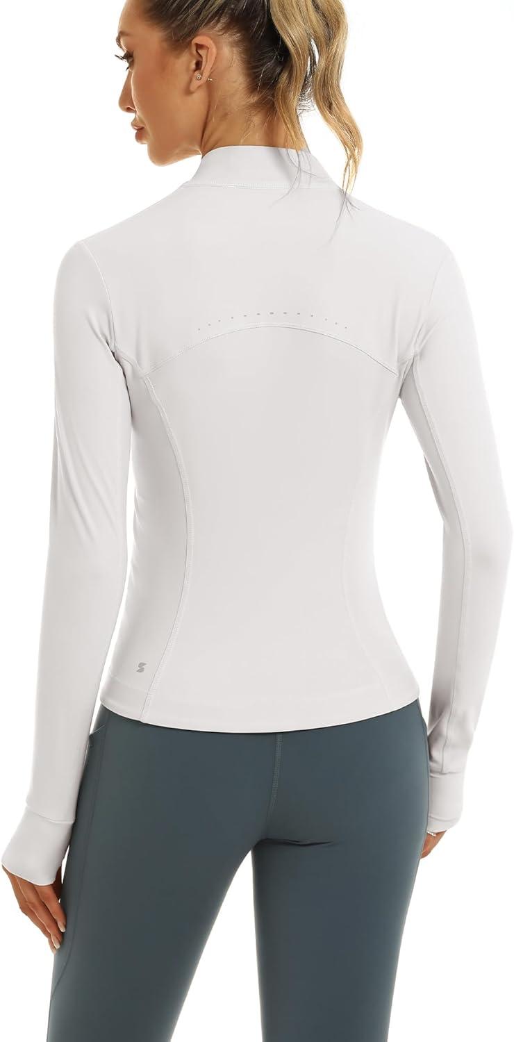 Stelle Women’s Zip Up Jackets Lightweight Athletic Running Jacket Workout Slim Fit Yoga Track Clothes with Thumb Holes(Chalk)